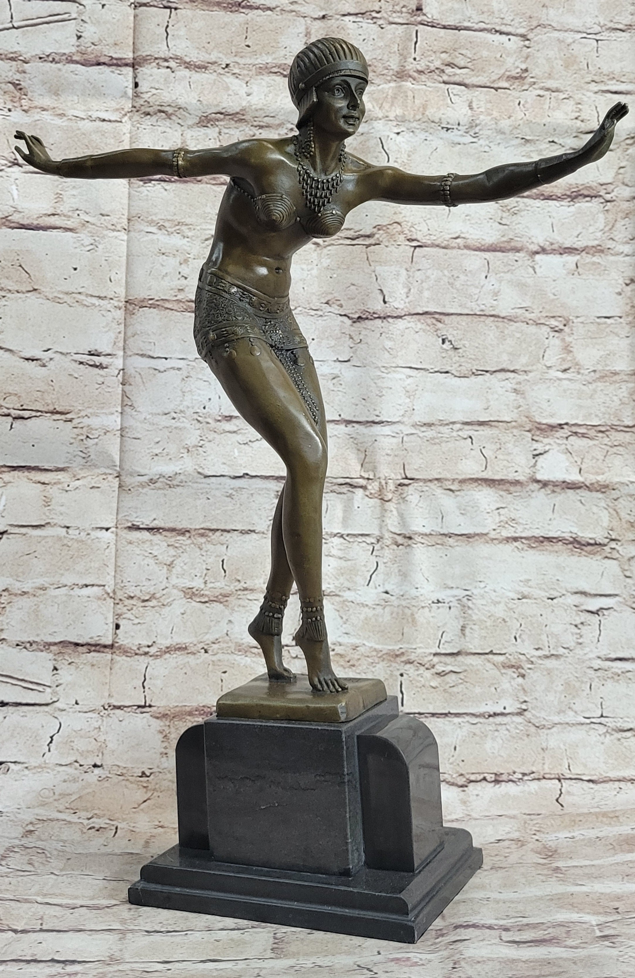 Phoenician Dancer Art Deco Bronze Statue Sculpture after D.H. Chiparus 19" x 14"