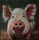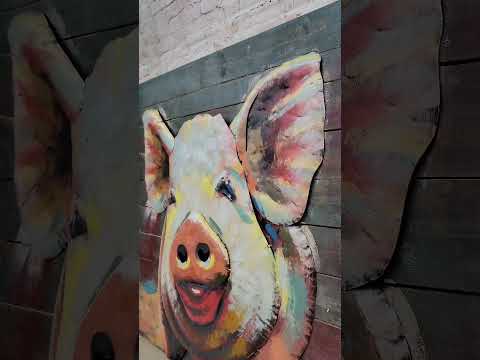 Pig Farm Animal Wall Art Hanging Decor 3D Metal Cutout Painting on Wood Canvas
