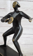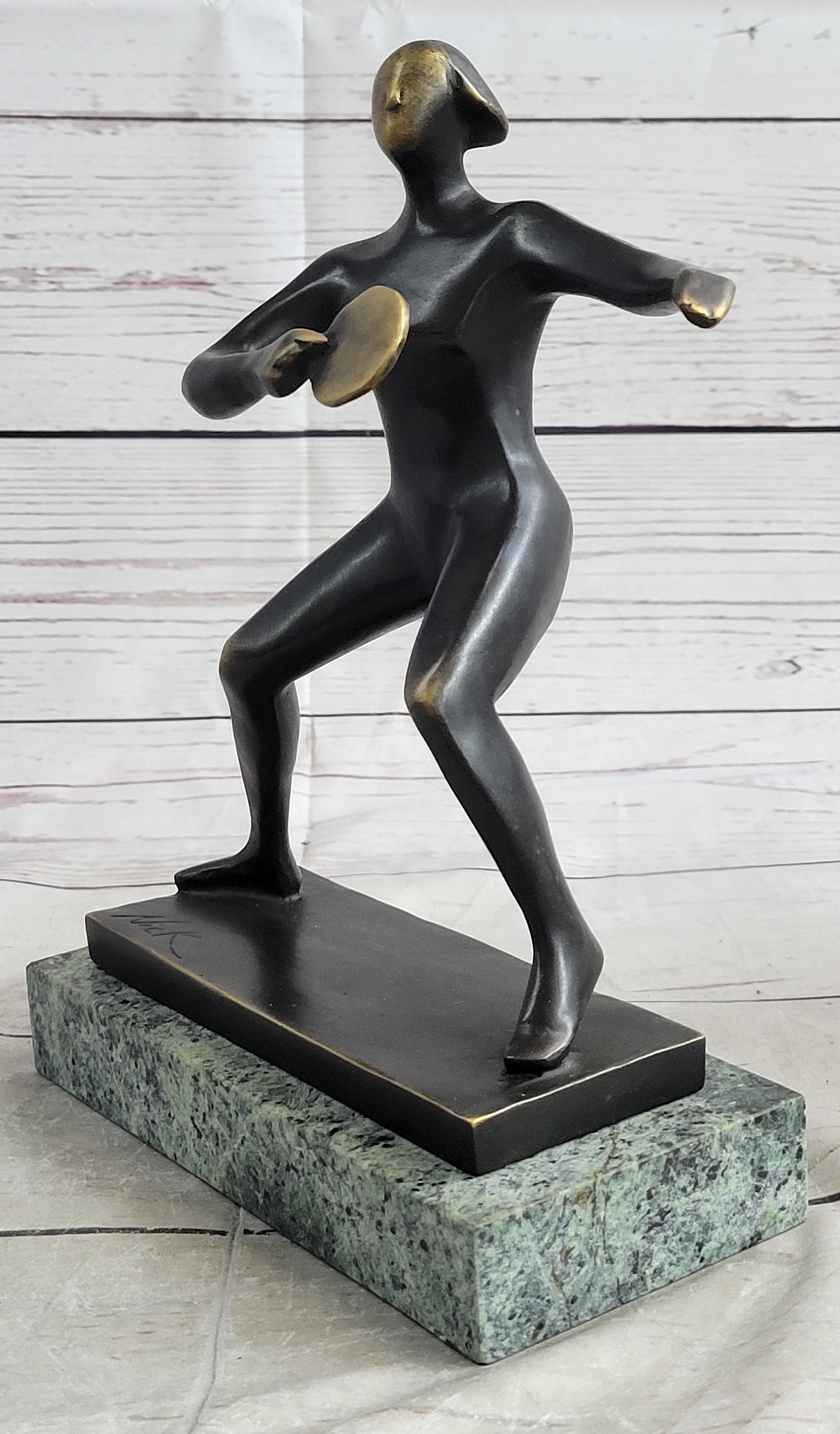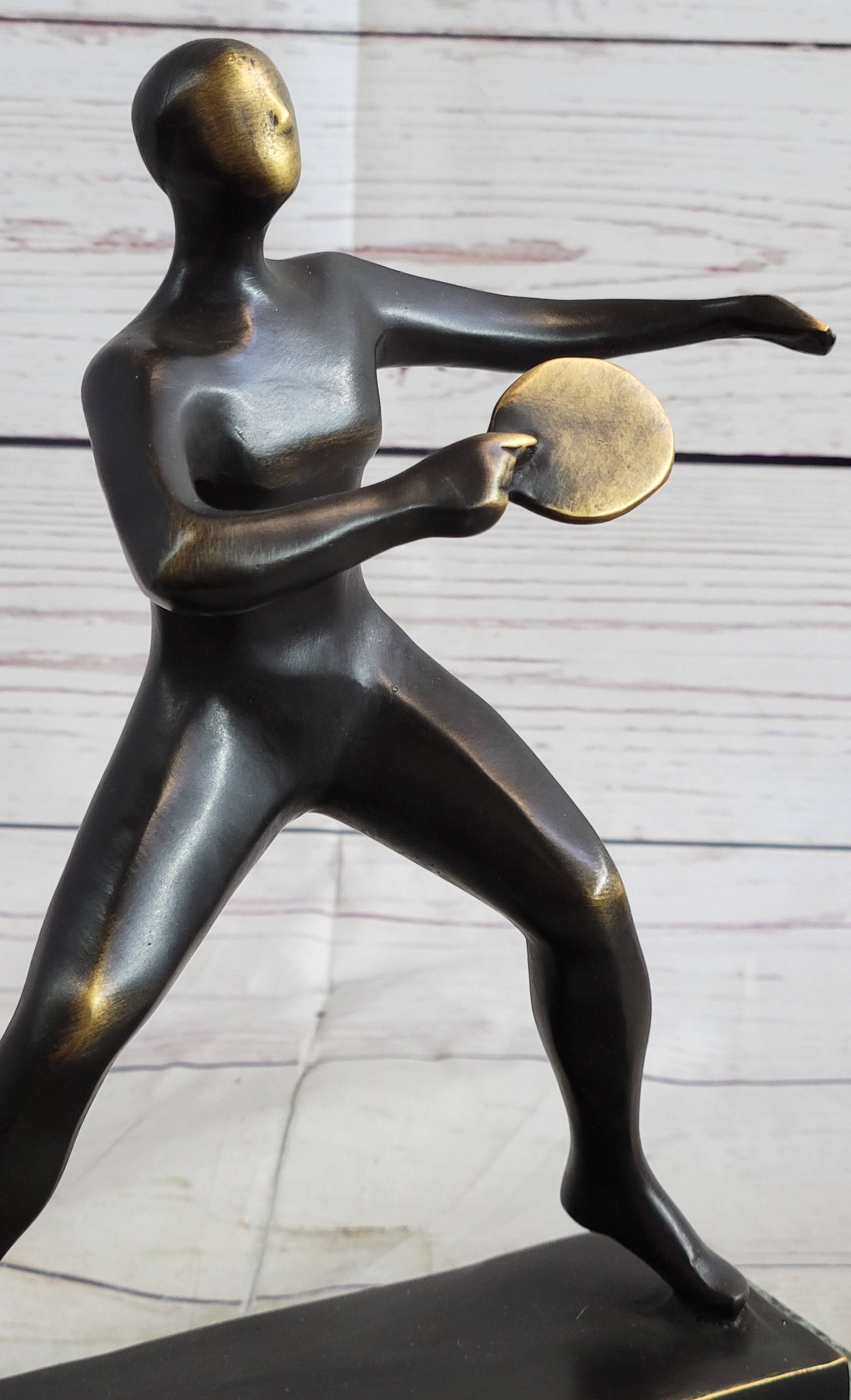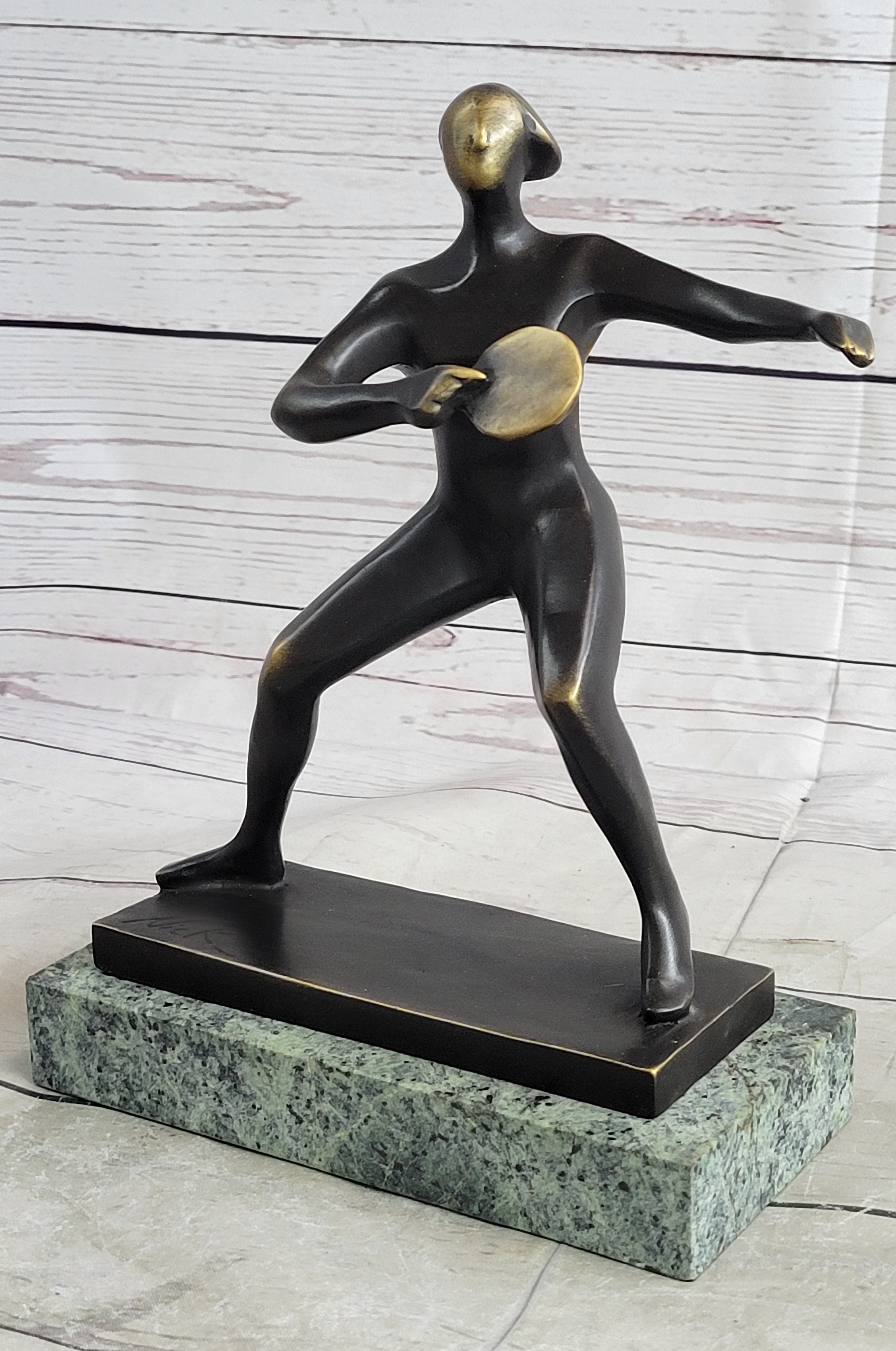 Ping Pong Bronze Metal Sculpture Statue Trophy Figure on Green Marble Base
