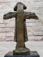 The skeleton pirate exudes an aura of mystery and intrigue, standing as a unique and captivating figurine. Its brown patina finish adds depth and character to the sculpture, enhancing the skeletal details and bringing the pirate to life in an artistic form. The choice of a marble base not only complements the sculpture's aesthetics but also provides stability and a touch of sophistication to this exceptional artwork.