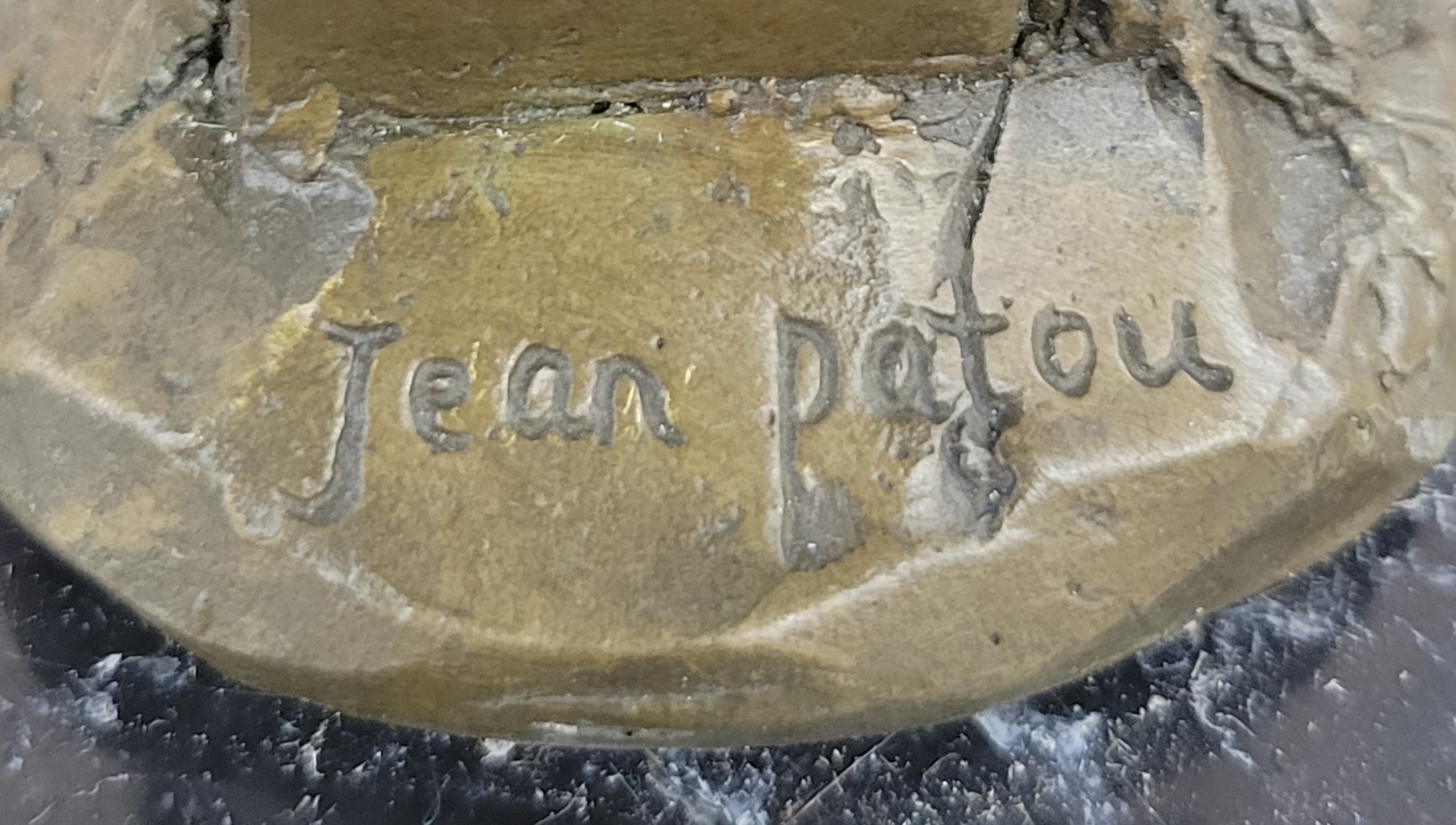Signed by the accomplished artist Jean Patoue, this bronze sculpture is a collector's dream and a testament to the enduring appeal of pirate lore in art. Whether displayed as a conversation piece or cherished as part of a fine art collection, this skeleton pirate figurine is a rare and remarkable addition to any space.Bronze Dimensions with Marble Base: Height 9" X Width 5"