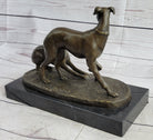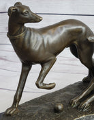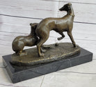 This bronze masterpiece not only serves as a testament to the timeless allure of Italian greyhounds but also celebrates Mene's mastery of his craft. It's a captivating addition to any art collection, evoking a sense of refinement and sophistication that harkens back to the bygone era of European aristocracy. With its meticulous attention to detail and the rich warmth of its patina finish, this sculpture honors the enduring legacy of Mene's artistry and the enduring appeal of Italian greyhounds.Bronze Dimensions with Marble Base: Height 8.5" x Width 10"