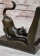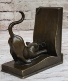 Playful Bronze Cat Bookends – Whimsical Feline Library Décor Signed Original Art