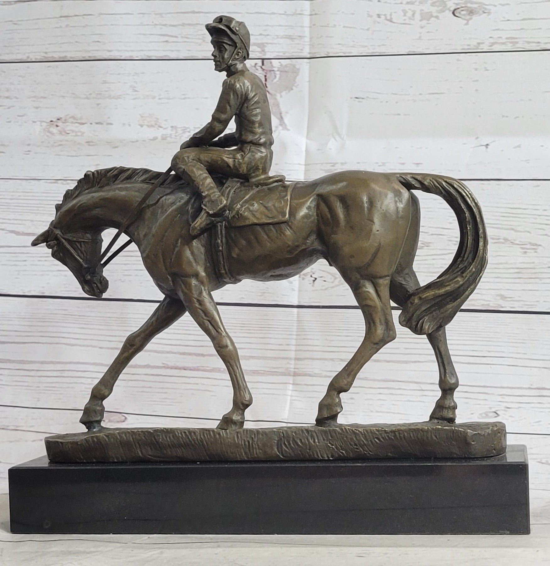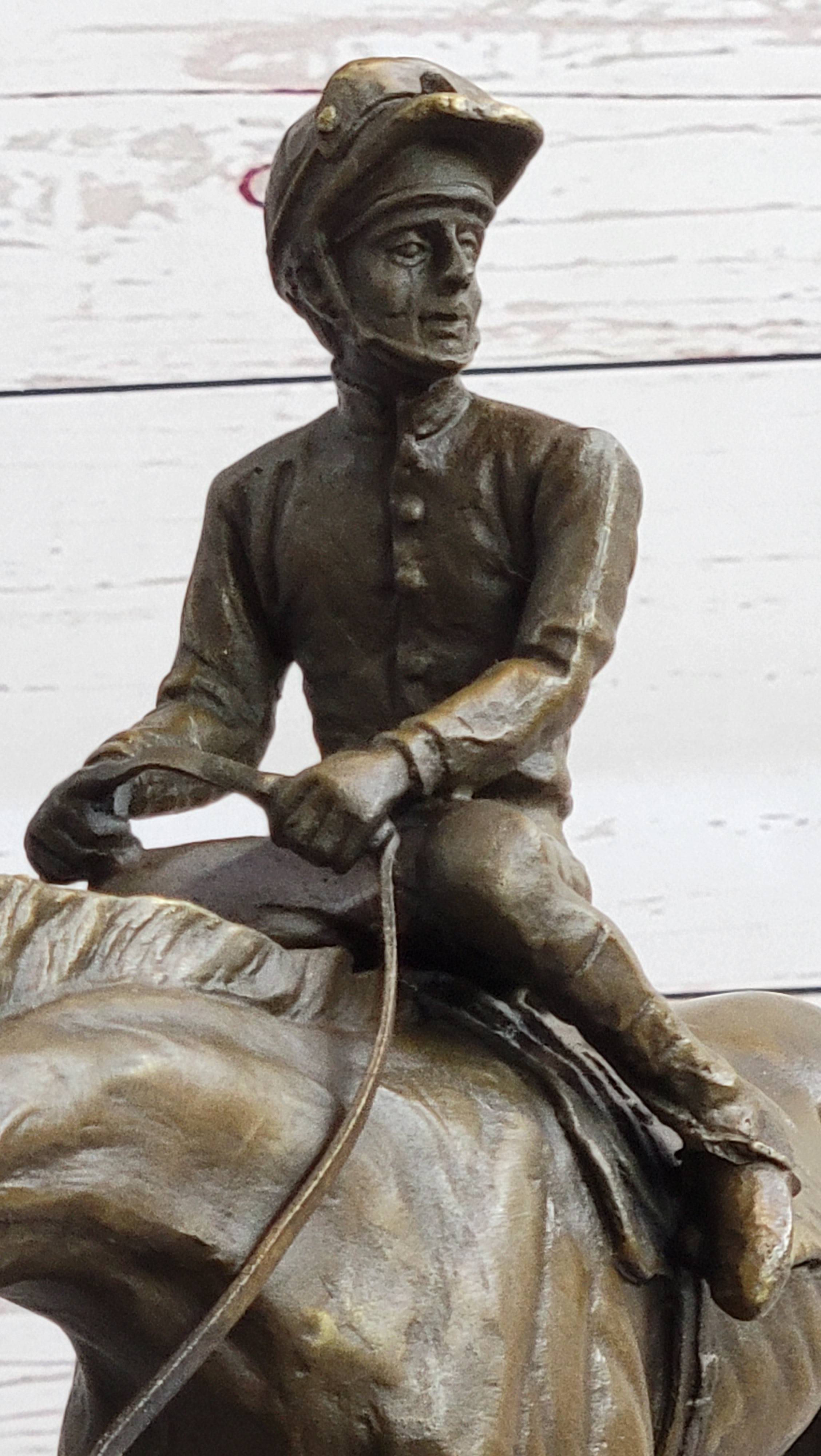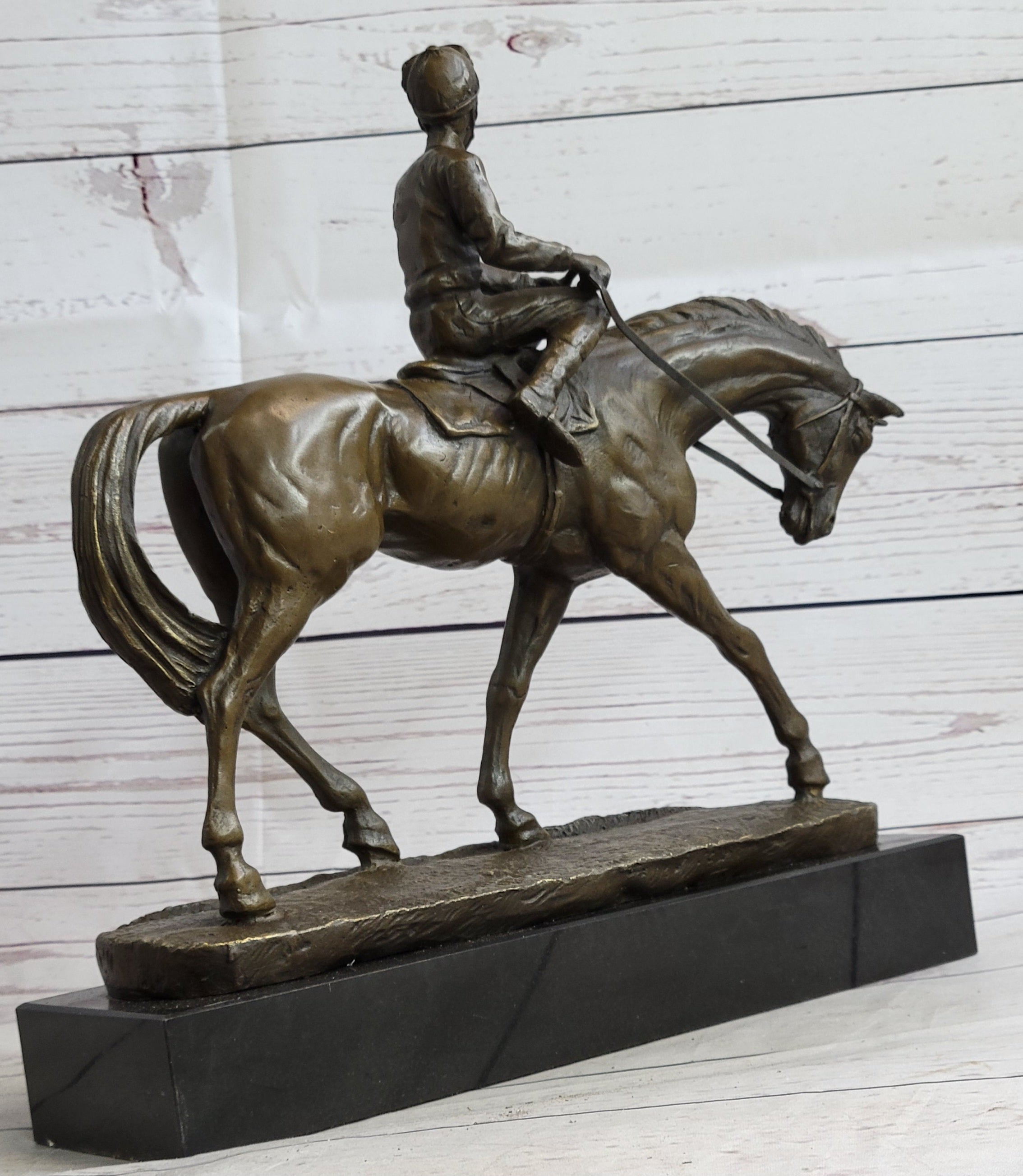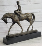 Polo Jockey on Horseback Equestrian Bronze Statue Sculpture Signed Art on Marble Base
