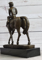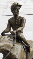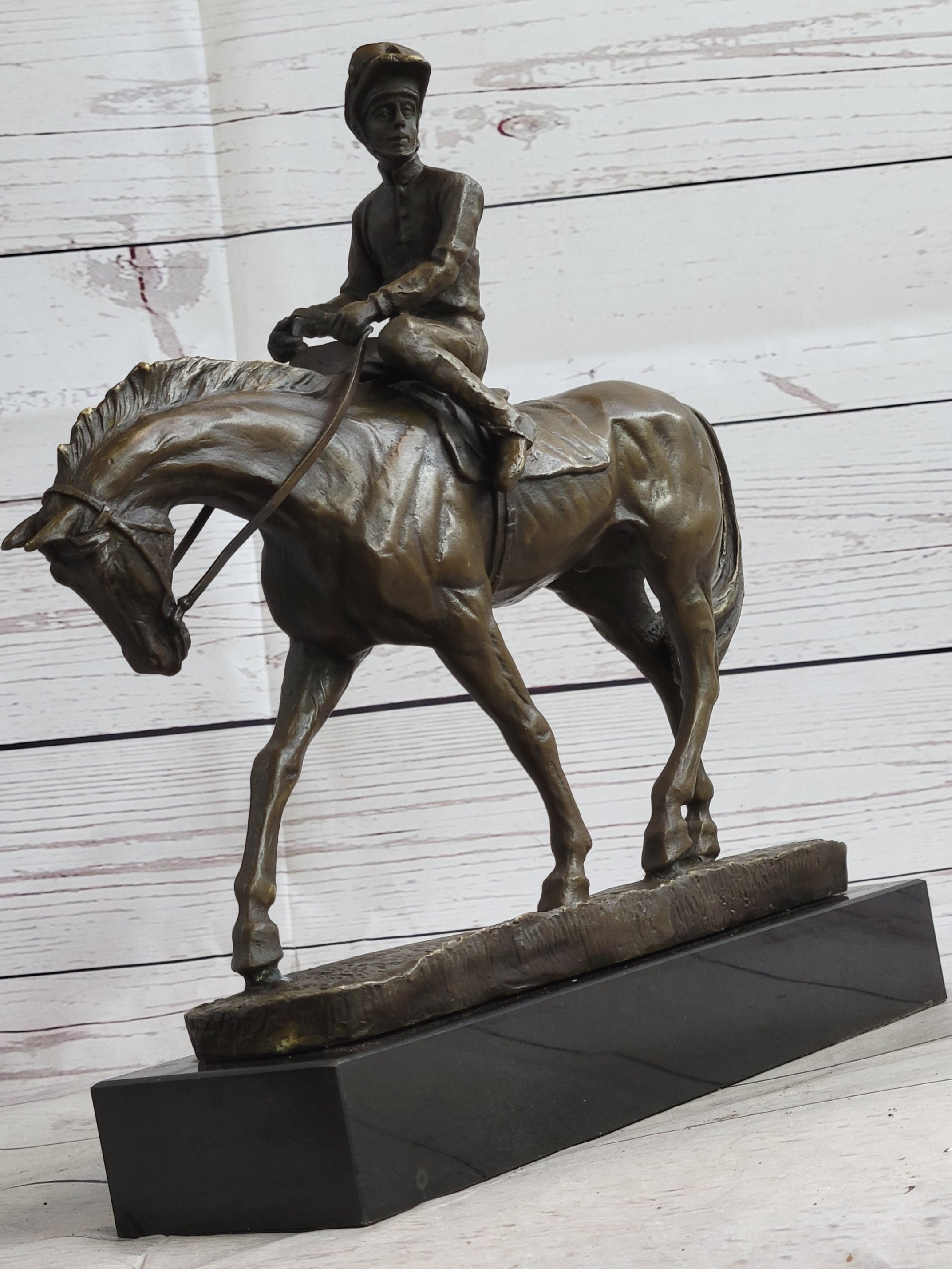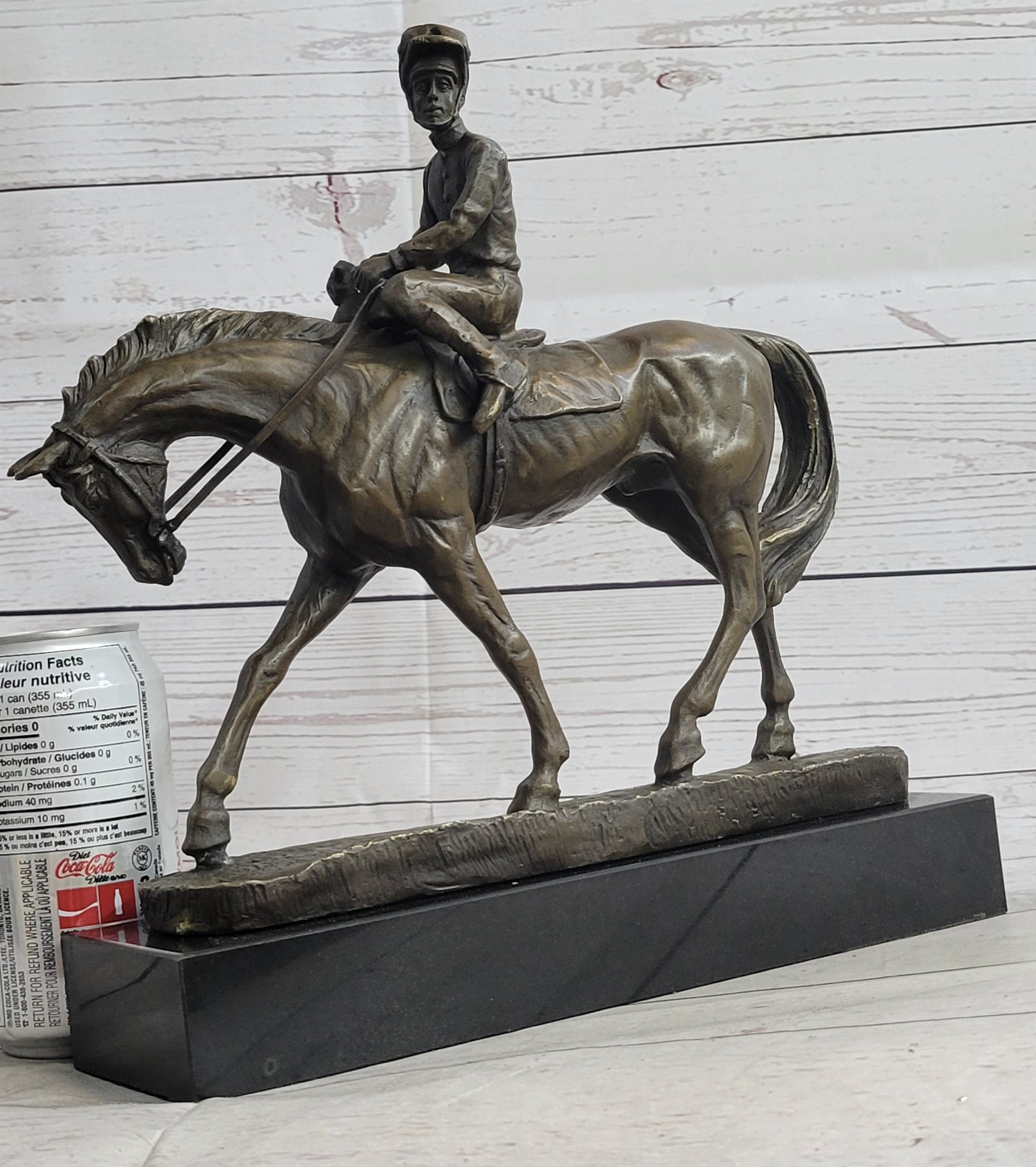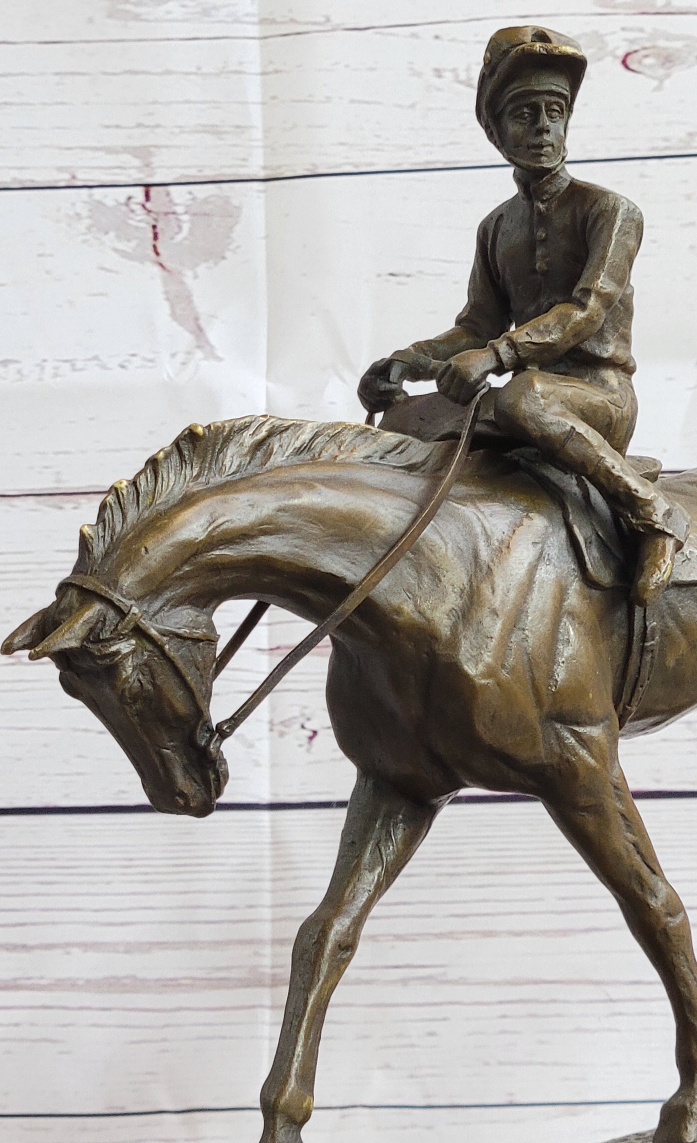 Polo Jockey on Horseback Equestrian Bronze Statue Sculpture Signed Art on Marble Base