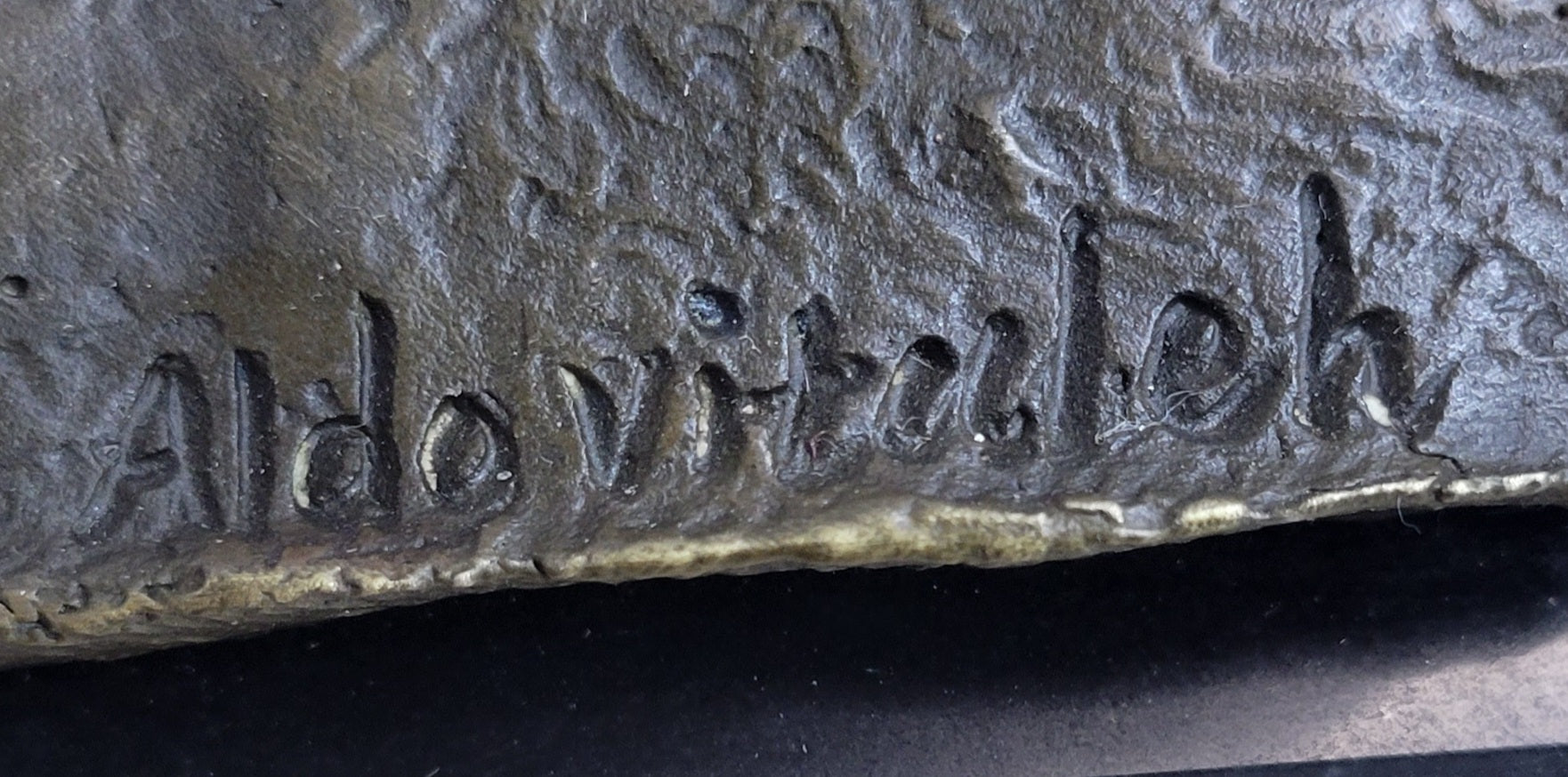 Crafted using the time-honored lost wax method, this sculpture is a testament to the artist's dedication to their craft. It stands proudly on a black marble base, adding to its aesthetic appeal and stability. Signed by the renowned artist Aldo Vitaleh, this bronze masterpiece is not only a work of art but also a celebration of the enduring spirit of horse racing. It's a perfect addition to any collection or space, offering a glimpse into the world of equestrian excellence.Bronze Dimensions with Marble Base: Height 12" X Width 11.5"