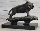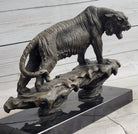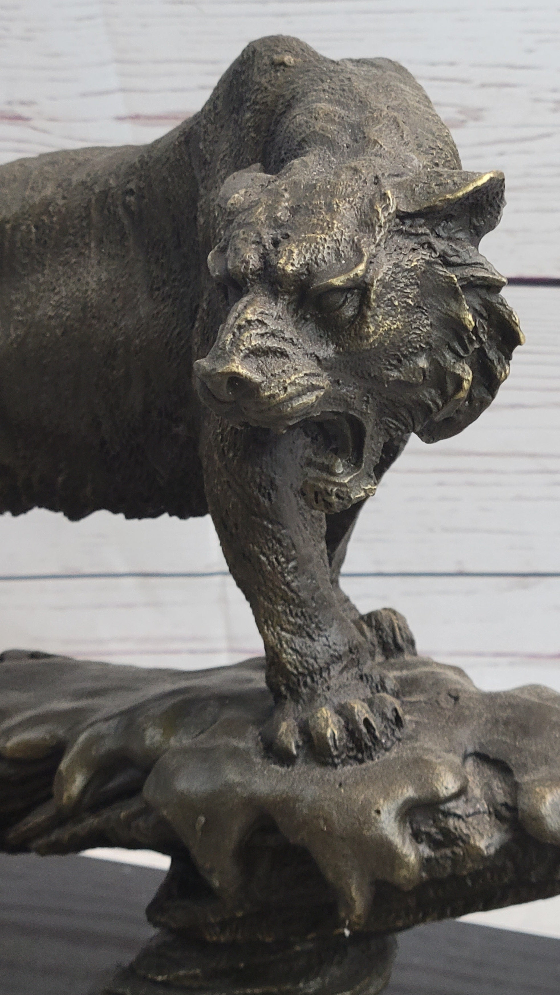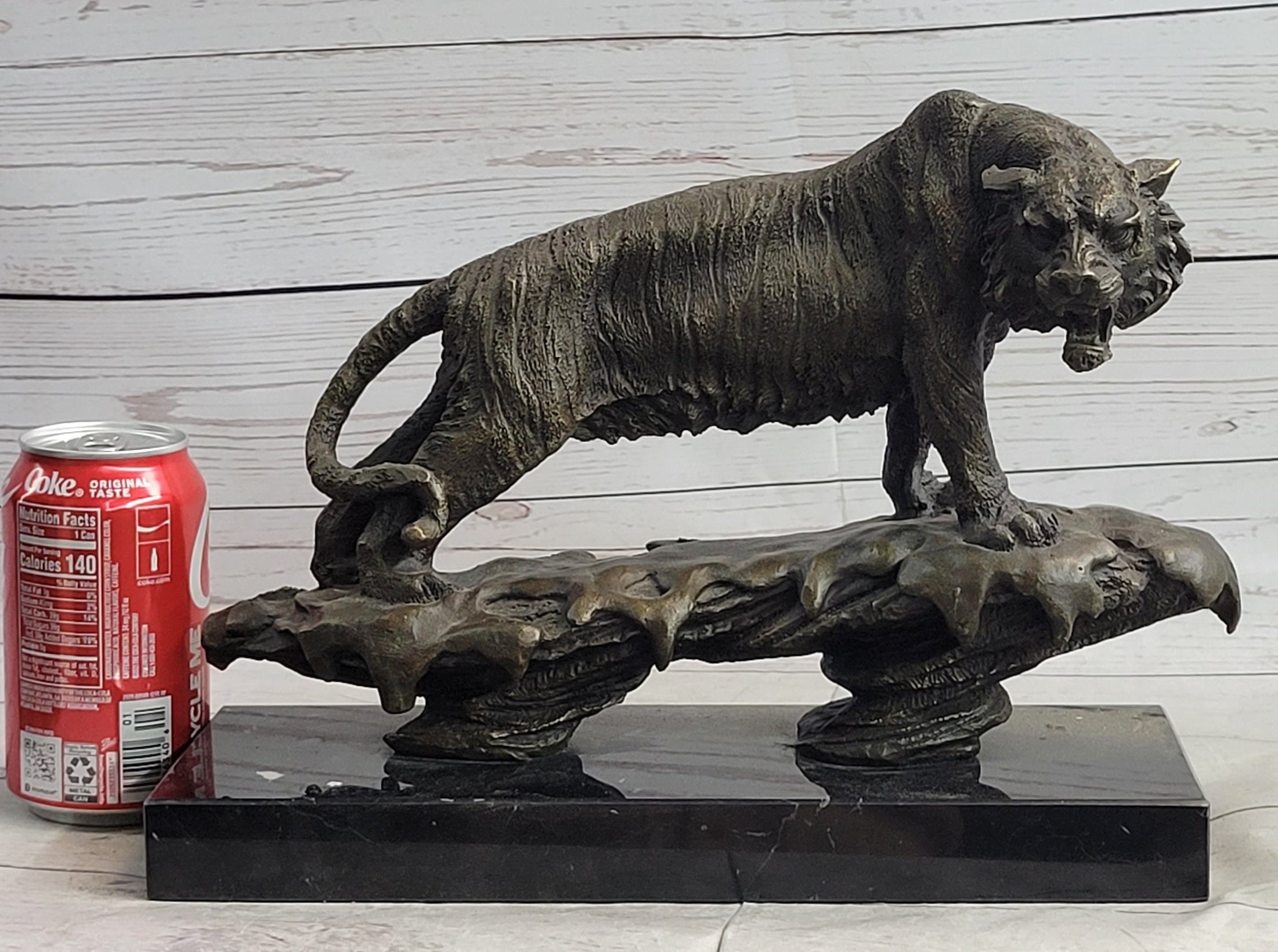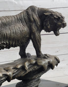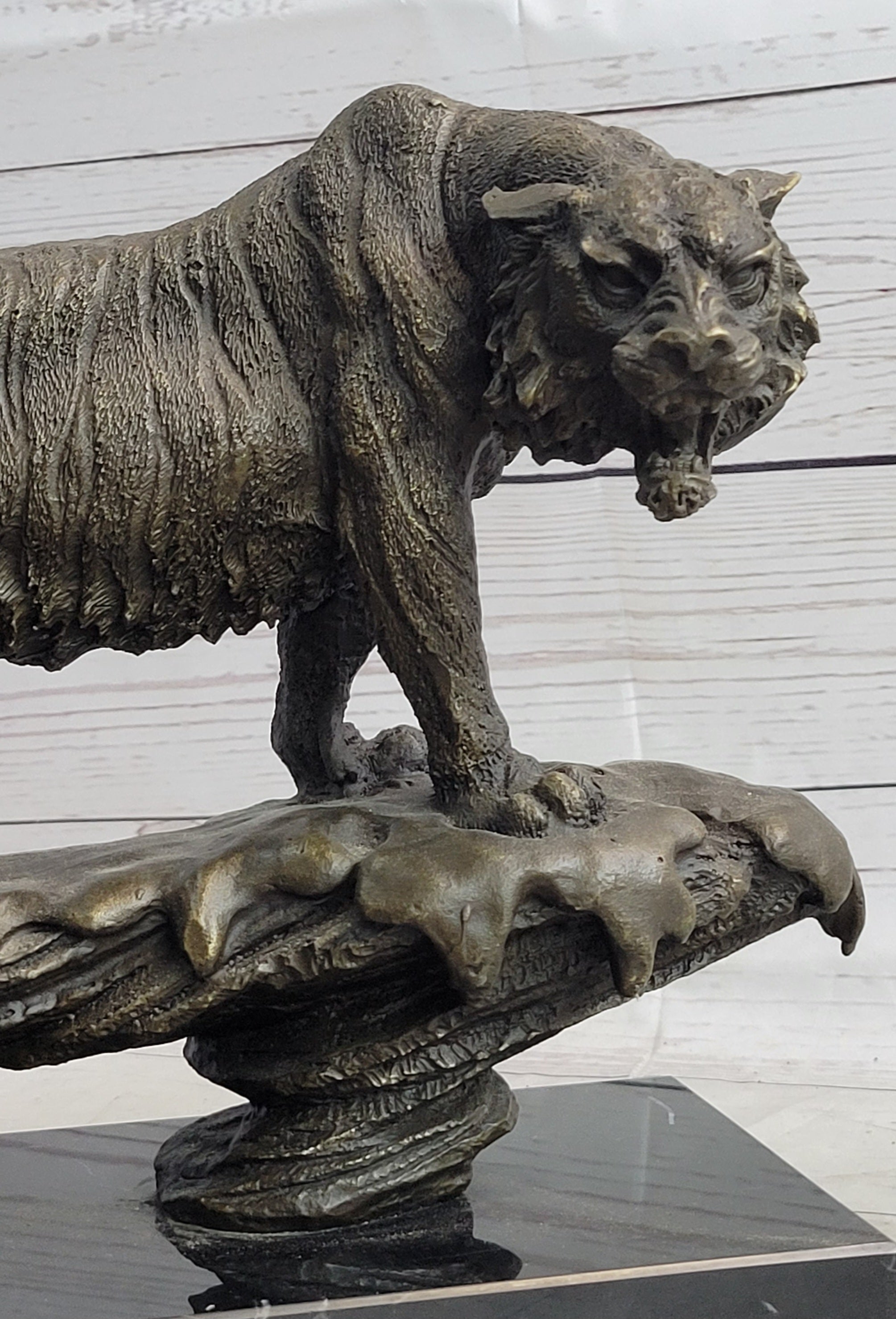 Powerful Bronze Tiger Sculpture on Marble Base – Fierce Big Cat Statue with Detailed Expression and Movement