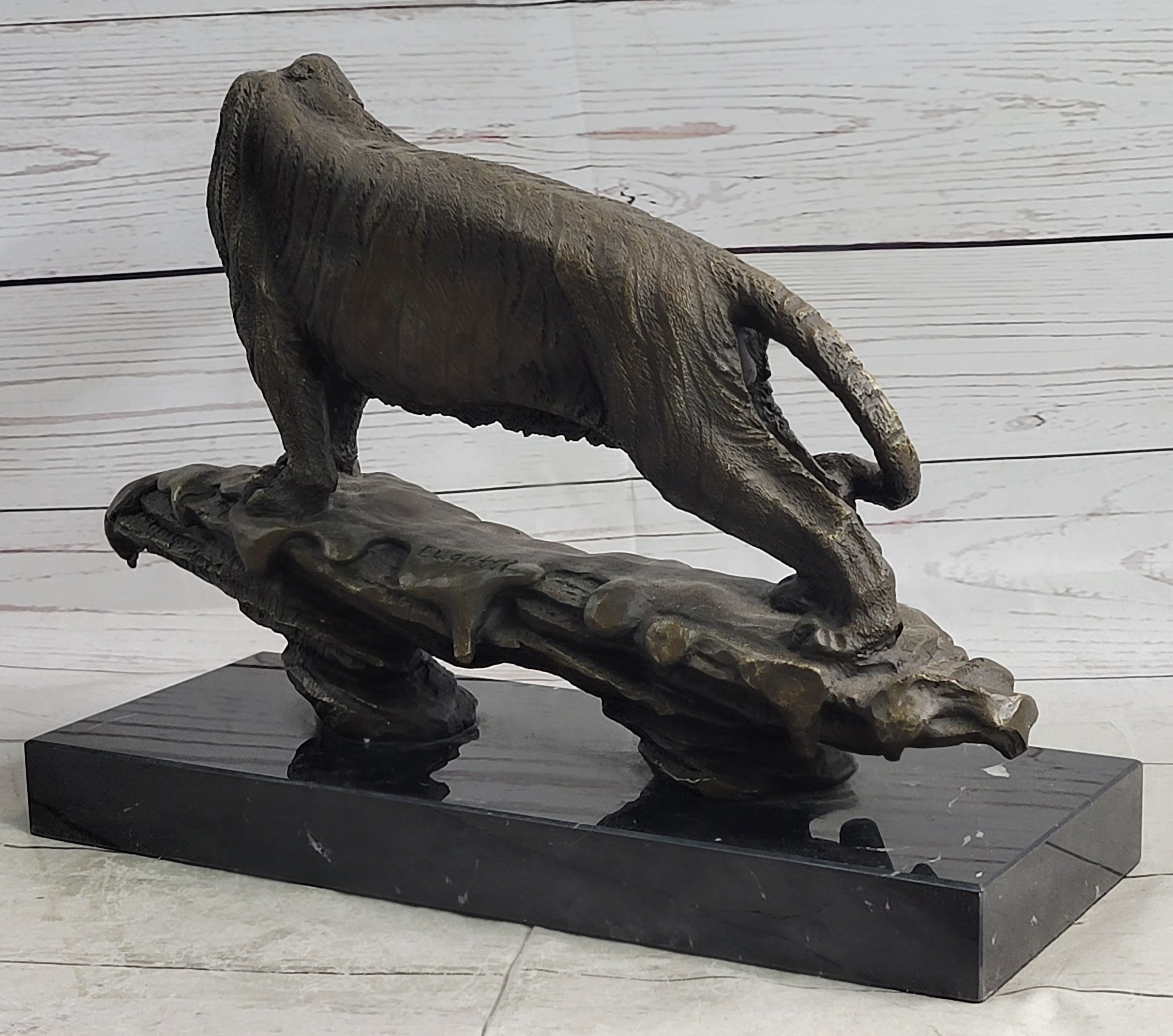 Bring the untamed spirit of the tiger into your home or collection with this exceptional bronze sculpture. Whether displayed on a mantel, shelf, or desk, it will captivate viewers with its lifelike presence and artistic craftsmanship. Perfect for wildlife enthusiasts and art collectors alike, this Bugatti Tiger Wildlife sculpture is a testament to the timeless allure of nature's most magnificent creatures.Bronze Dimensions with Marble Base: Height 9.5" X Width 12"