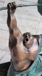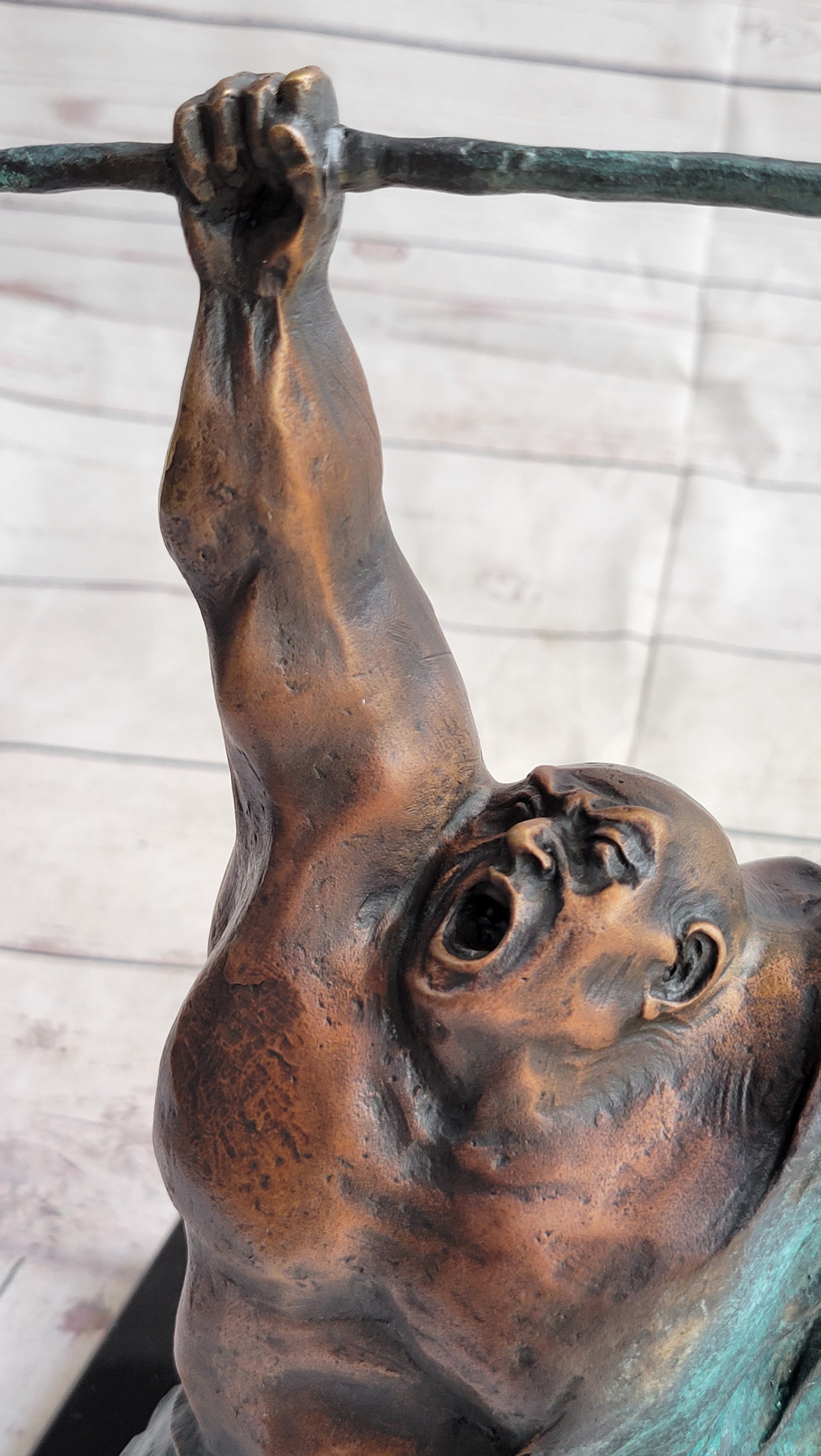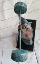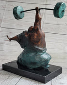 Powerlifter Weight Lifter Bodybuilder Bronze Statue Sculpture Figure on Marble Base Original Art