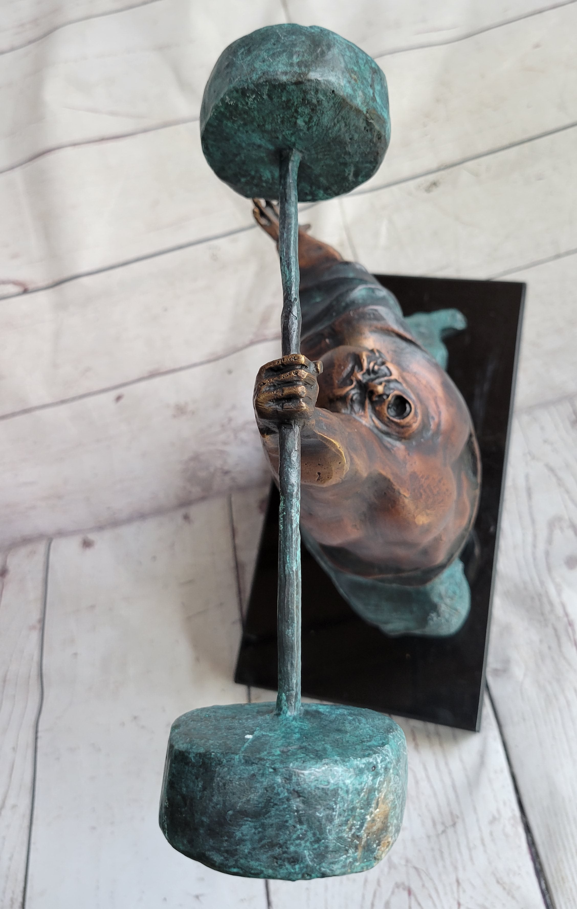 This extraordinary bronze sculpture is destined to be cherished for years to come, serving as a testament to the dedication and passion of weightlifters and fitness enthusiasts alike. Its profound beauty and enduring craftsmanship make it an exceptional addition to any collection or as a centerpiece in a home or gym.Bronze Dimensions with Marble Base: Height 13" X Width 10.5"