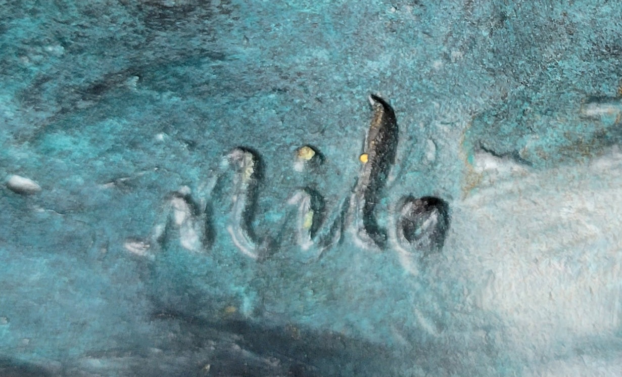 Mounted on a distinguished marble base, the sculpture's overall beauty and grandeur are further enhanced. The combination of bronze and marble creates a visually captivating composition that demands attention. To authenticate its origin and artist, the sculpture proudly bears the signature of the talented artist, Milo, adding both value and authenticity to this remarkable piece of art.