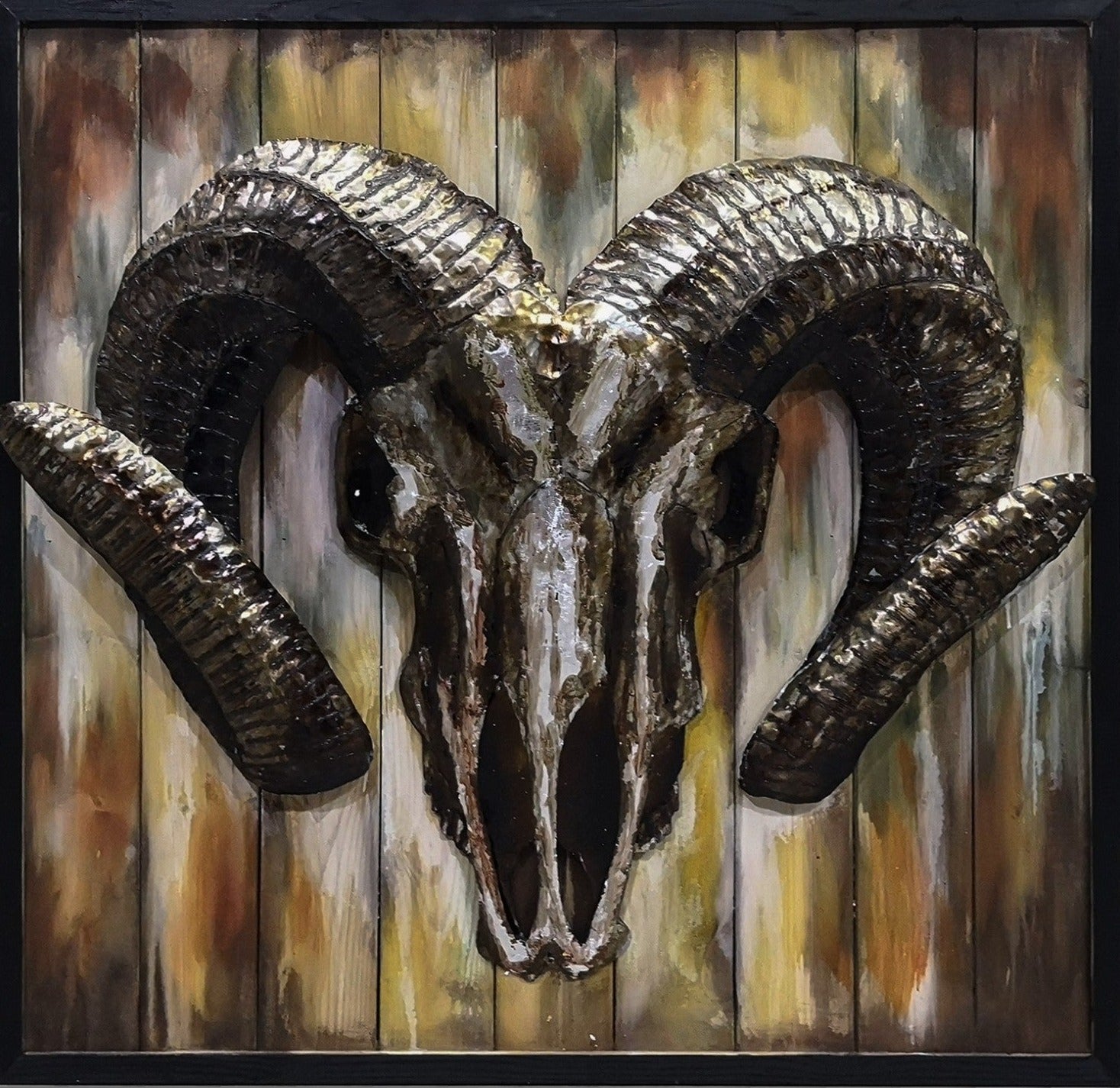 Ram Head 3-D Painting Canvas Classic Artwork Metal Sculpture Figurine Home Decor