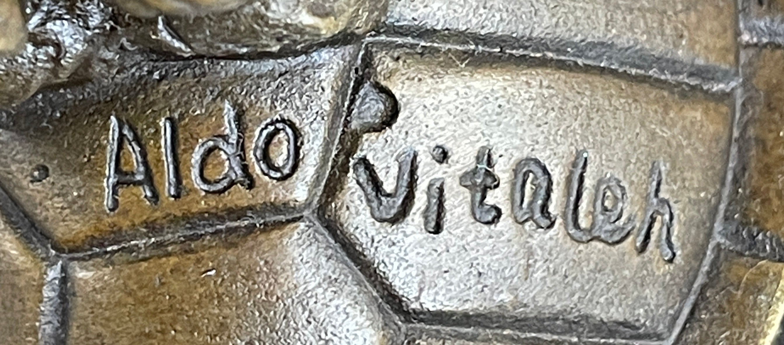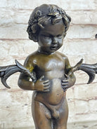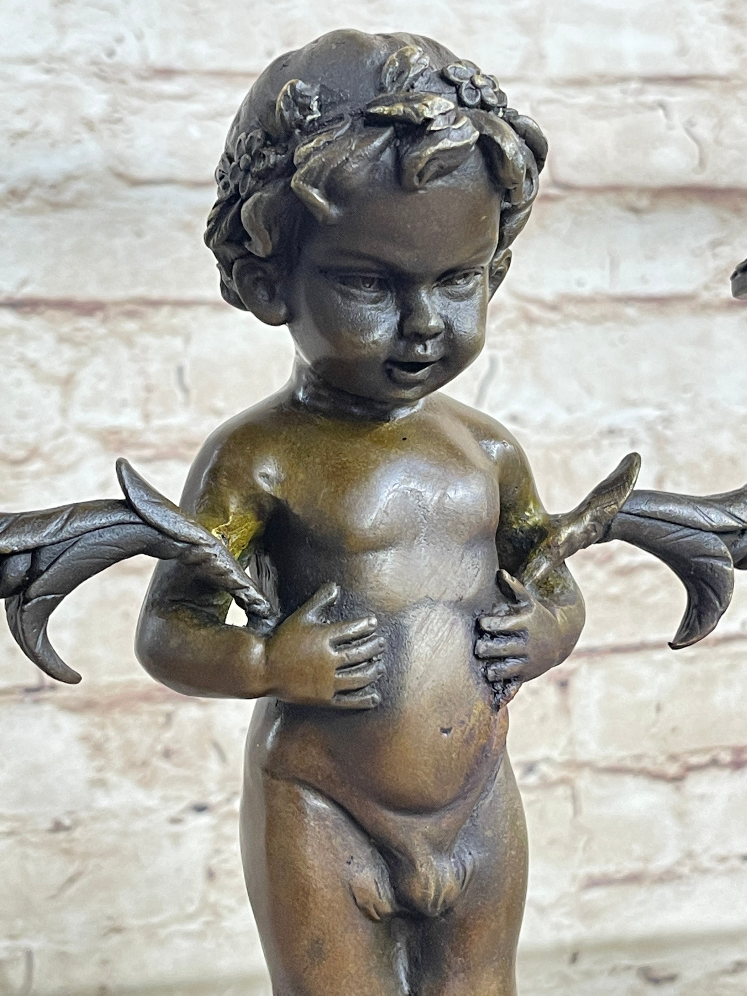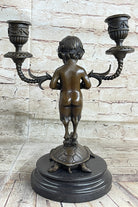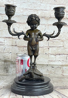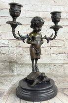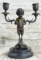 Mounted on a marble base, this piece stands as a testament to the artist's vision and skill. The signature of the artist, Aldo Vitaleh, further authenticates its origin and quality. Ideal for art enthusiasts and collectors seeking a unique and sophisticated addition to their decor, this bronze candelabrum is a conversation starter and a symbol of artistic excellence.Bronze Dimensions with Marble Base: Height 13" X Width 9"