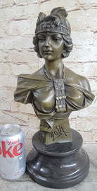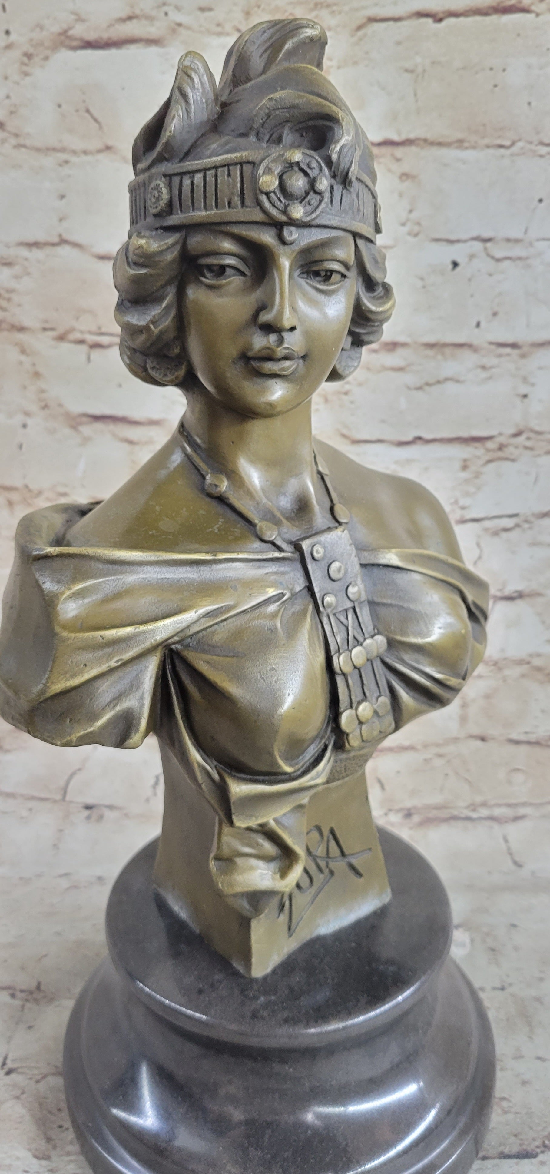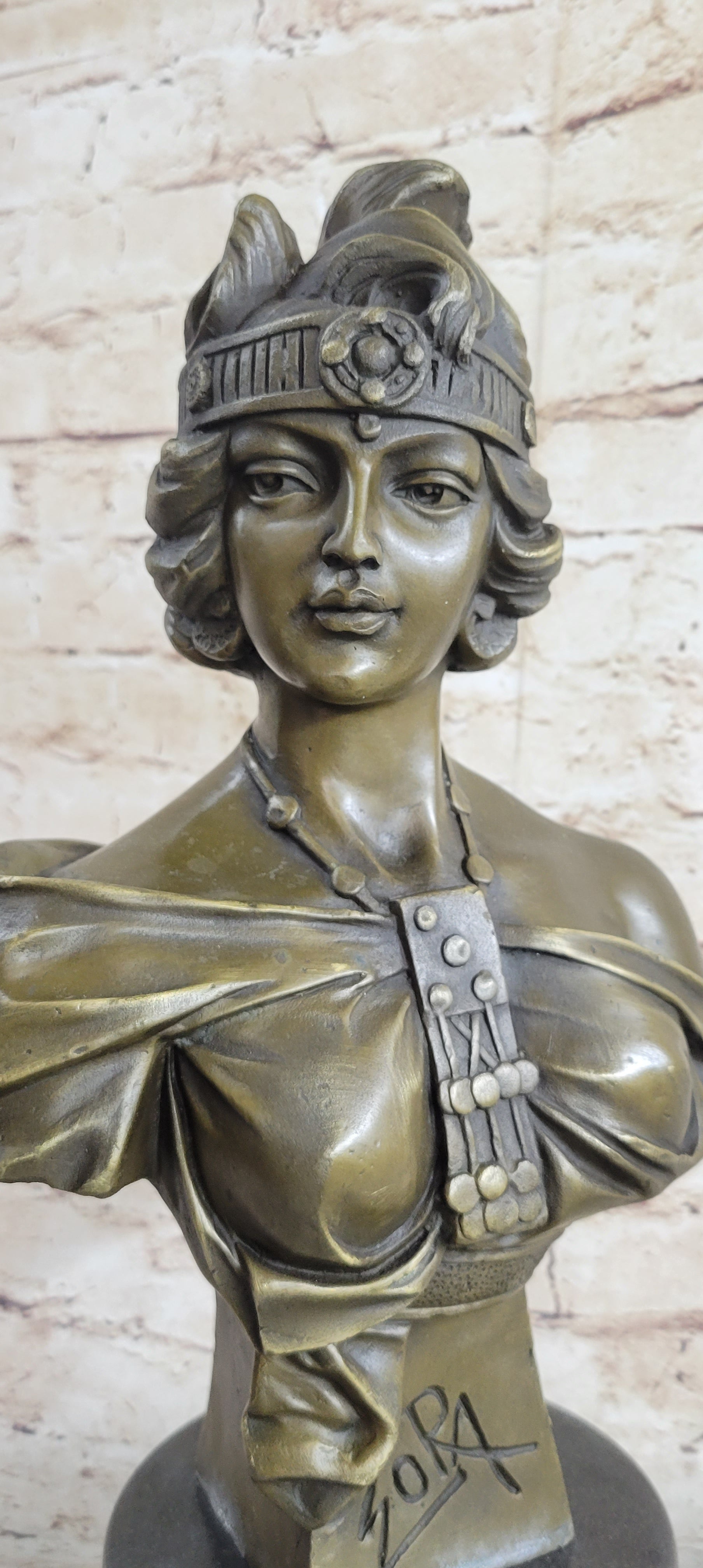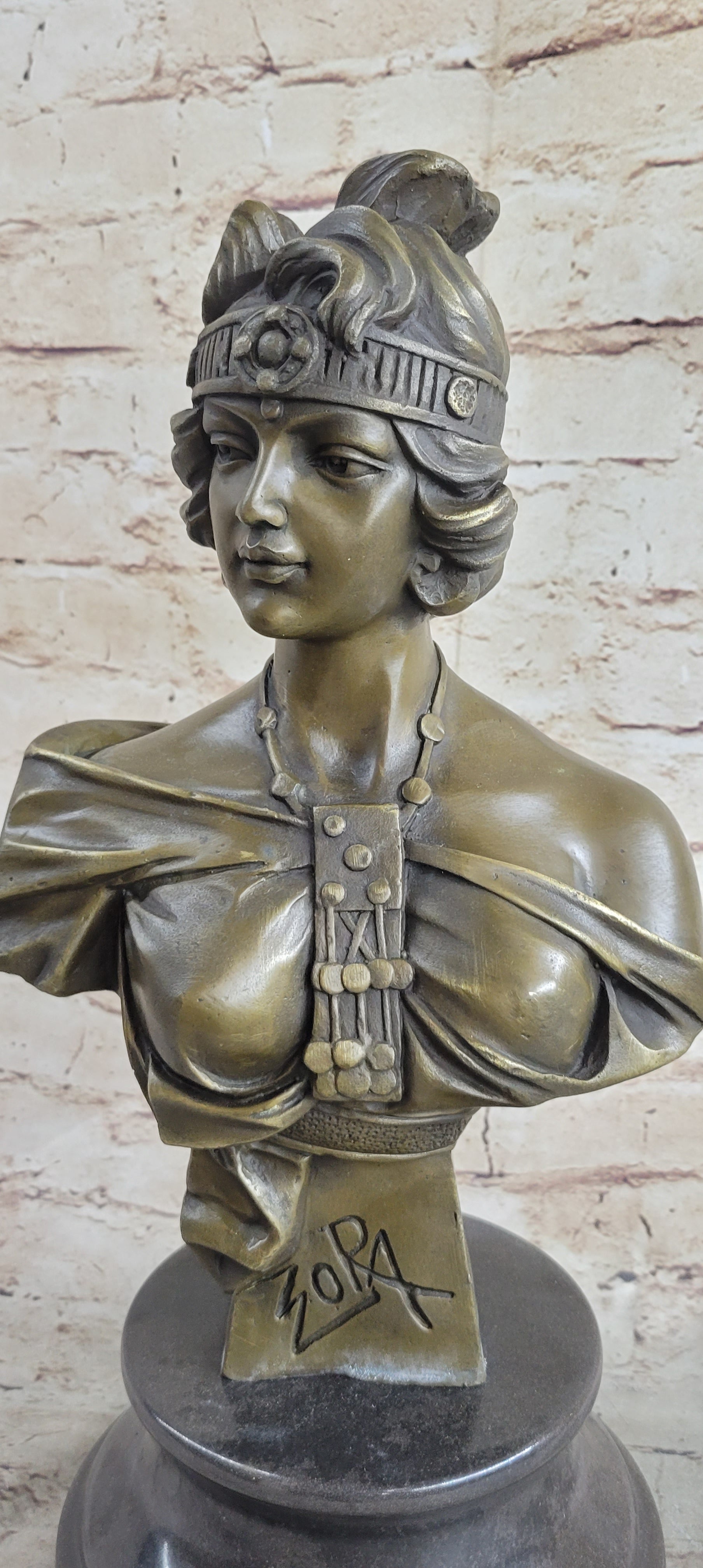 Real 100% Bronze Sculpture Zora by Emmanuel Villanis Hot Cast Marble Base Figure