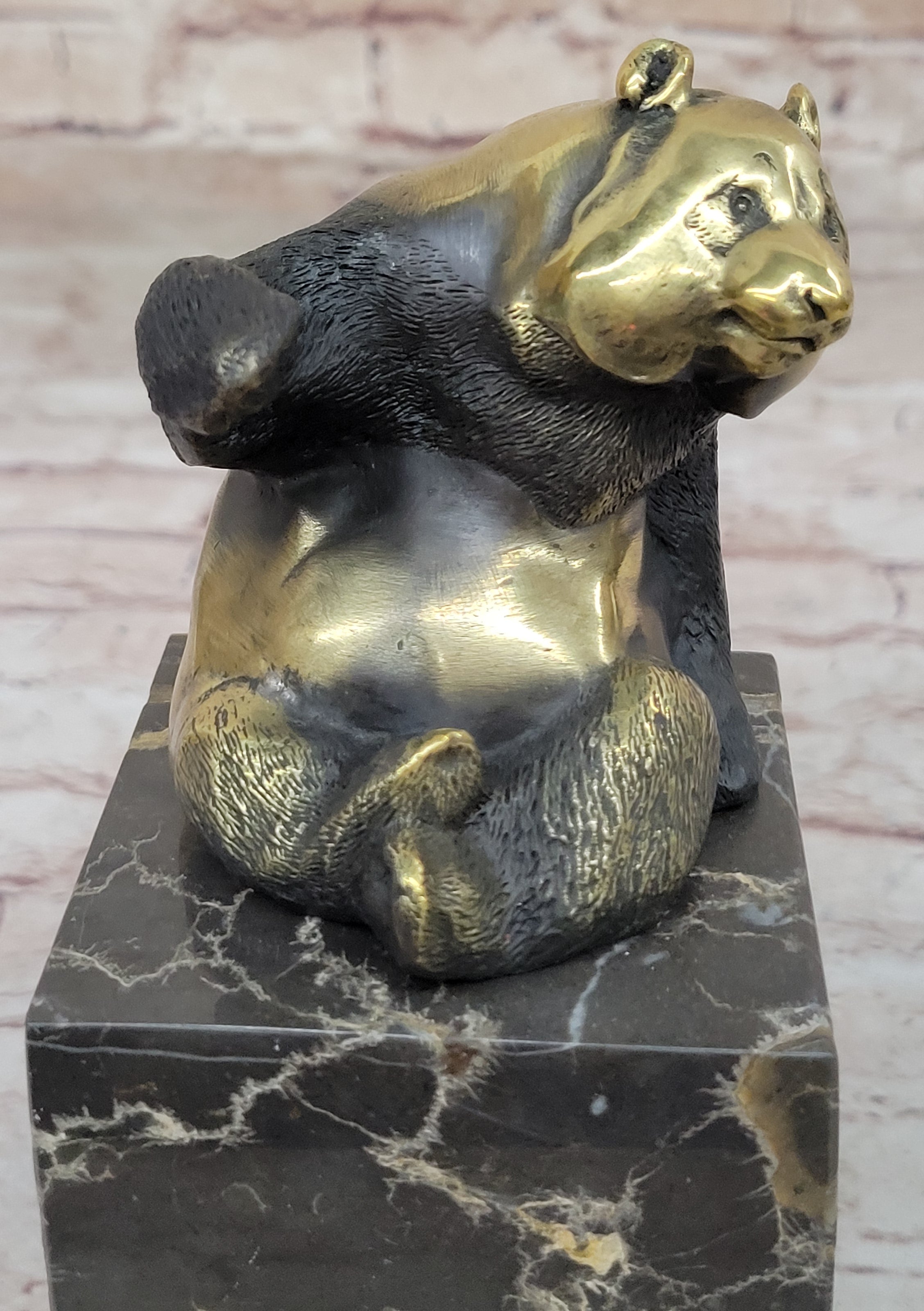Real Bronze Panda Bear Bronze Figurine Sculpture on Marble Base by Milo