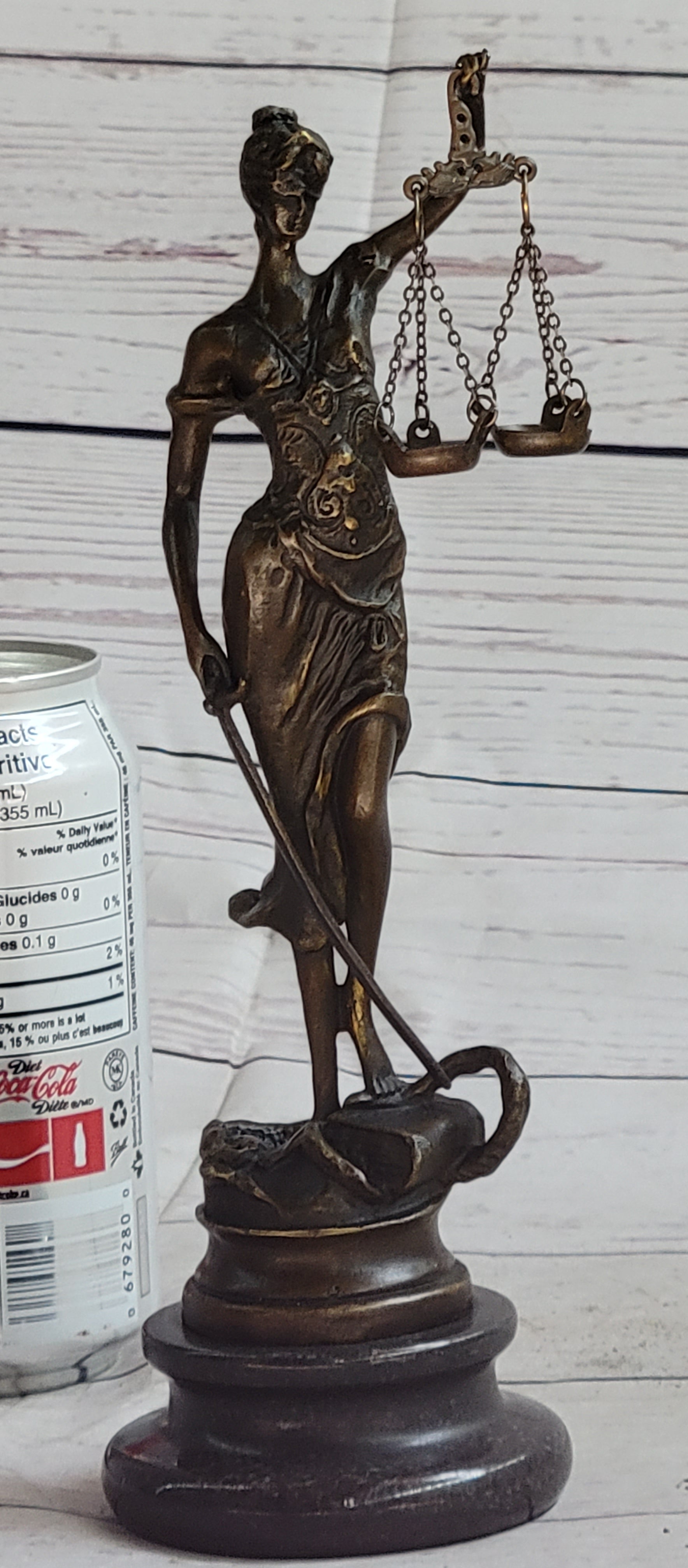 Crafted using the finest materials and techniques, this marble lady blind justice sculpture is a true collector's item. The lost wax method ensures exceptional quality and durability, allowing this artwork to be cherished for generations. With its striking presence and meaningful symbolism, it makes a perfect gift for lawyers, judges, or anyone passionate about the pursuit of justice. Bring a touch of elegance and a powerful message to your surroundings with this remarkable bronze and marble masterpiece.Bronze Dimensions with Marble Base: Height 9" X Width 4"