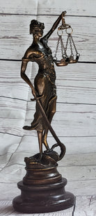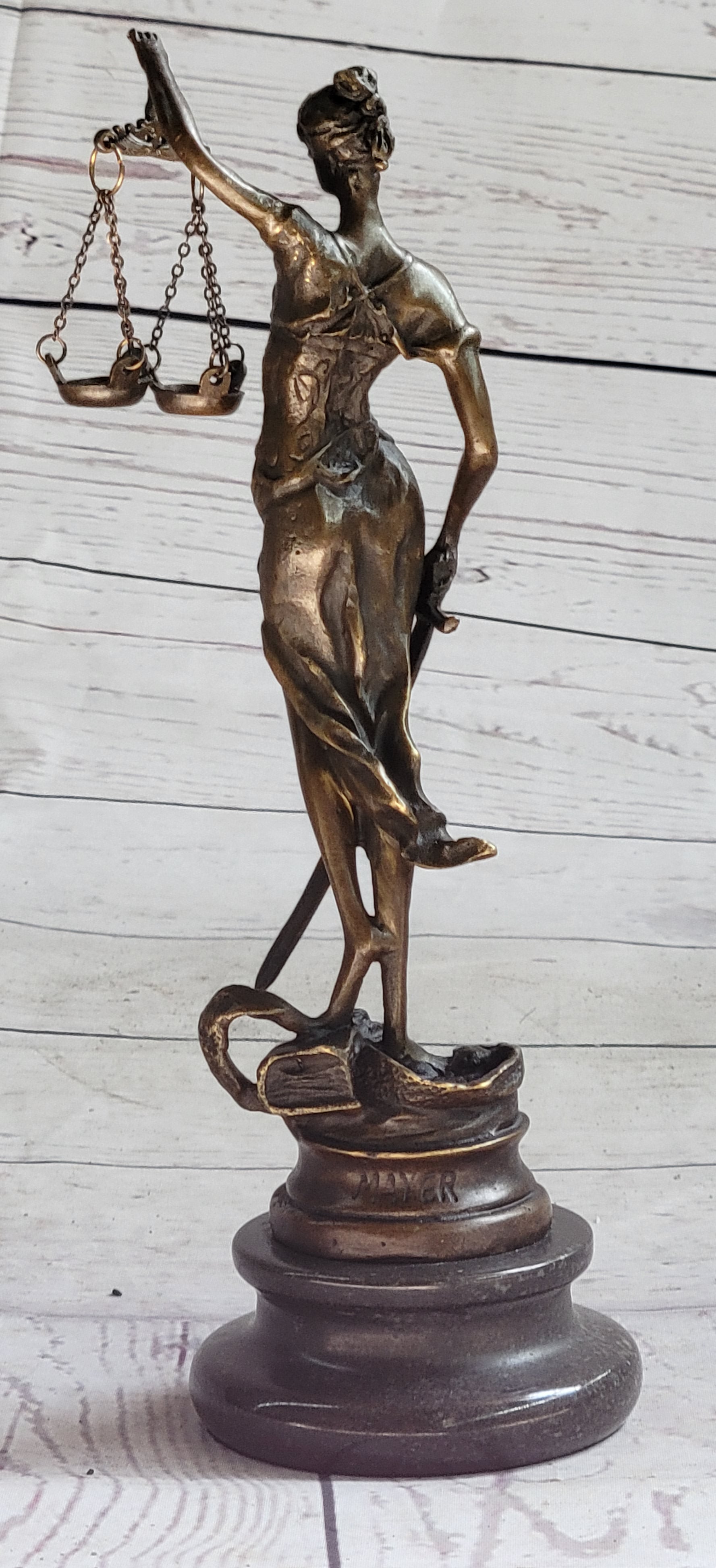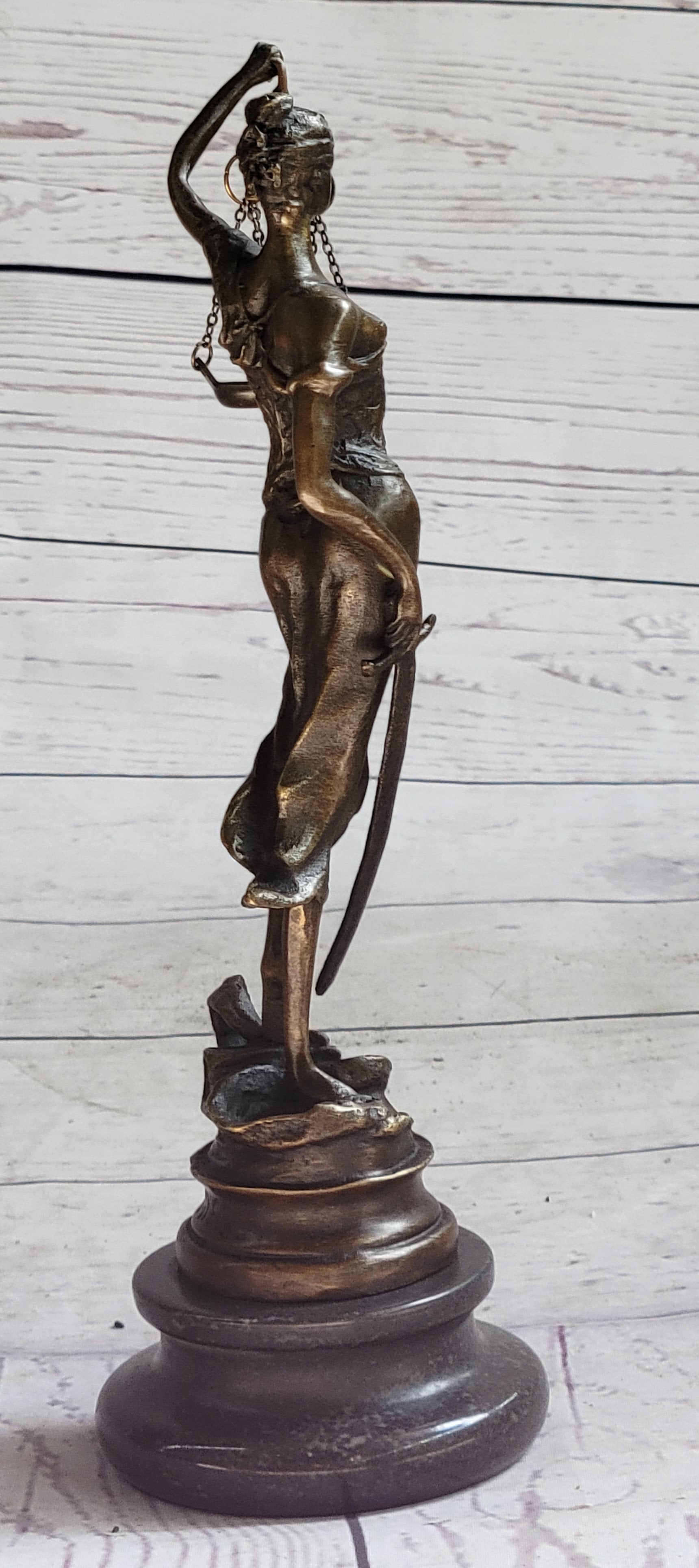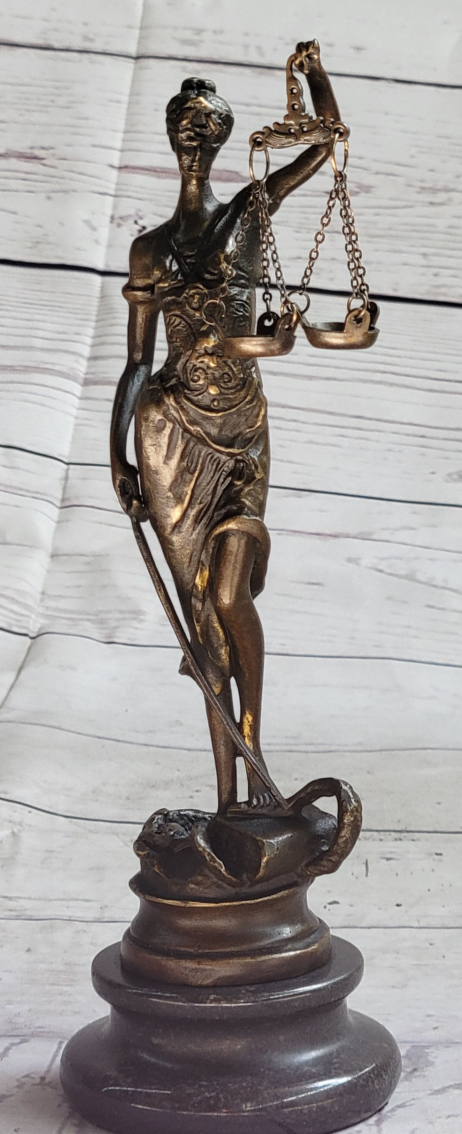 Real Bronze Statue Marble Lady Blind Justice Scales Law Sculpture Marble Figure