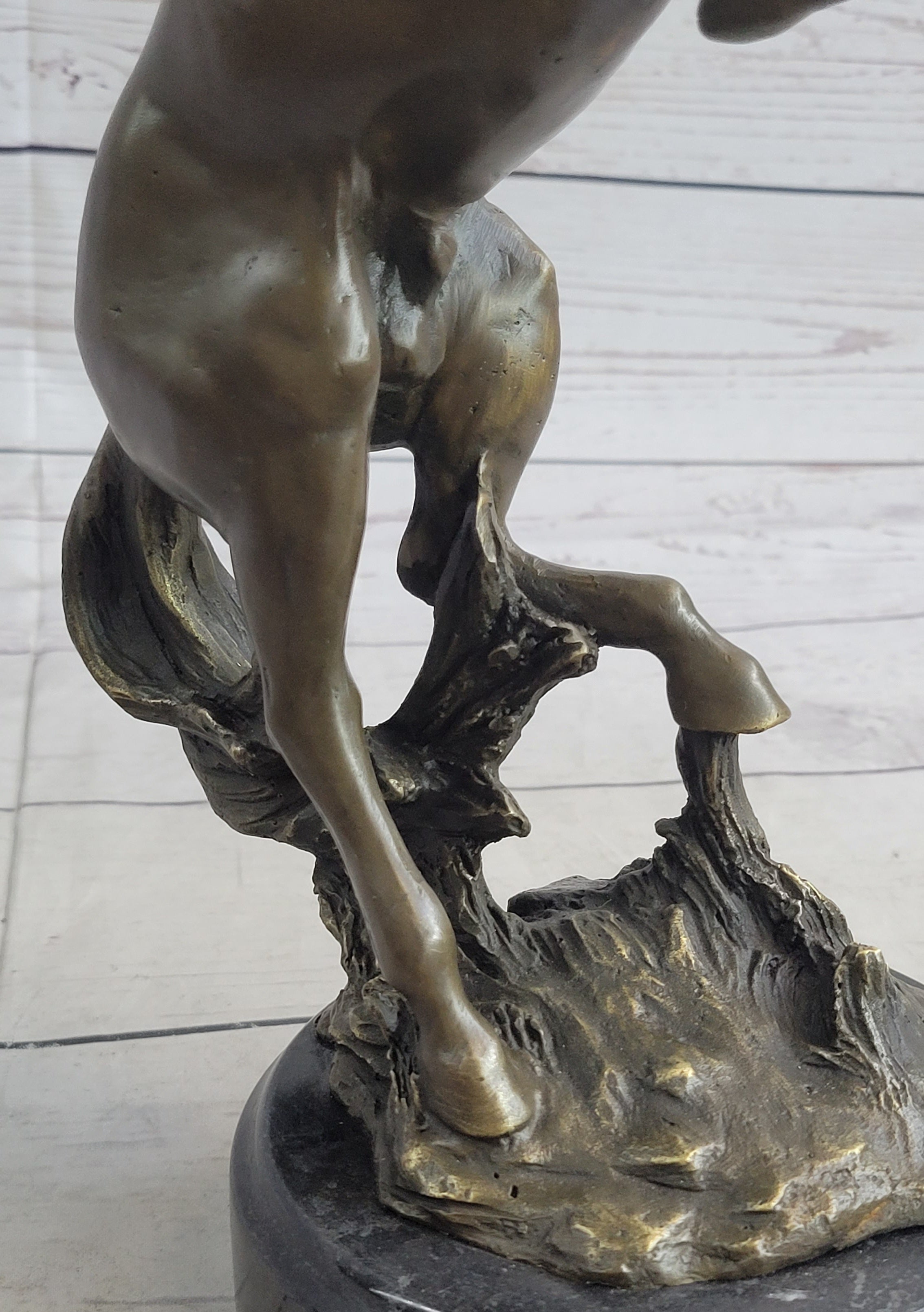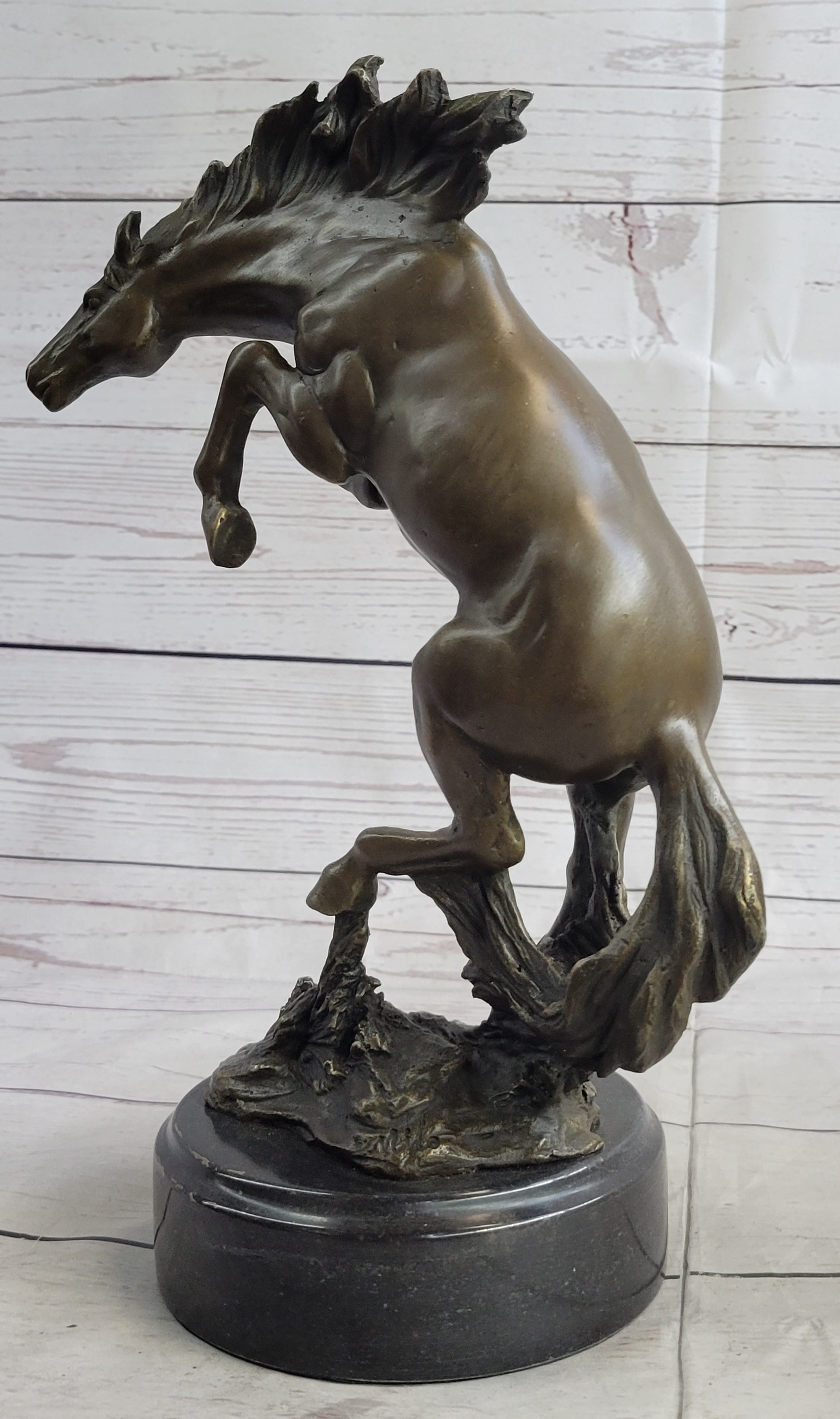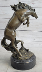 Rearing Horse Bronco Stallion Bronze Statue Sculpture Figure Marble Base 12" x 9.5"