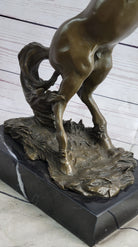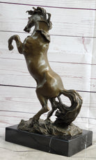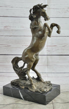 Rearing Horse Bronze Metal Statue Sculpture Figure on Marble Base