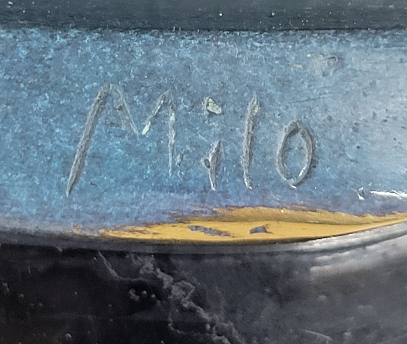 Handcrafted using the traditional lost wax method, this genuine bronze artwork is mounted on a solid black marble base for both stability and elegance. Signed by the artist Milo, this piece reflects exceptional craftsmanship and artistic intent, making it an ideal addition to any fine art collection or interior décor setting that values historical influence and sculptural beauty.Bronze Dimensions with Marble Base: Height 11" X Width 6"