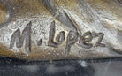 Crafted with meticulous attention to detail, this bronze sculpture is a testament to the skill and artistry of the artist, M. Lopez. The lost wax method, an ancient casting technique known for preserving intricate details, was employed in creating this masterpiece. The sculpture stands proudly atop a sleek black marble base, adding to its overall elegance and stability. Furthermore, it bears the artist's signature, solidifying its authenticity and value.