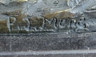 This sculpture is a celebration of the beauty and power of horses, skillfully rendered by the artist P.J. Mene. The dynamic pose of the rearing stallion reflects the spirit and energy of these magnificent creatures. With a commitment to craftsmanship, this handmade bronze sculpture captures the essence of equestrian art, making it a standout addition to any art collection or space. Embrace the beauty of this masterpiece and bring the spirit of the stallion into your surroundings with the Handmade Rearing Horse Stallion Trophy Bronze Sculpture by P.J. Mene.Bronze Dimensions with Marble Base: Height 18.5" X Width 14"