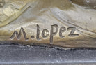 Crafted with exceptional precision and artistry, this sculpture is a testament to the skill of the artist. It was created using the time-honored "Lost Wax Method," ensuring intricate details and an exquisite finish. Mounted proudly on a black marble base, this piece stands as a tribute to the untamed spirit of the horse. It is signed by the artist M. Lopez, a mark of authenticity and quality. Whether displayed in a home, office, or gallery, this sculpture captures the essence of equine power and emotion, making it a captivating addition to any space.Bronze Dimensions with Marble Base: Height 16" X Width 11"