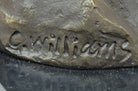 Crafted using the time-honored lost-wax casting method, this sculpture exemplifies the dedication and expertise of the artist. The 100% bronze composition ensures its durability and longevity, while the brown patina finish adds depth and character to the piece. Resting on a sturdy marble base, this artwork is elevated by its detailed bronze plinth, showcasing the meticulous attention to detail. To authenticate its origin and quality, the sculpture bears the signature of the esteemed artist, Miguel Lopez.
