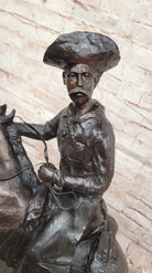 Whether displayed in a western-themed collection or as a striking focal point in any setting, this bronze sculpture captures the essence of the American frontier, offering a timeless tribute to the spirit of adventure and courage embodied by the classic cowboy.Bronze Dimensions with Marble Base: Height 23" X Width 23"