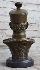 Cast using the ancient "Lost Wax Method," this bronze sculpture is finished with a brown patina for preservation and mounted on a marble base. Every detail of the sculpture is handmade, and it is signed by the artist, Fisher. This sculpture is a must-have for history enthusiasts and those who admire Reza Khan's contributions to Iran's modernization.Bronze Dimensions with Marble Base: Height 11" X Width 5.5"