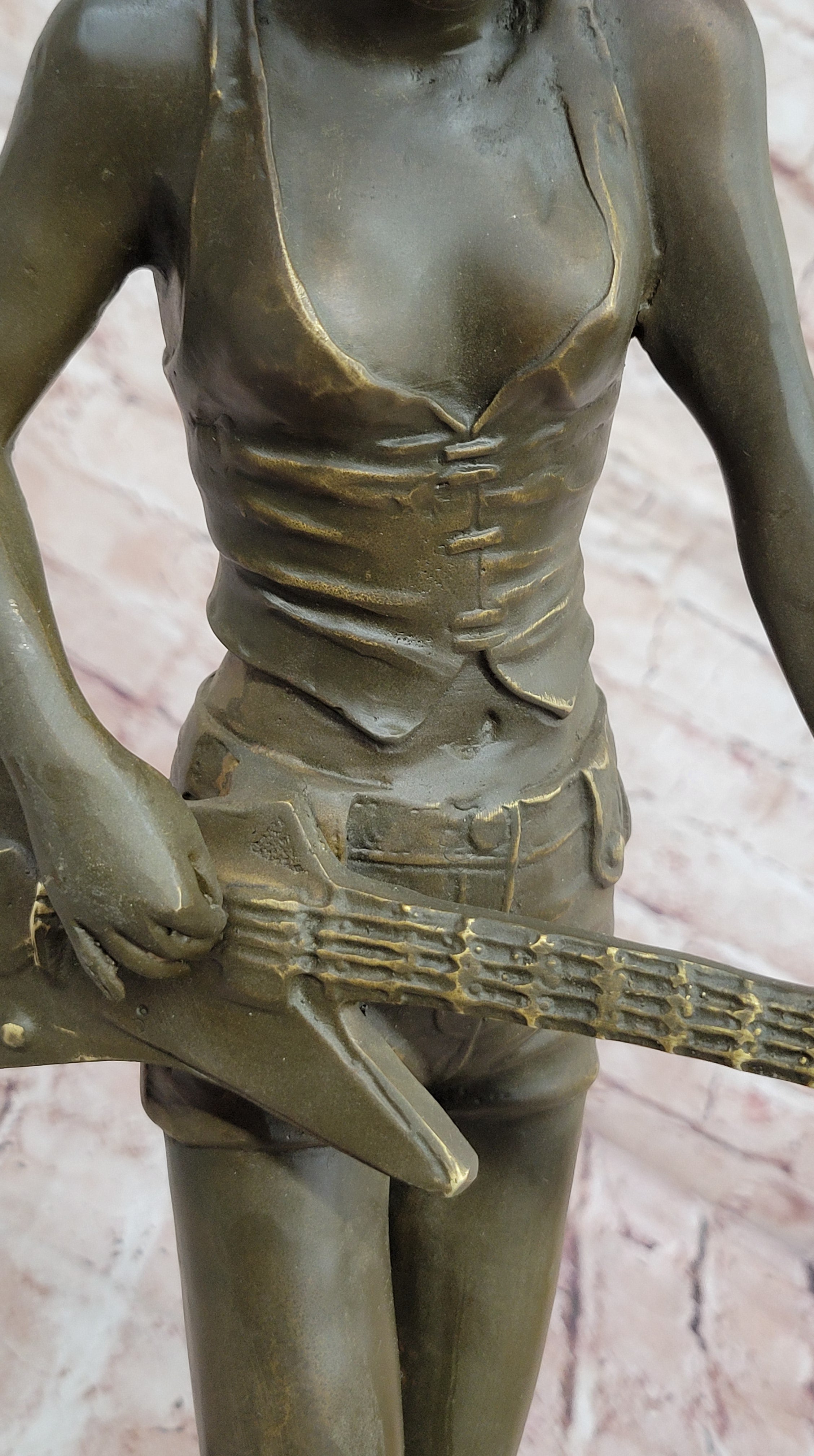 Rock and Roll Girl Guitarist Bronze Sculpture on Base