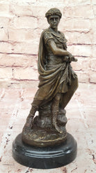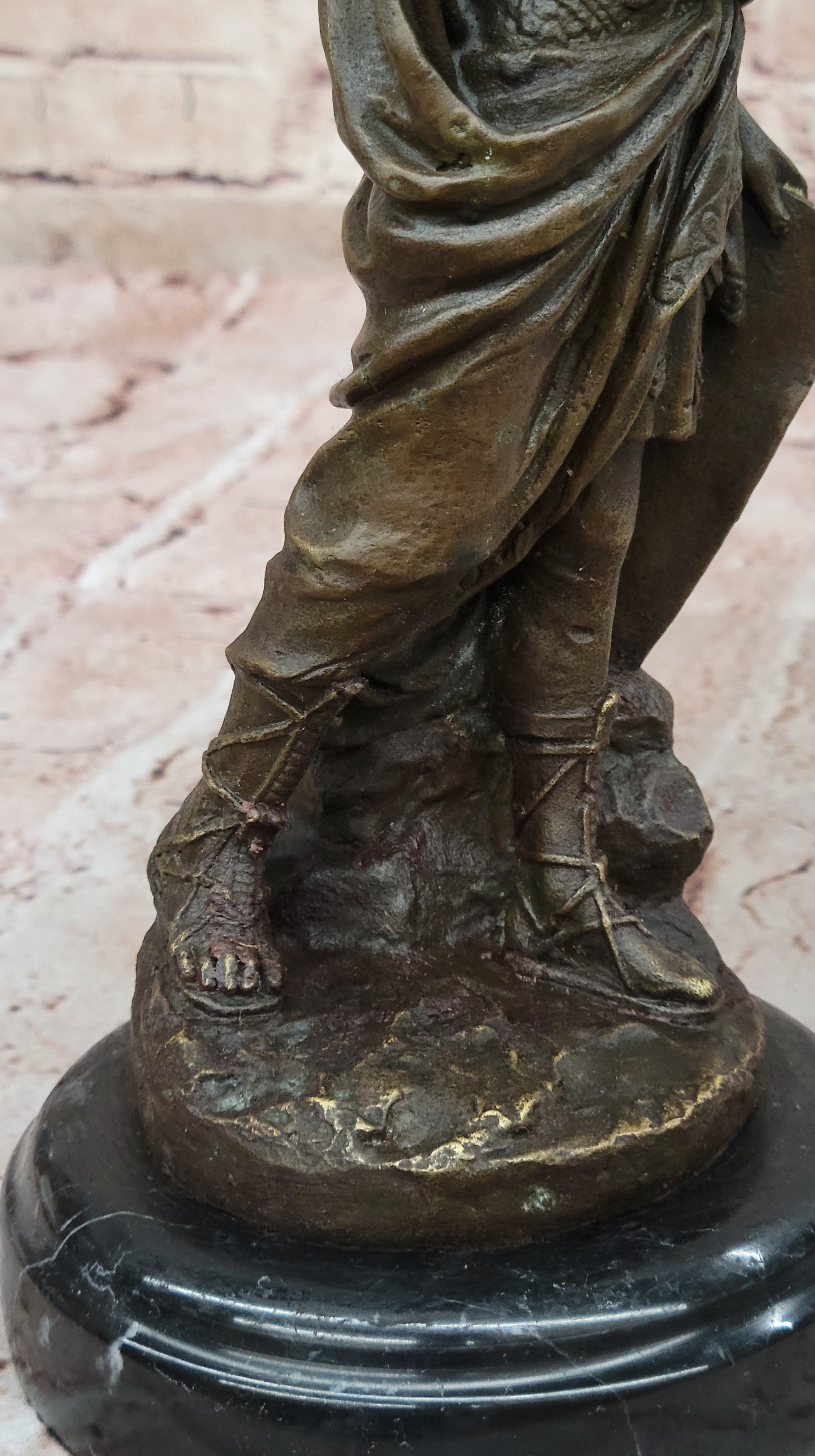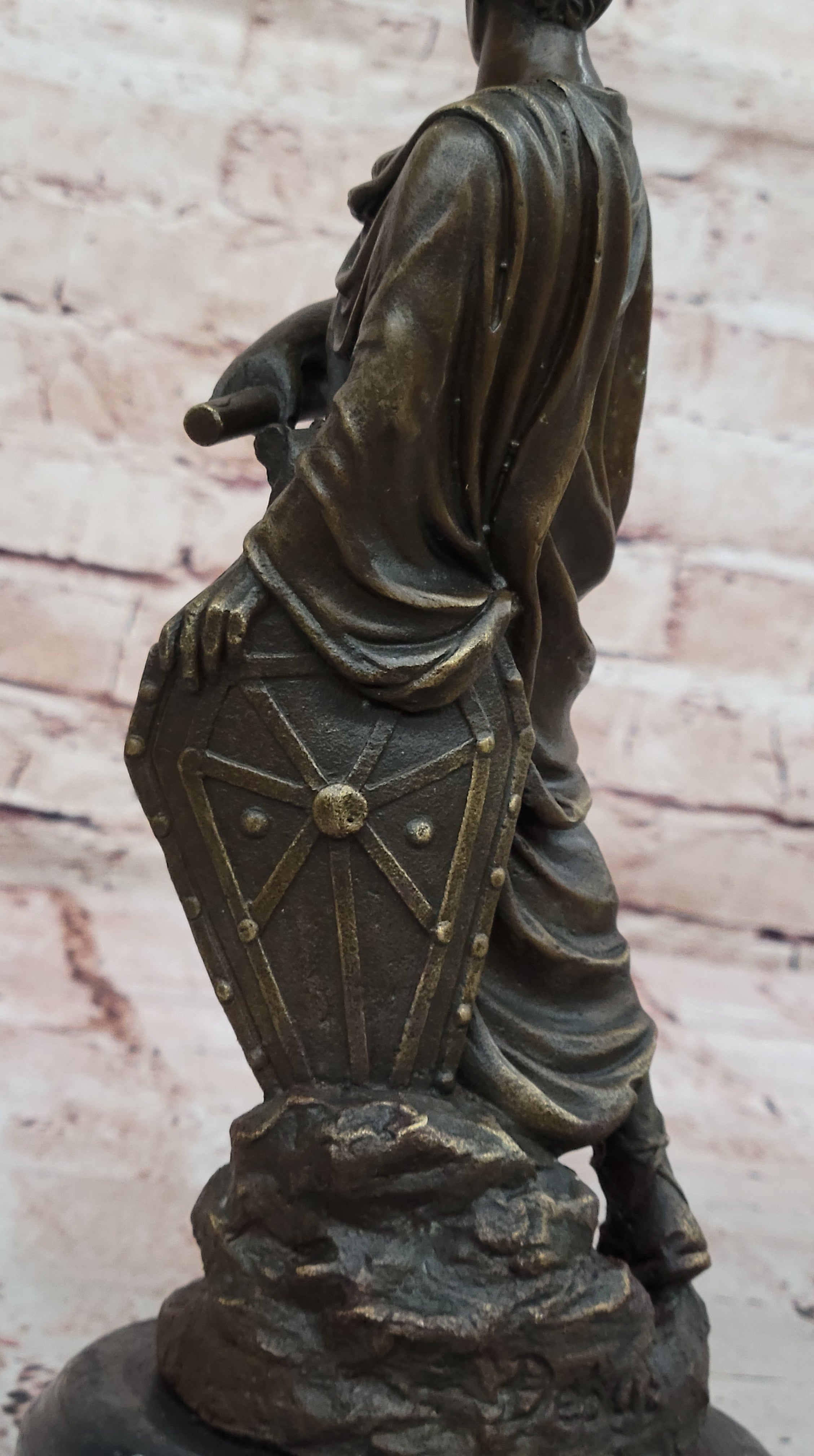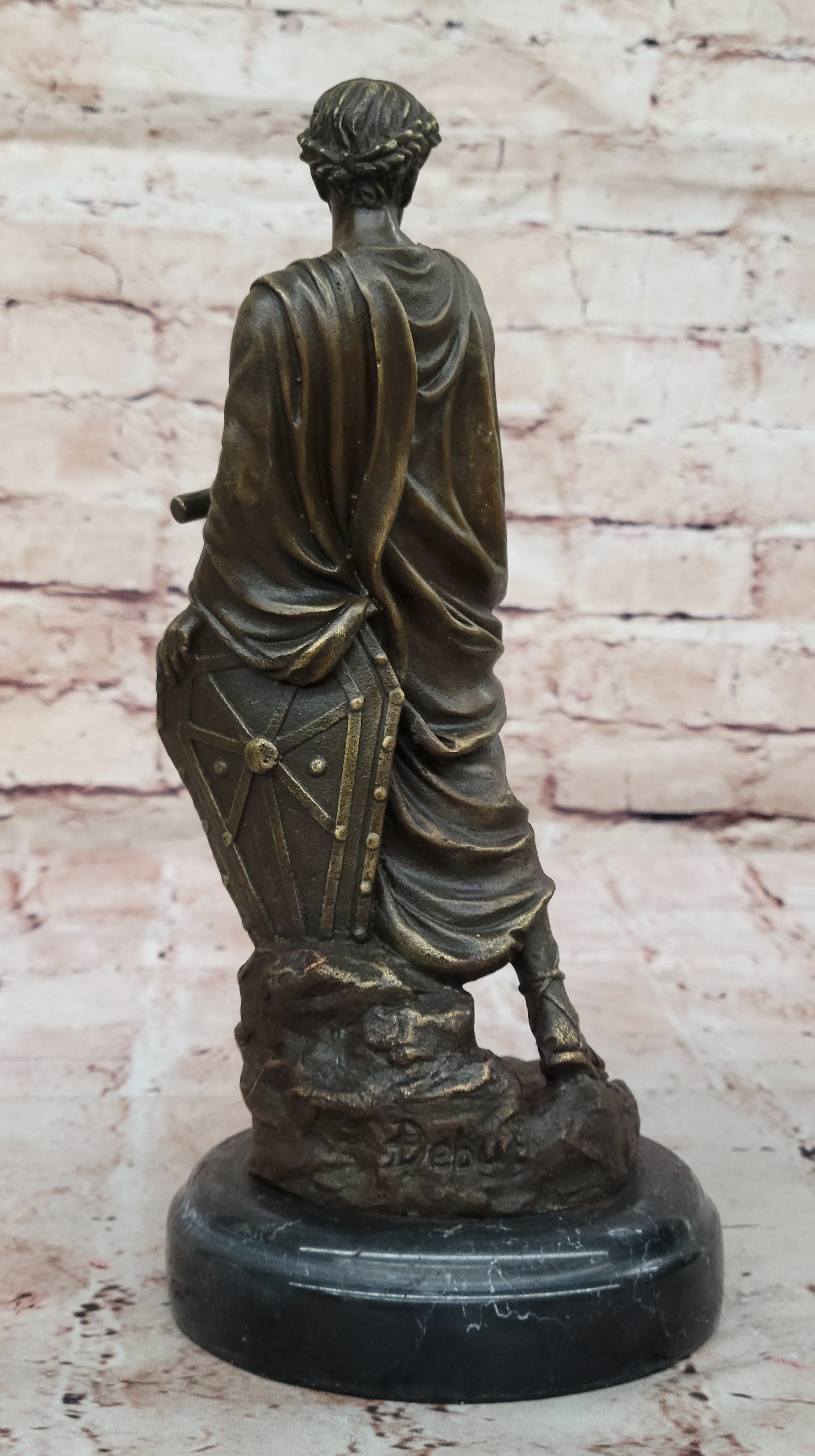 Crafted using the ancient lost-wax method, this sculpture showcases the meticulous artistry of J. Debut. Finished with a rich brown patina for added preservation and elegance, it stands upon a sleek black marble base. It also bears the European Bronze Finery stamp of quality, making this an exceptional piece for collectors and admirers of history.Bronze Dimensions with Marble Base: Height 10" X Width 5"