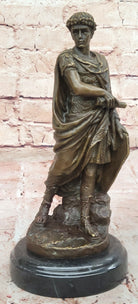 Roman Caesar Emperor in Wreath & Tunic - Bronze Sculpture Statue on Marble Base