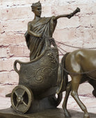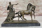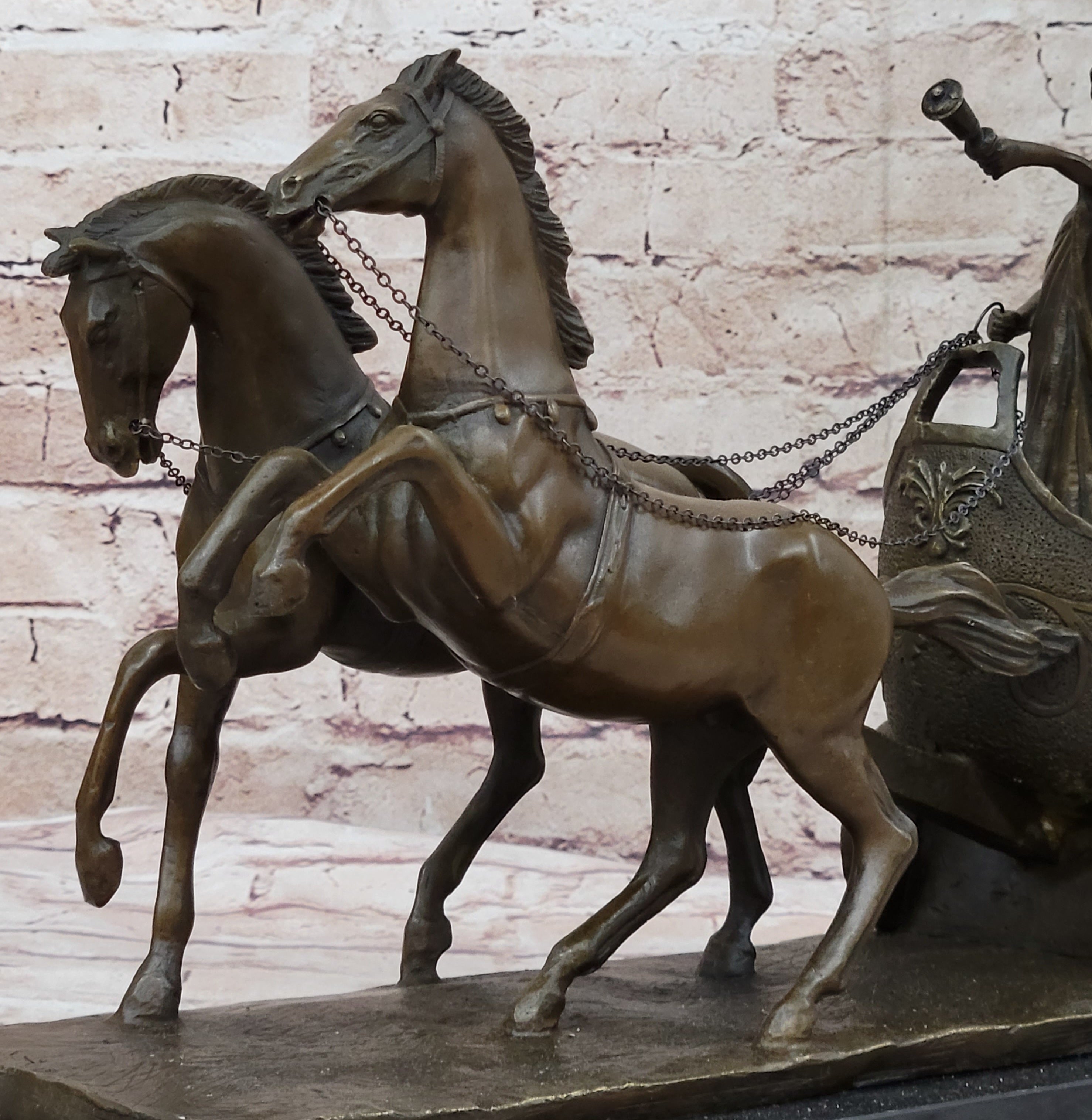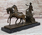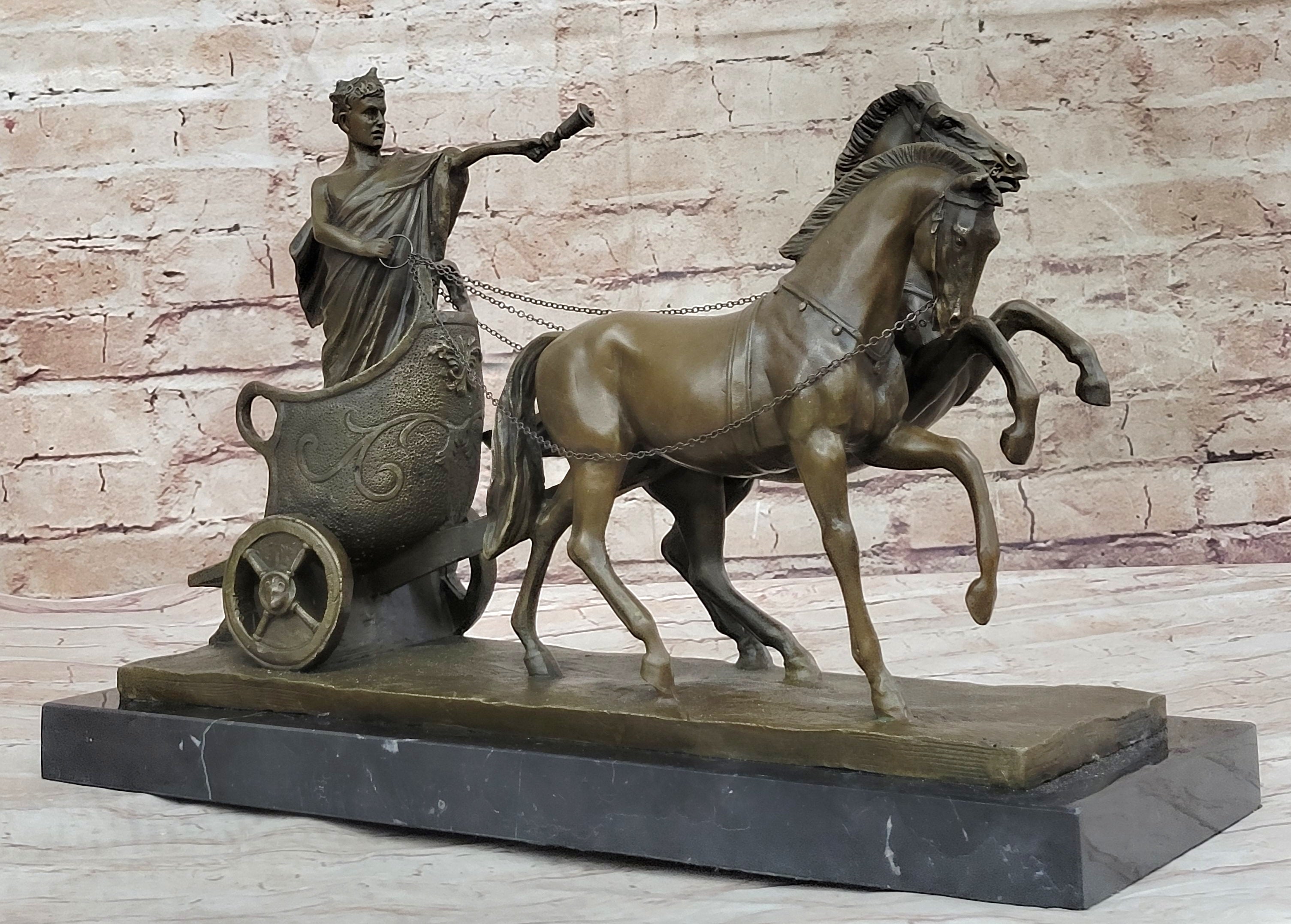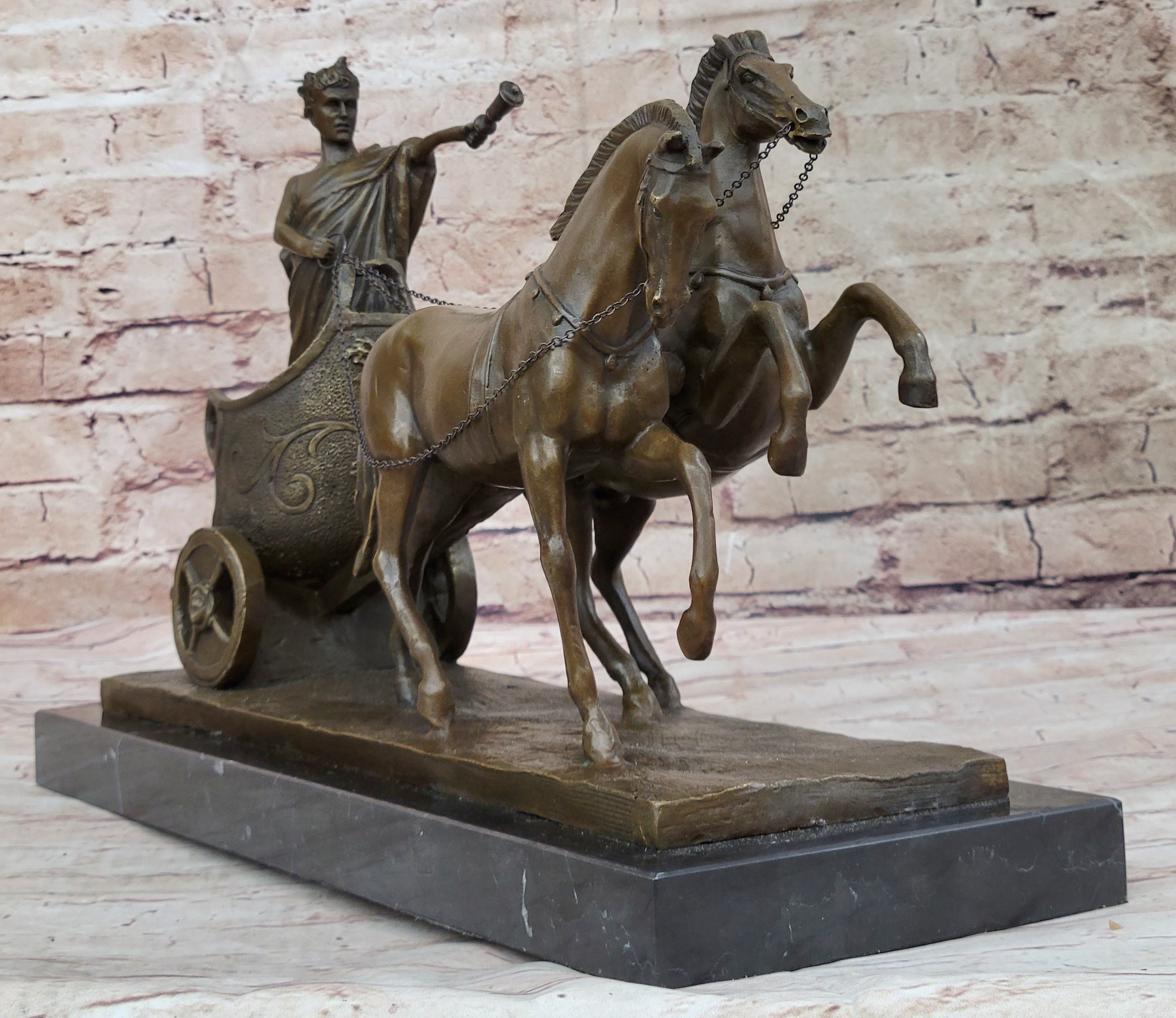 Roman Caesar Pulled by Horses on Chariot Bronze Statue Sculpture Figure 11" x 17"