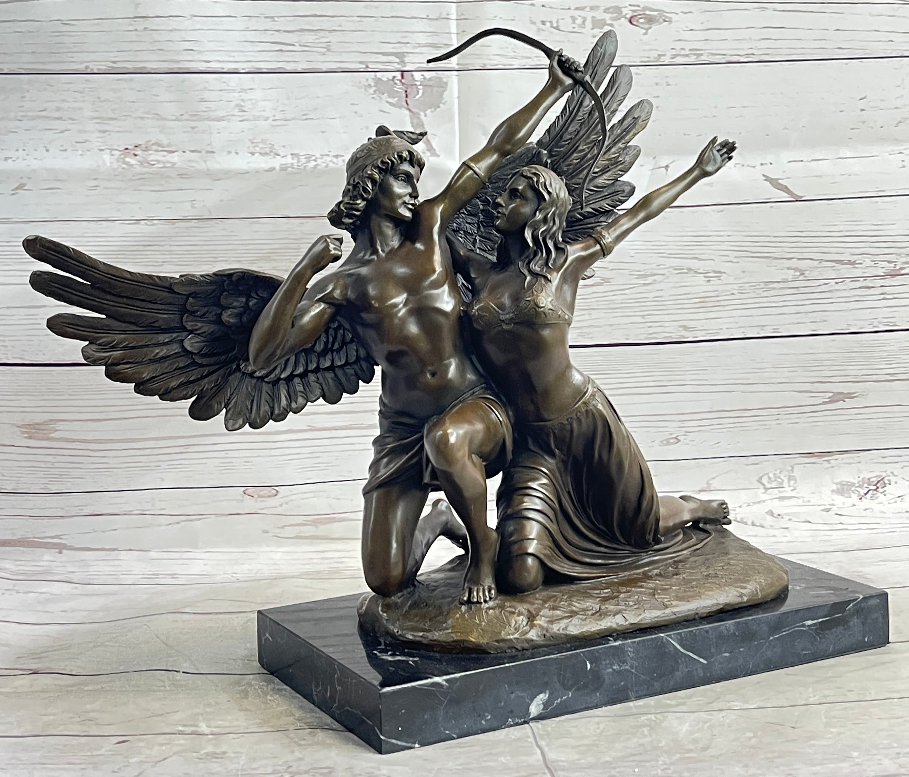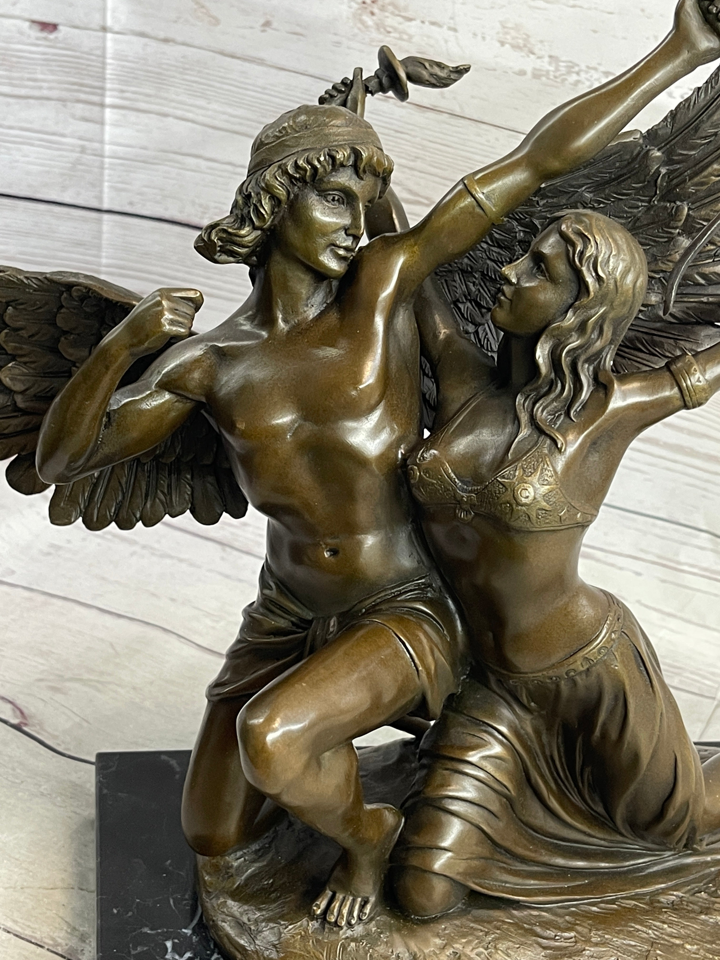 Romantic Bronze Sculpture of Winged Lovers on Marble Base Zephyrus & Psyche Mythical