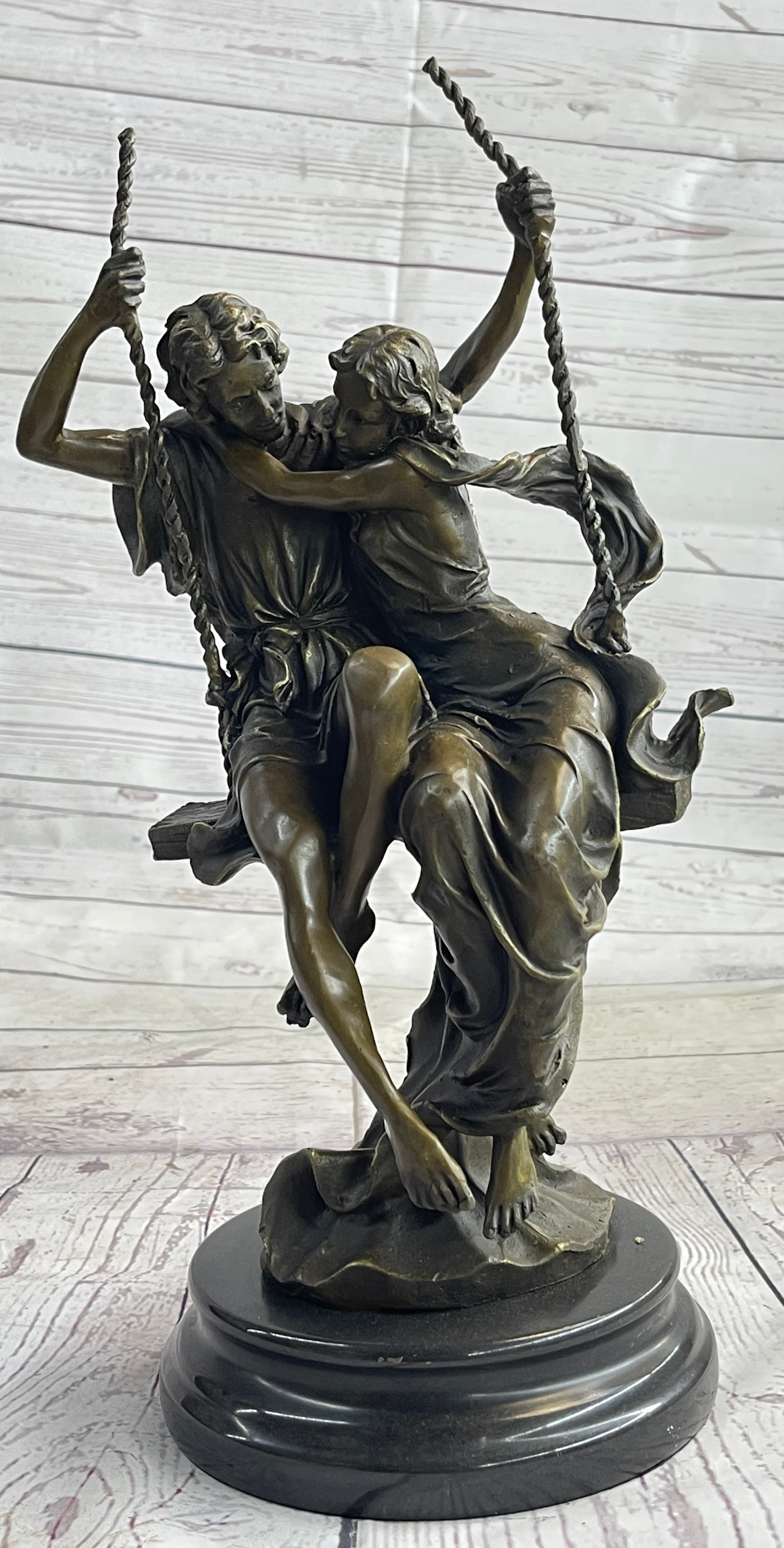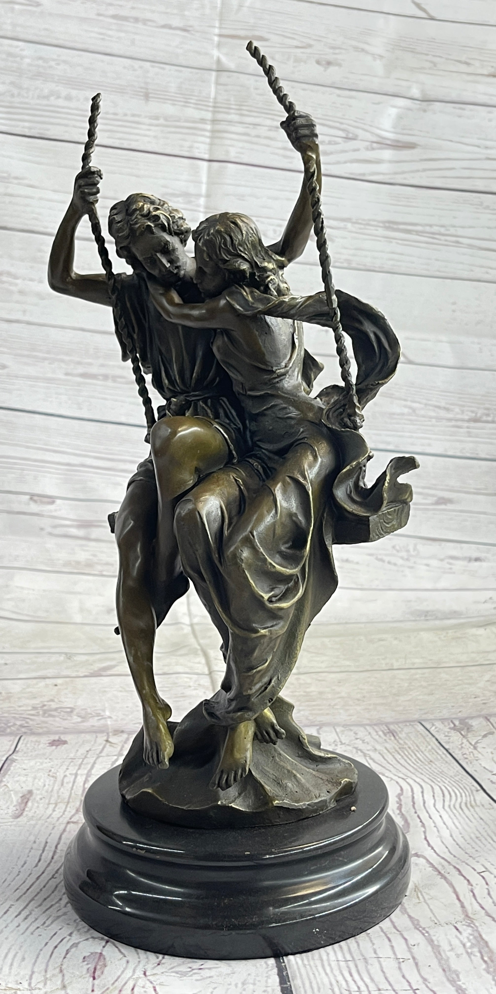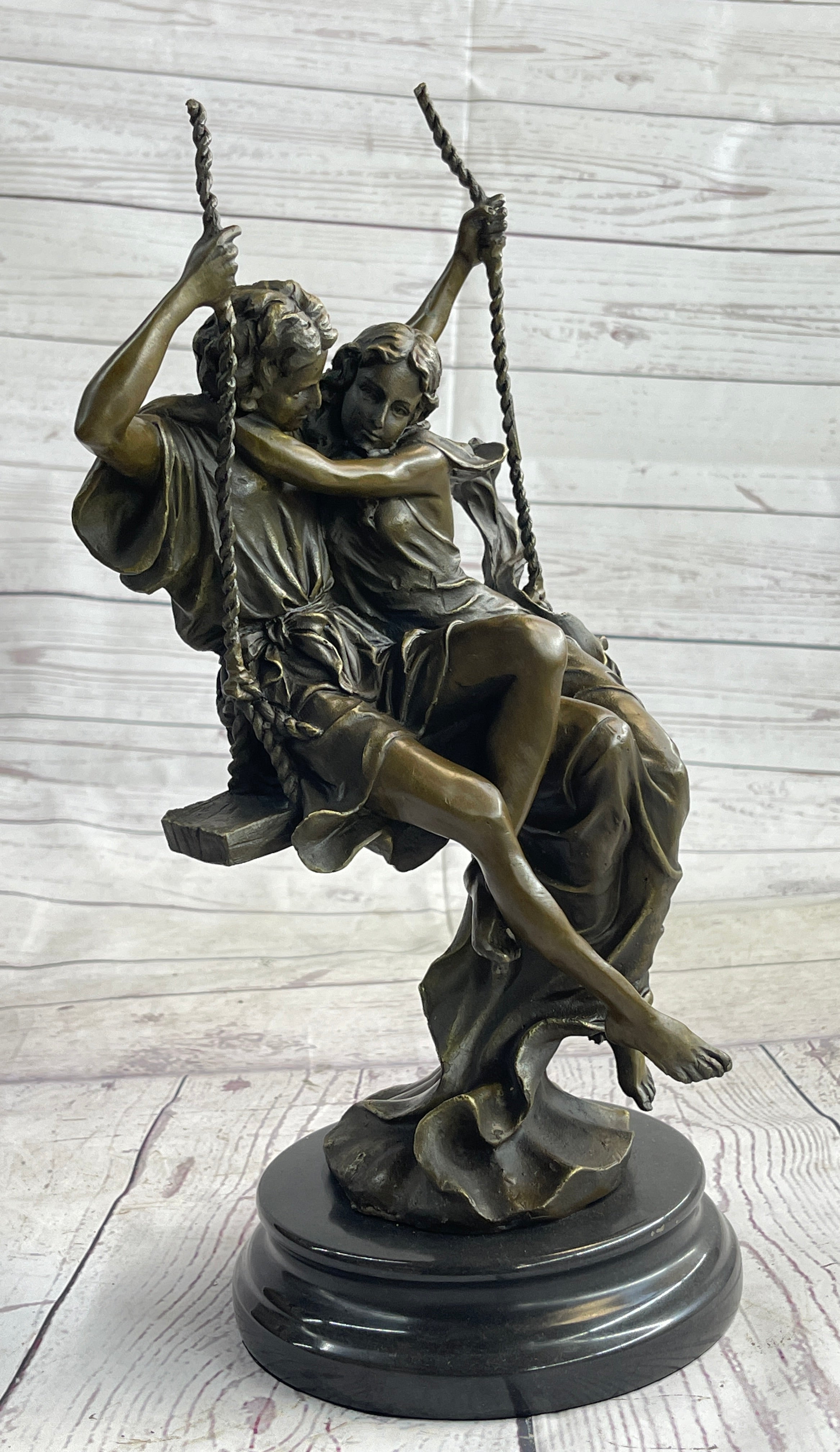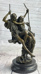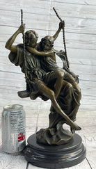 Romantic Lovers Couple Man & Woman on Swing Bronze Figure Statue Sculpture Marble Base 14" x 7.5"