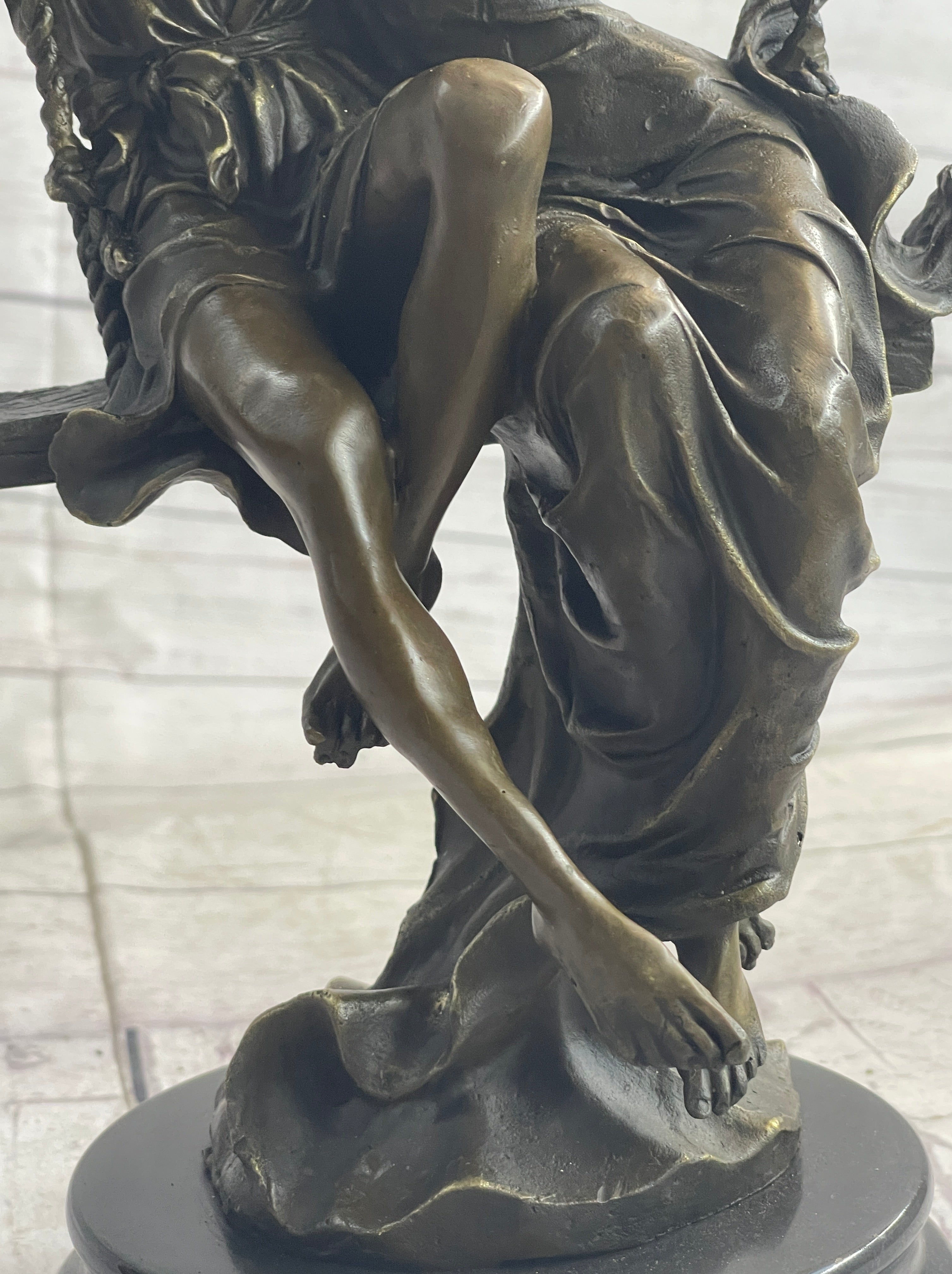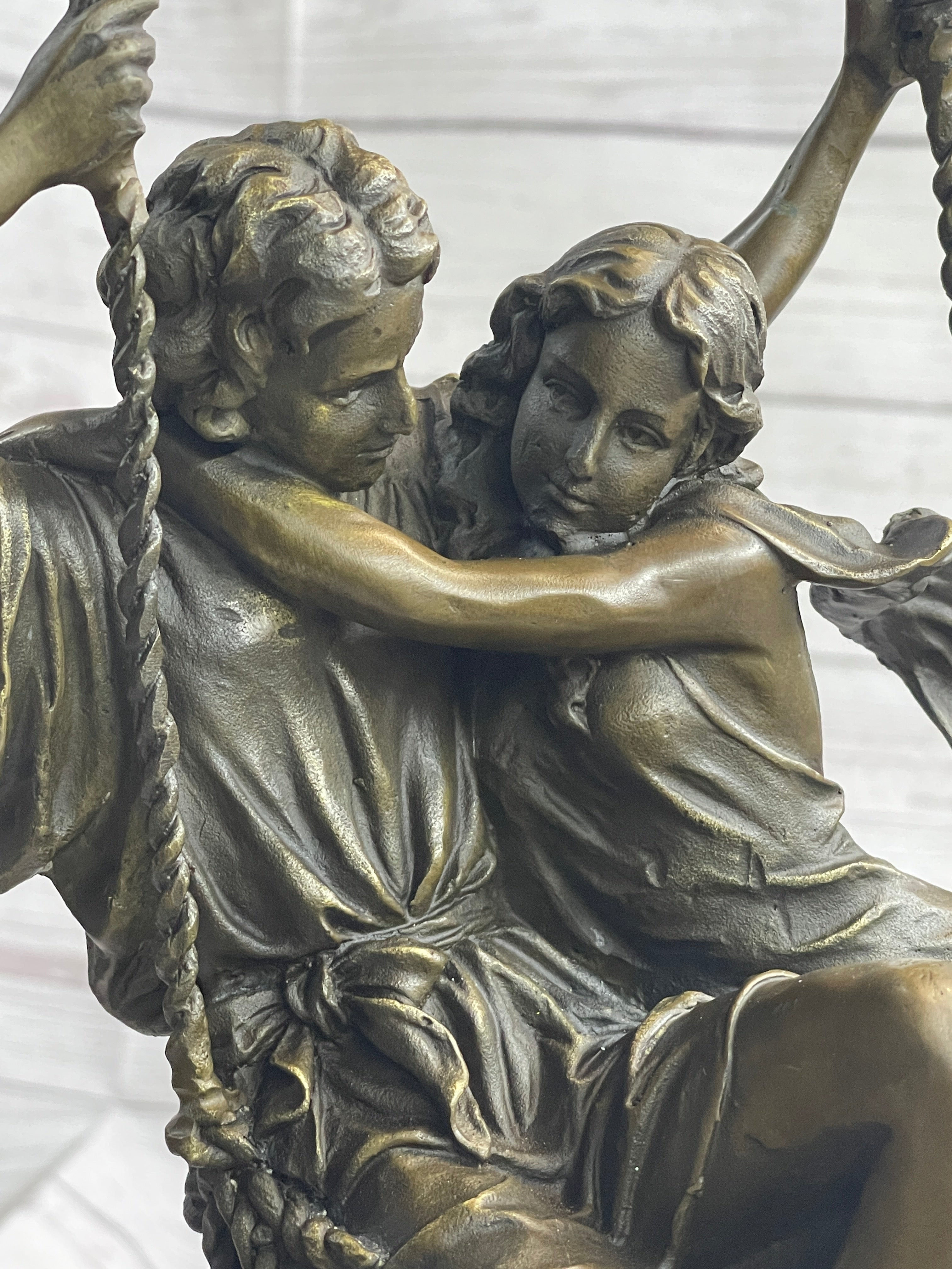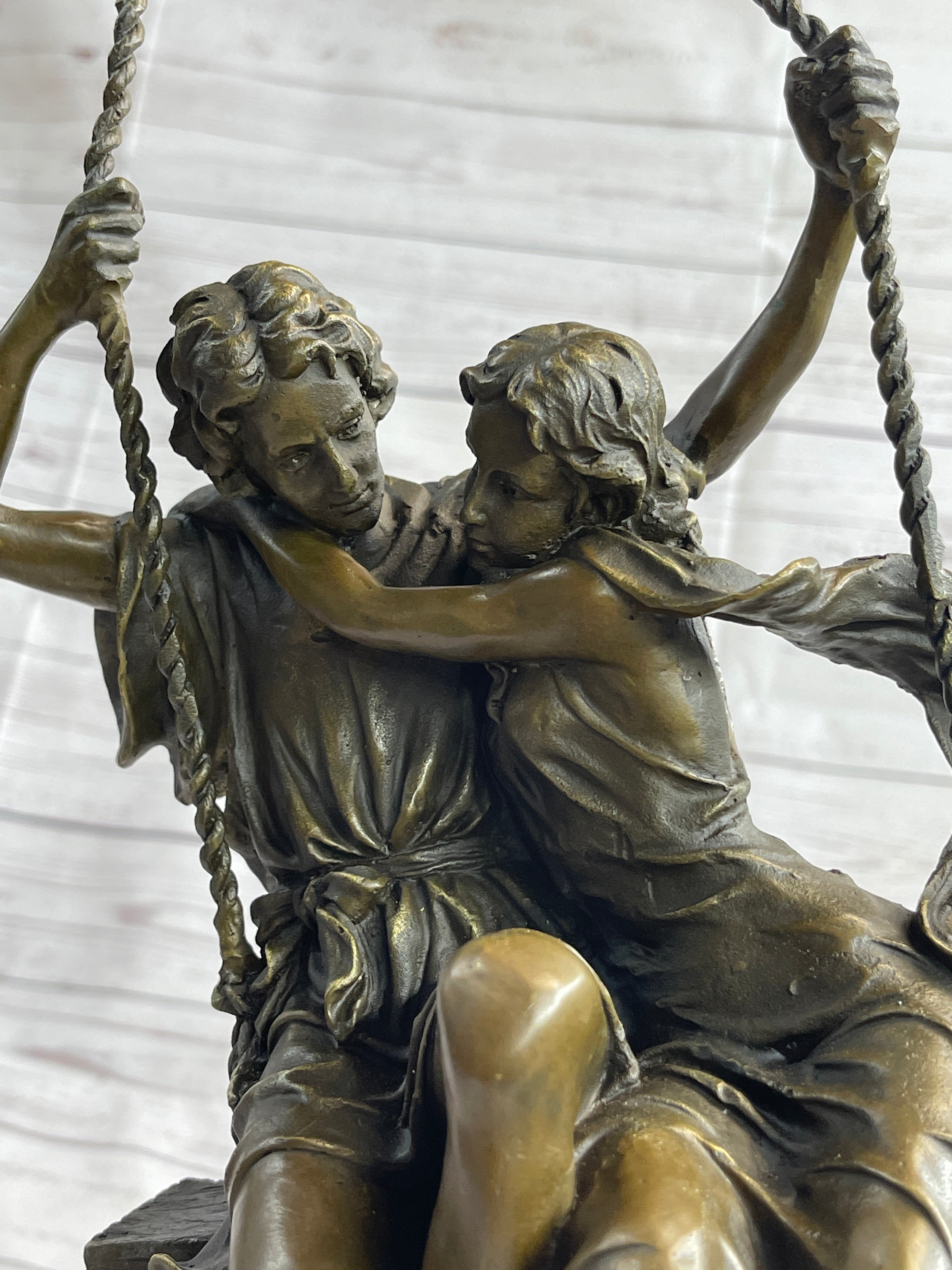 Romantic Lovers Couple Man & Woman on Swing Bronze Figure Statue Sculpture Marble Base 14" x 7.5"