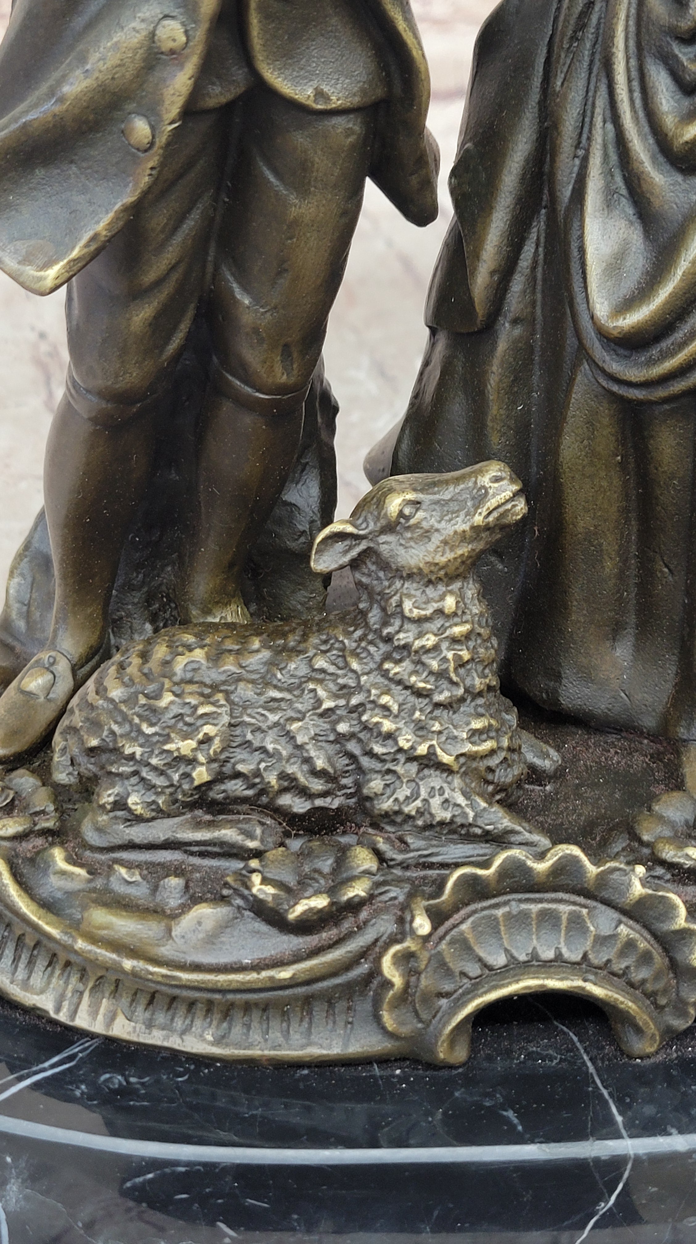 Mounted on a polished black marble base, the sculpture bears the signature of the renowned artist Milo, further enhancing its value and authenticity. This Victorian couple statue is not just a beautiful work of art but a rare find for collectors who seek pieces that evoke elegance, history, and masterful artistry. Please see all pictures for additional views of this exceptional piece.Bronze Dimensions with Marble Base: Height 13" X Width 10.5"
