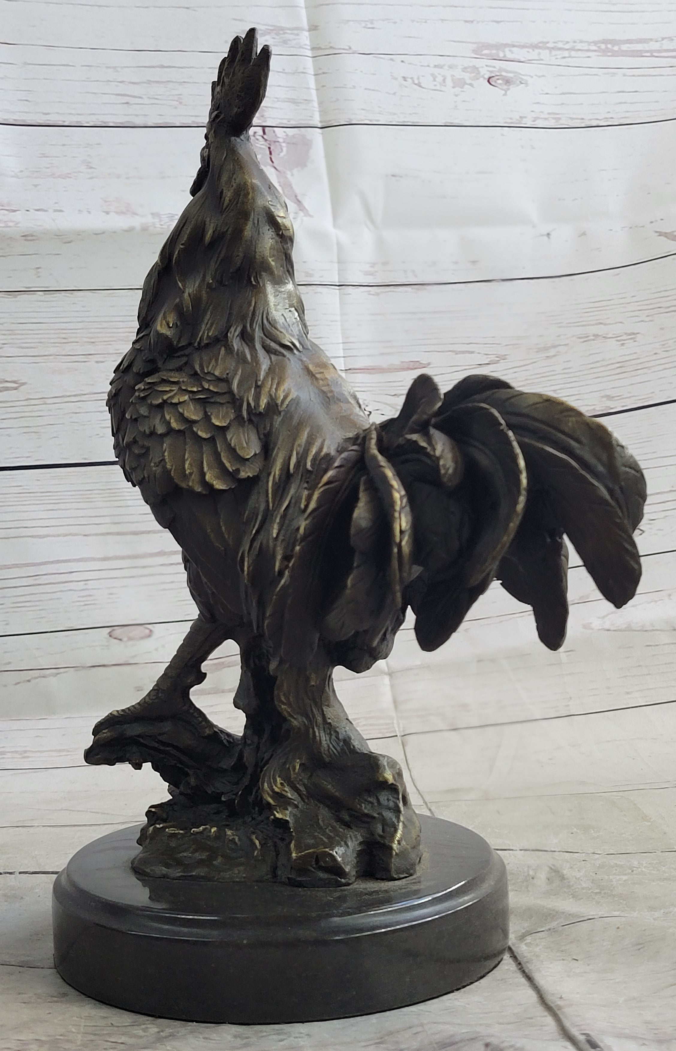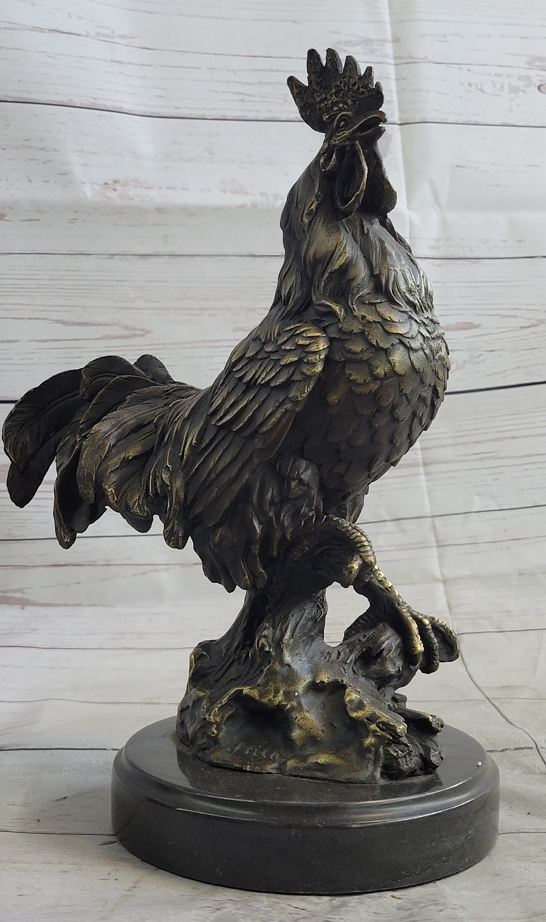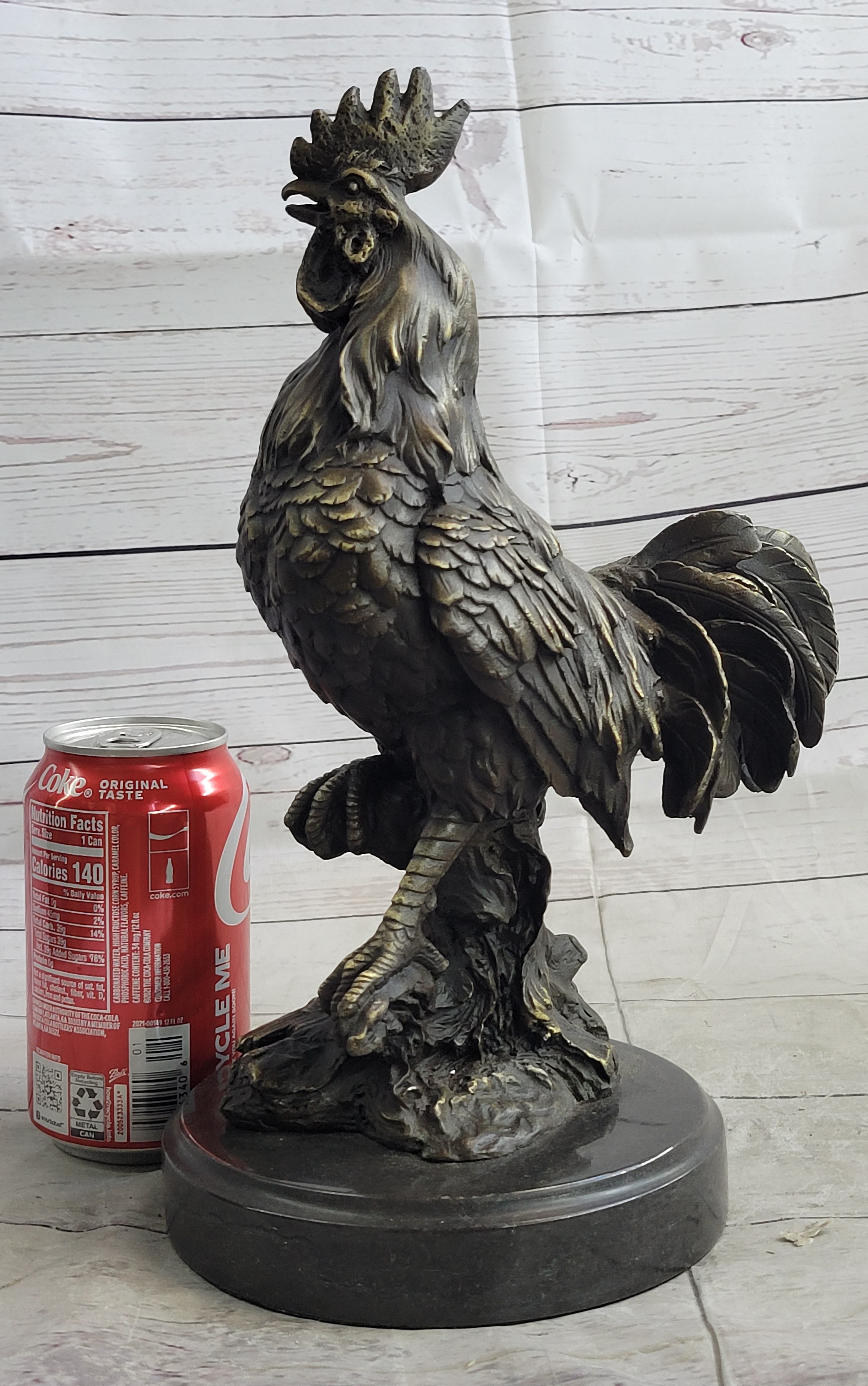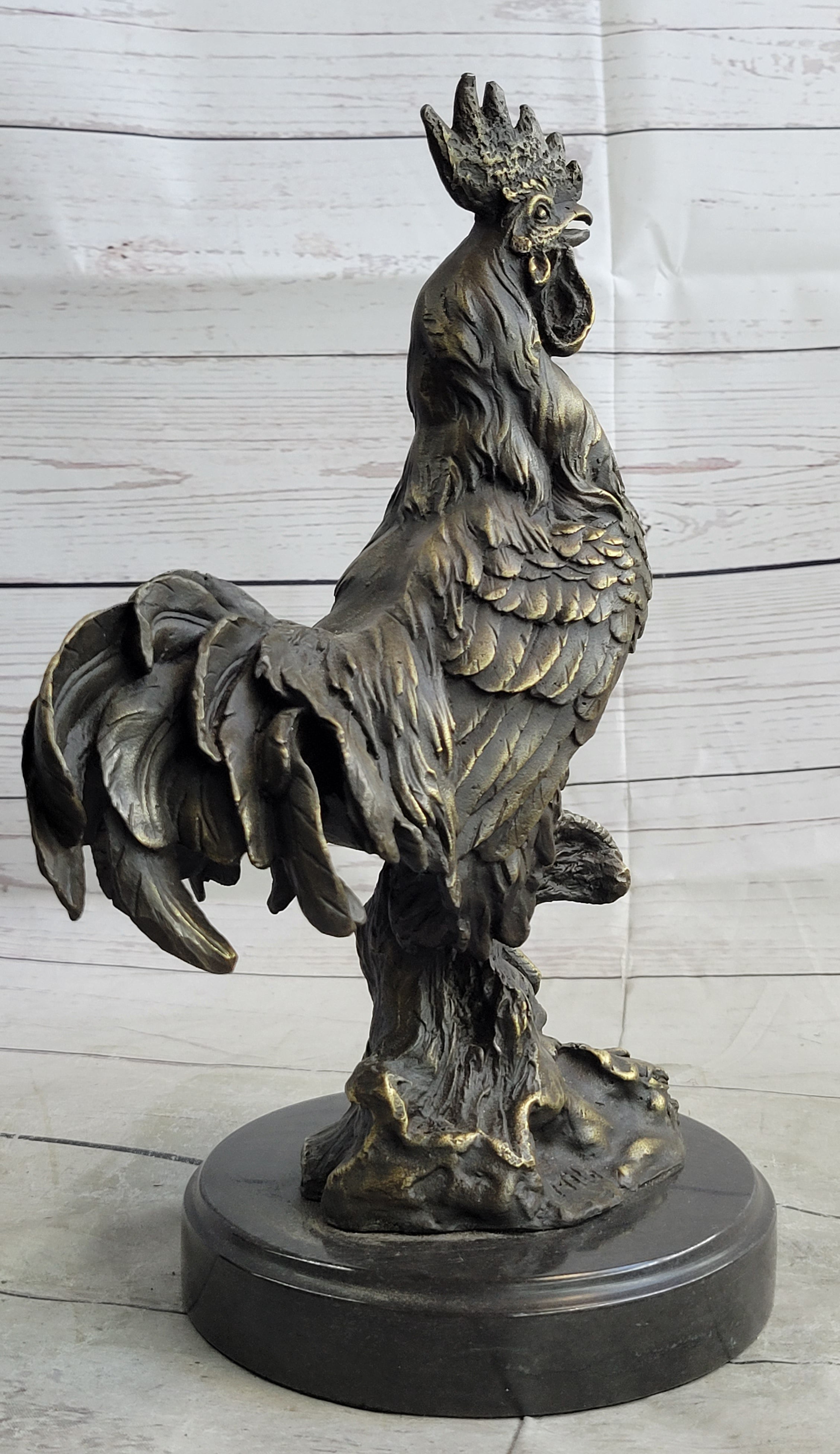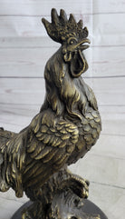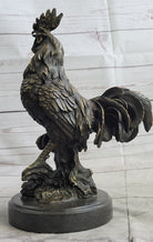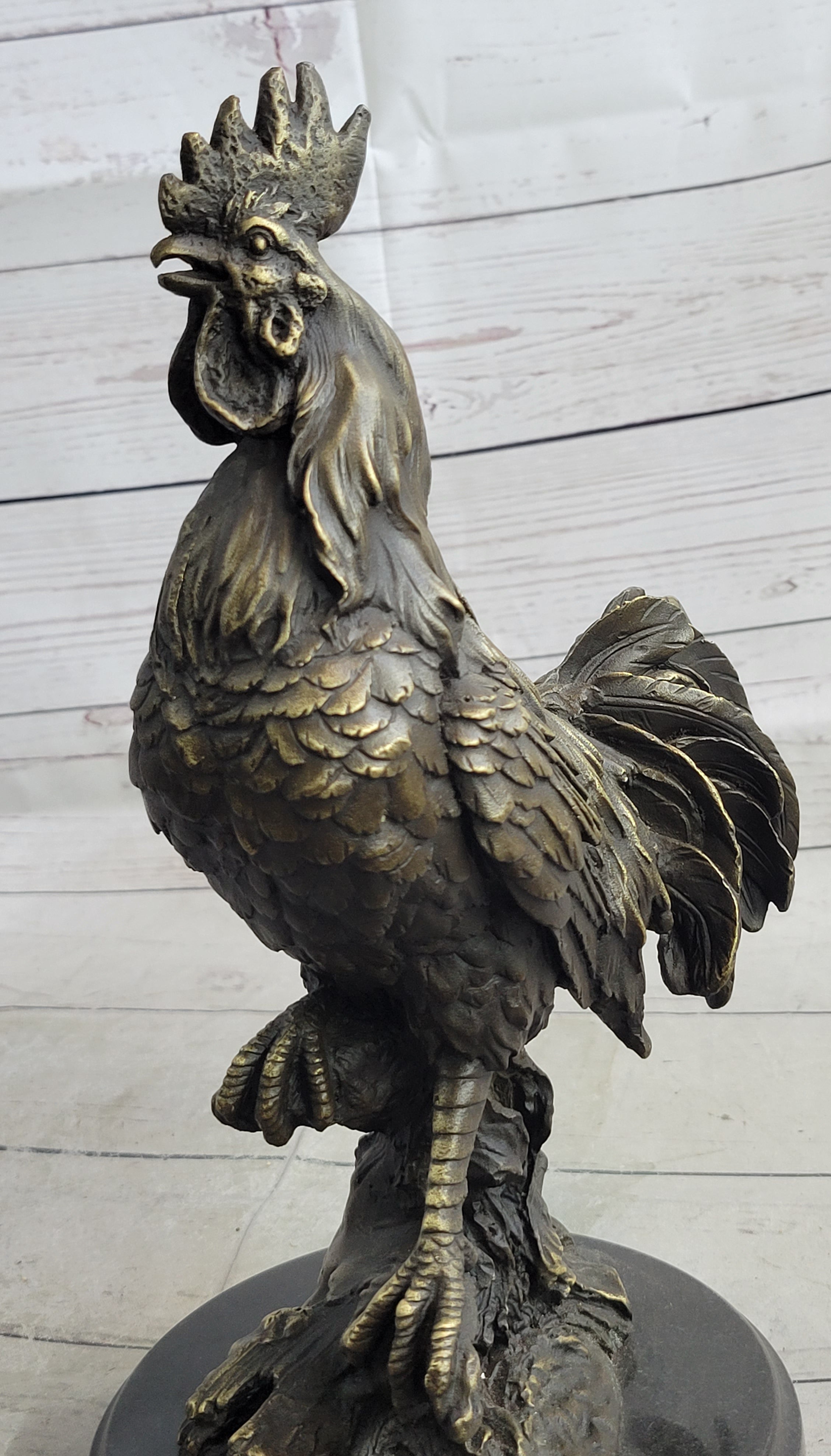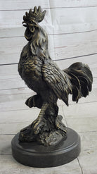 Rooster Chicken Farm Bronze Sculpture Statue Figure on Marble Base Signed Art Decor