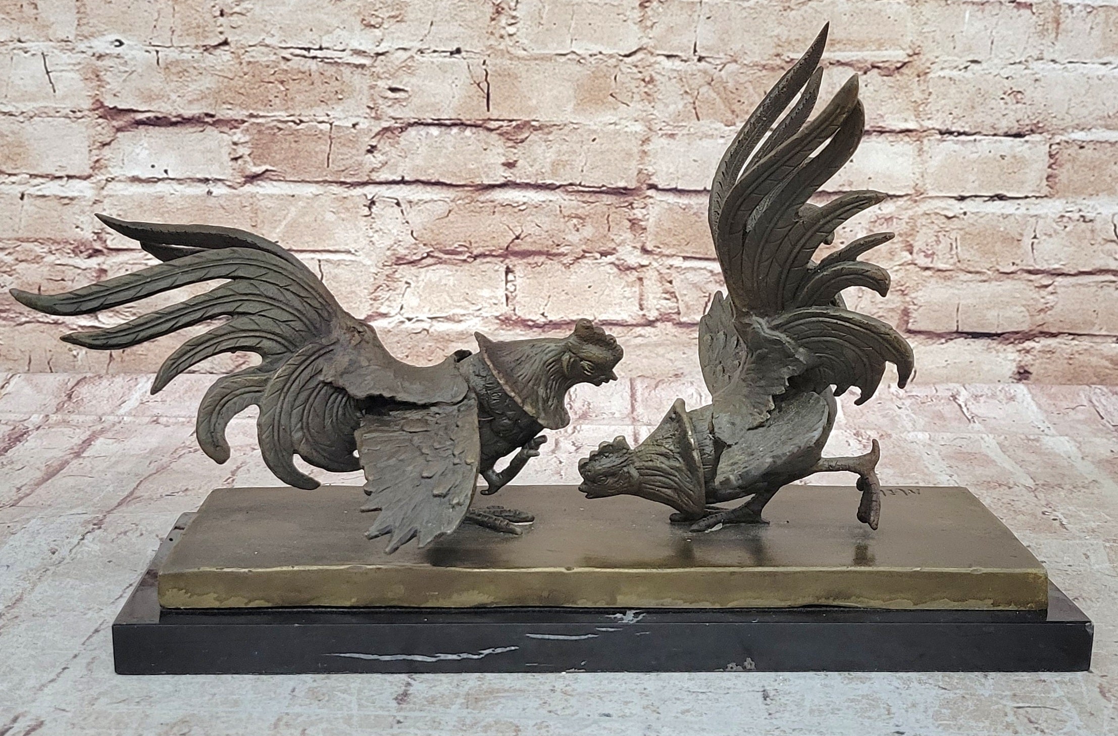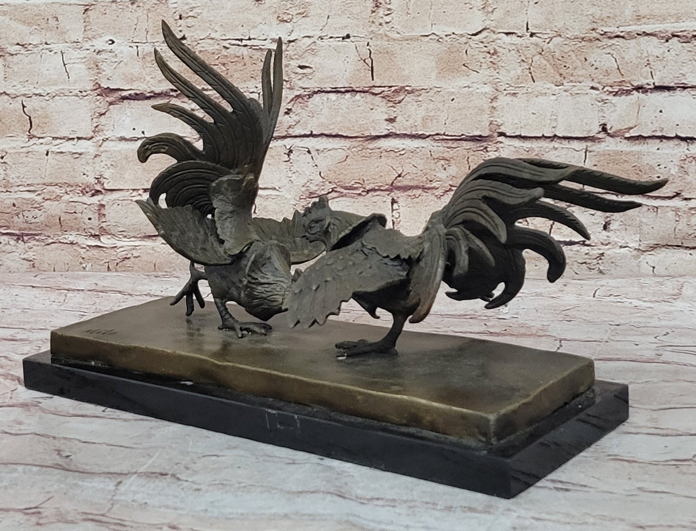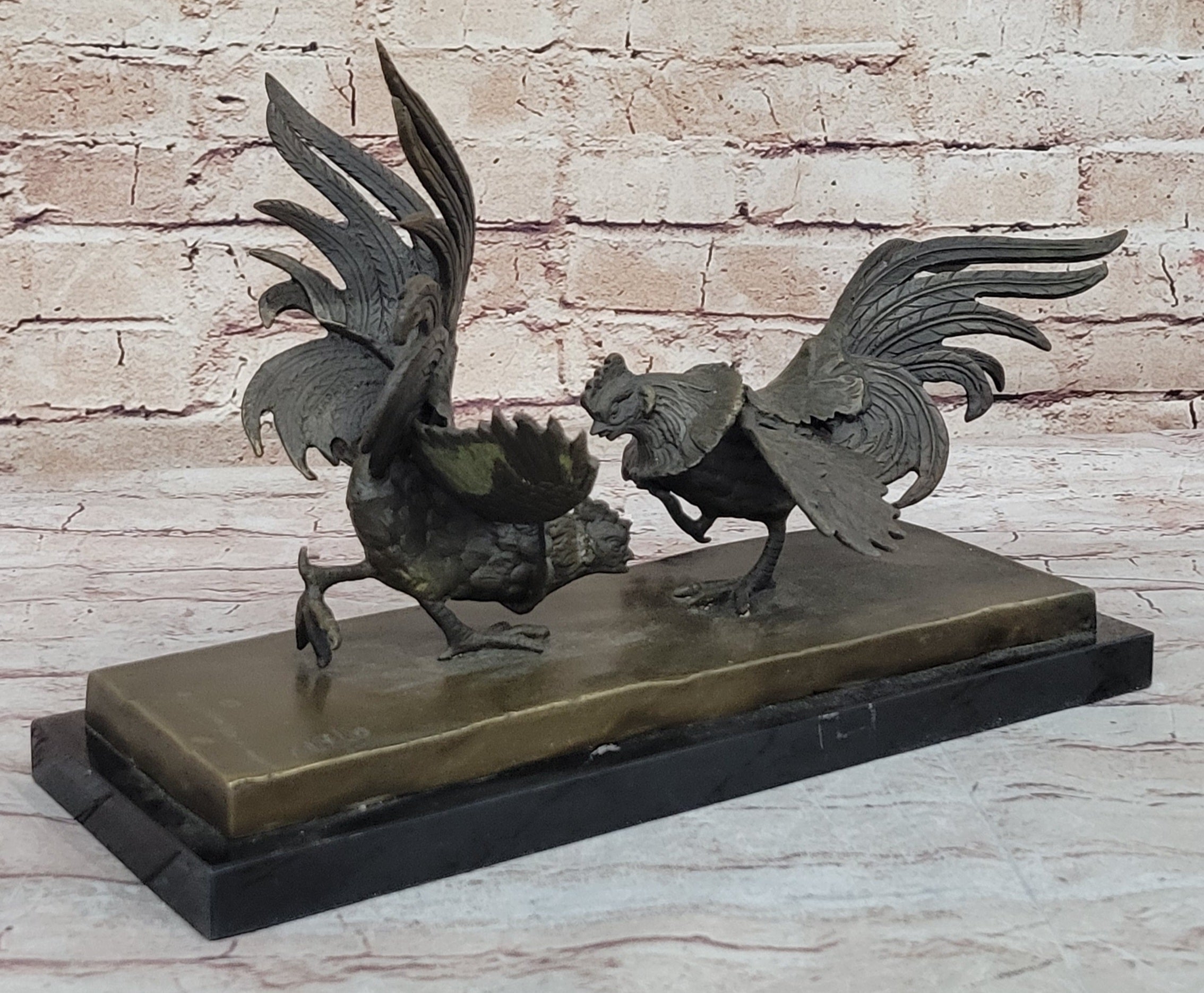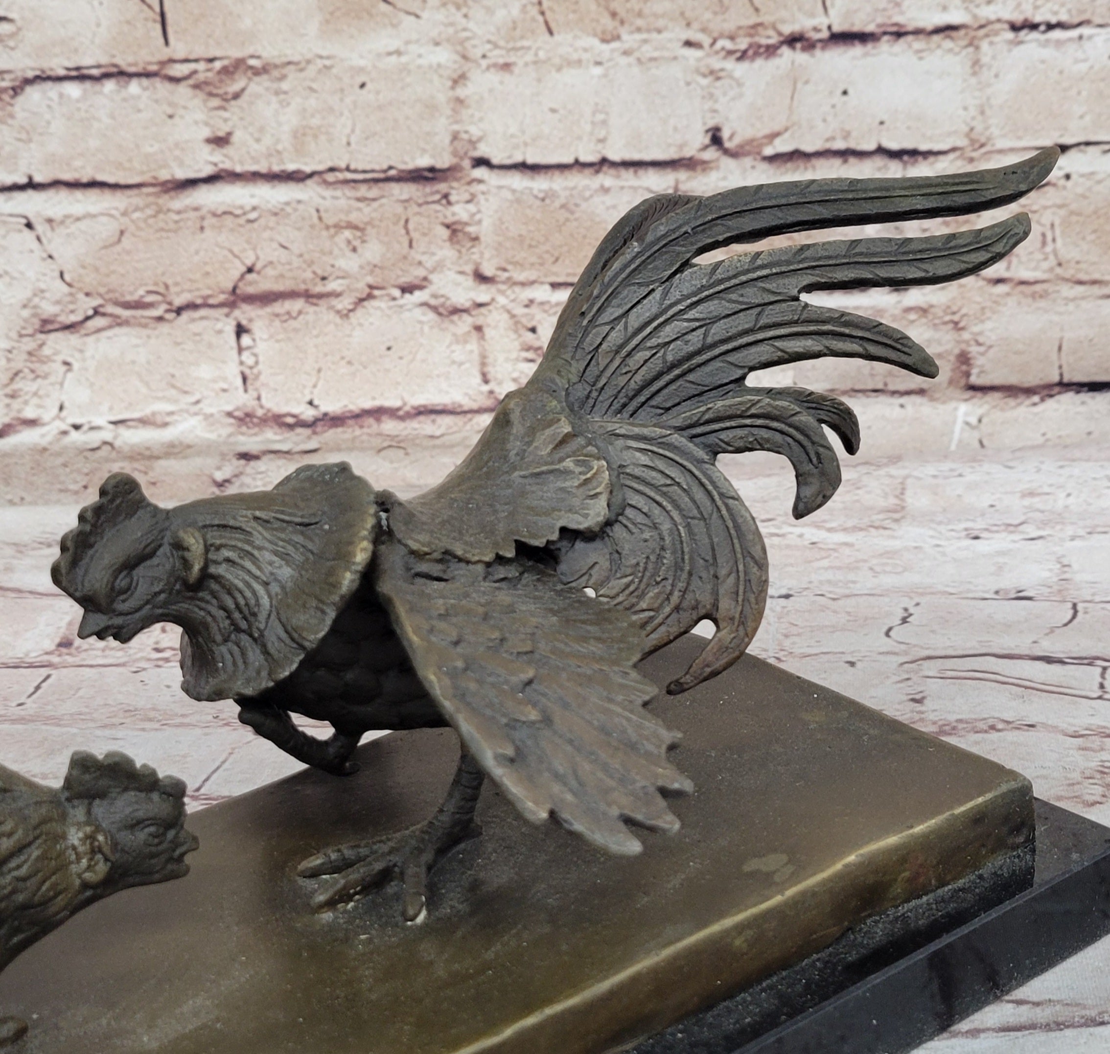 Roosters Chickens Cock Fighting Bronze Sculpture Statue by Milo