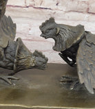 Elevate your space with the exquisite craftsmanship of the "Two Rooster Cock Fight" Bronze Sculpture by Miguel Lopez. Handcrafted using the ancient lost wax method, this genuine bronze sculpture captures the intensity of a rooster cock fight with remarkable detail and artistry. The dark brown patina finish adds depth and character to the piece, highlighting every intricate feature.