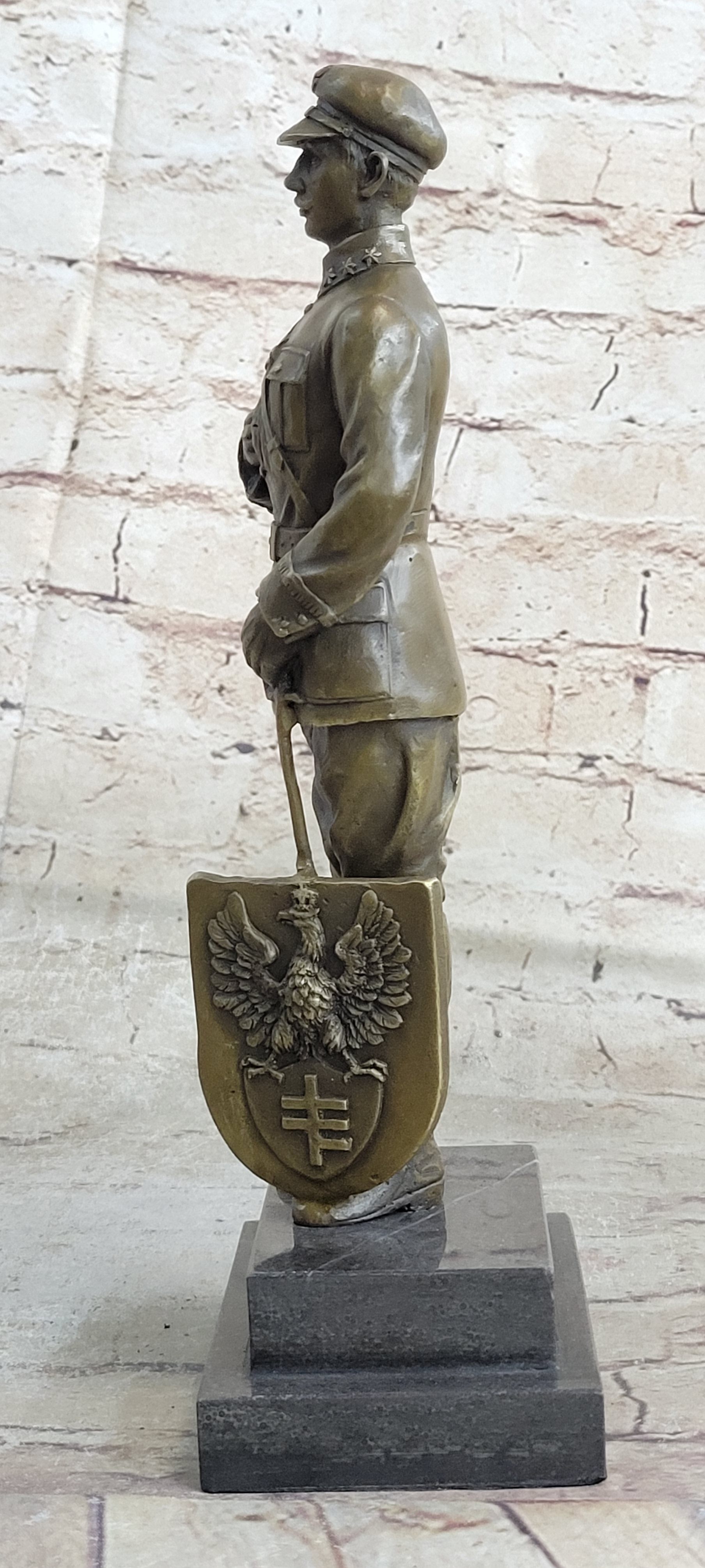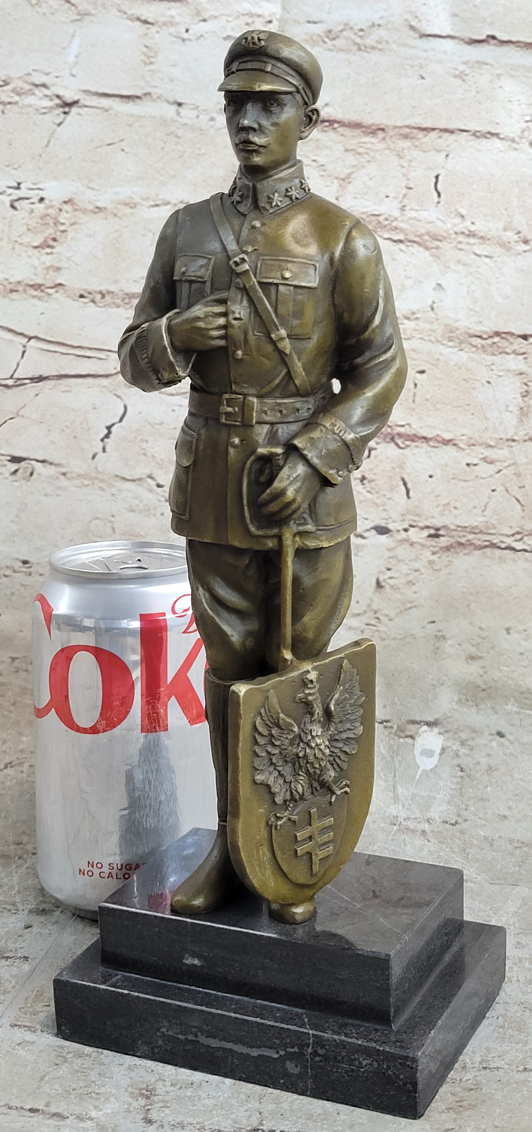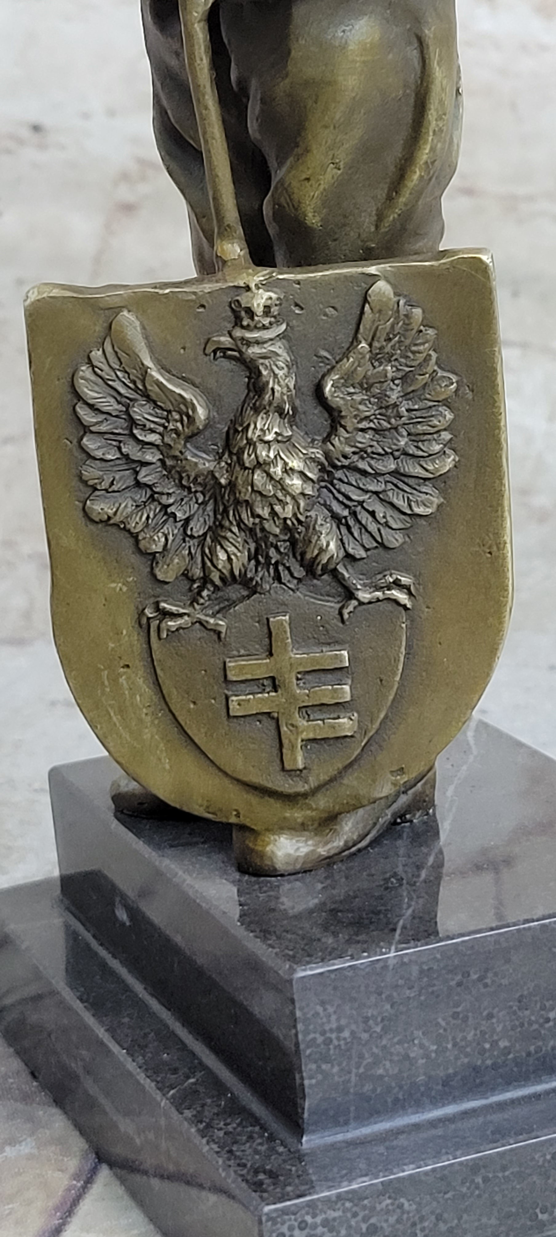More than just a work of art, this bronze sculpture serves as a poignant reminder of the sacrifices made by the courageous soldiers who have fought to protect their homeland throughout history. With its powerful symbolism and impeccable craftsmanship, it stands as a lasting tribute to the indomitable spirit of the Polish warrior, inspiring admiration and respect for generations to come.Bronze Dimensions with Marble Base: Height 12" X Width 4 1/2"