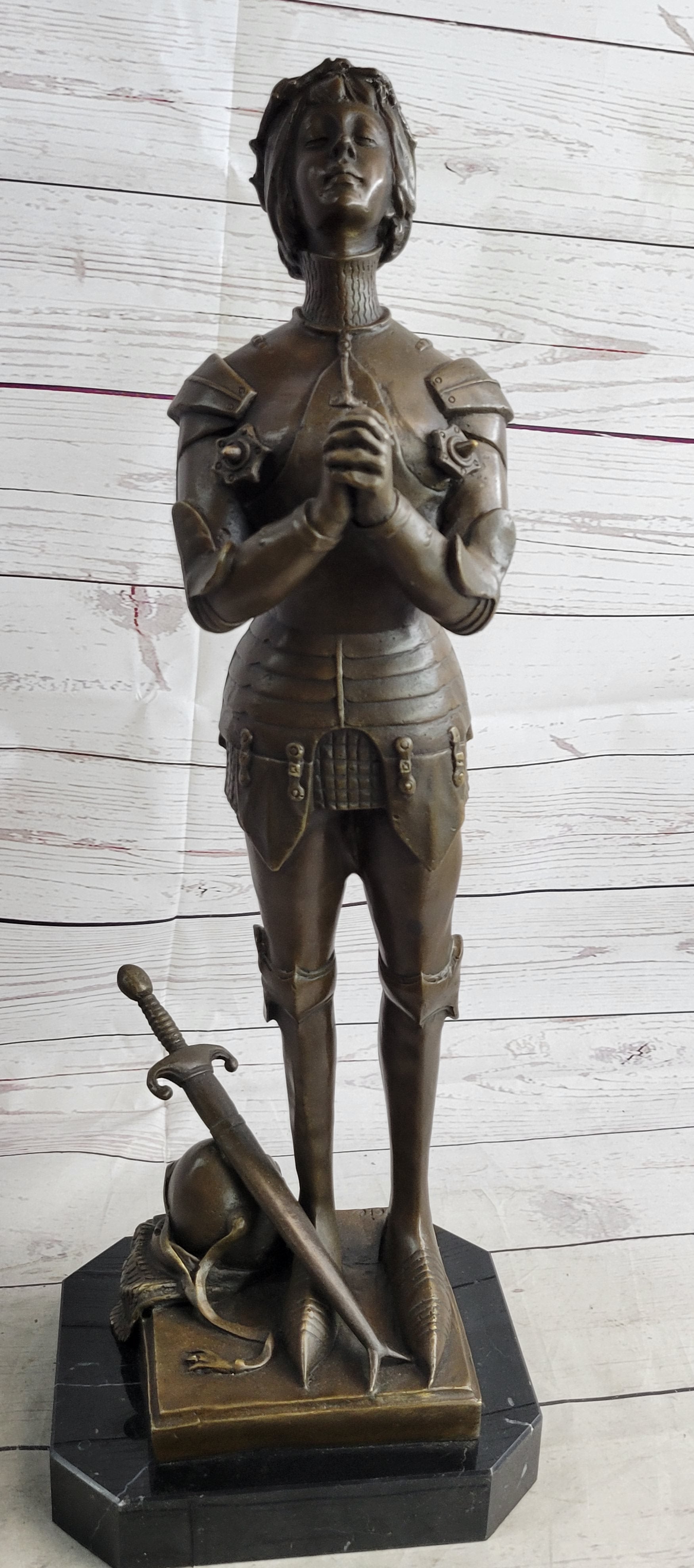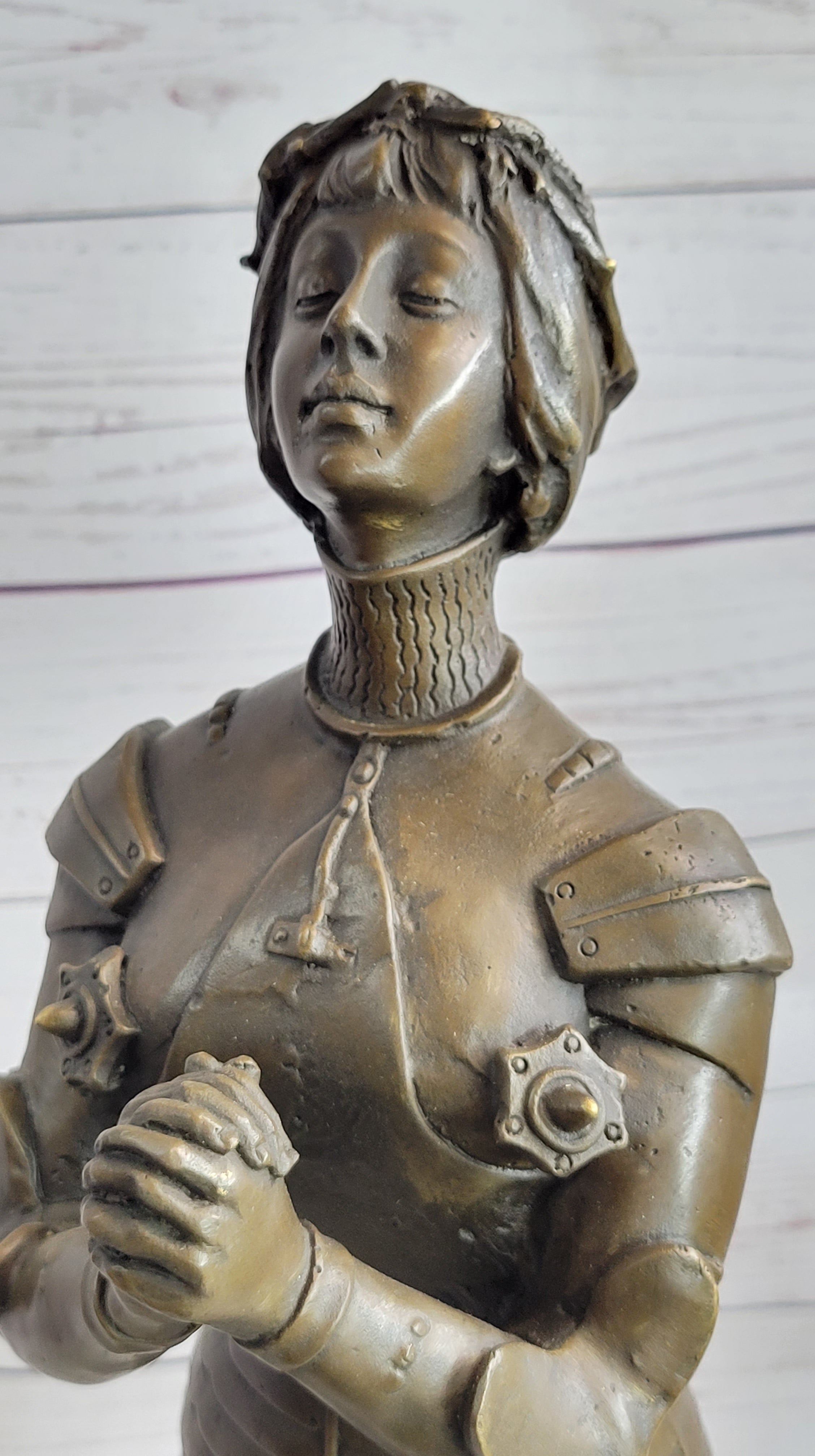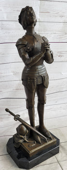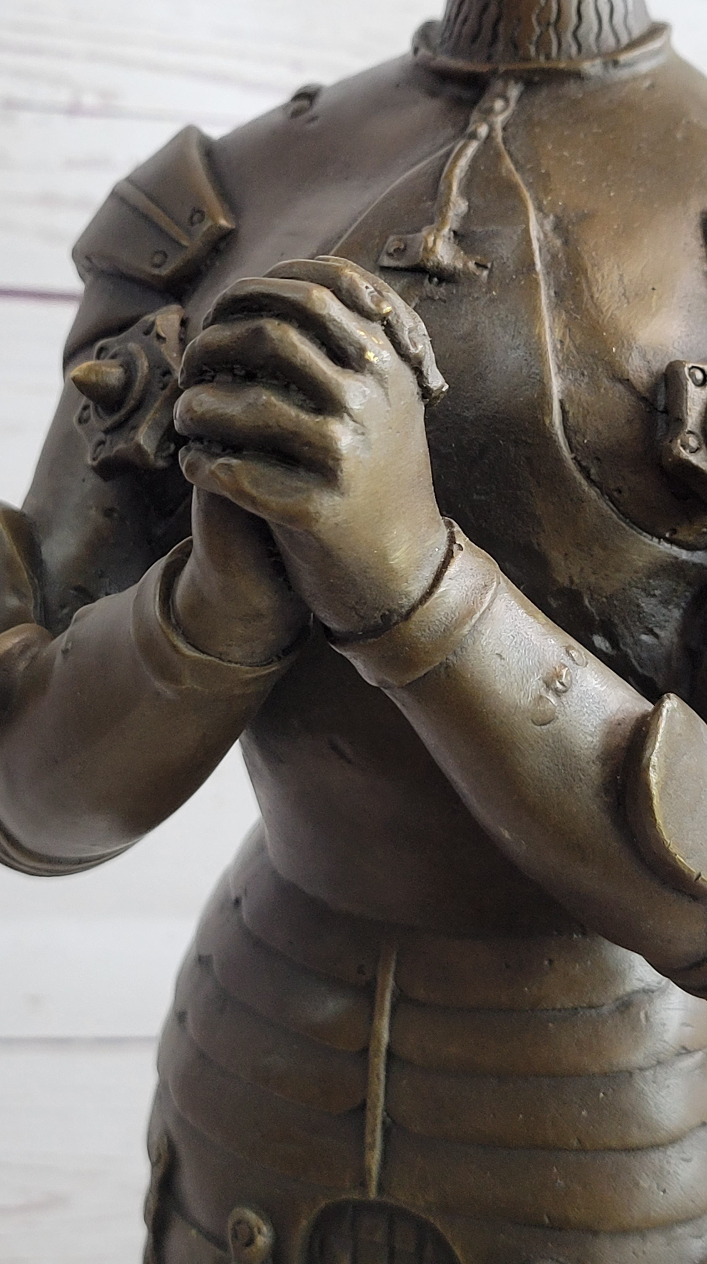 Saint Joan of Arc Maid of Orleans French Praying Bronze Sculpture Statue on Marble Base