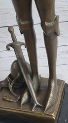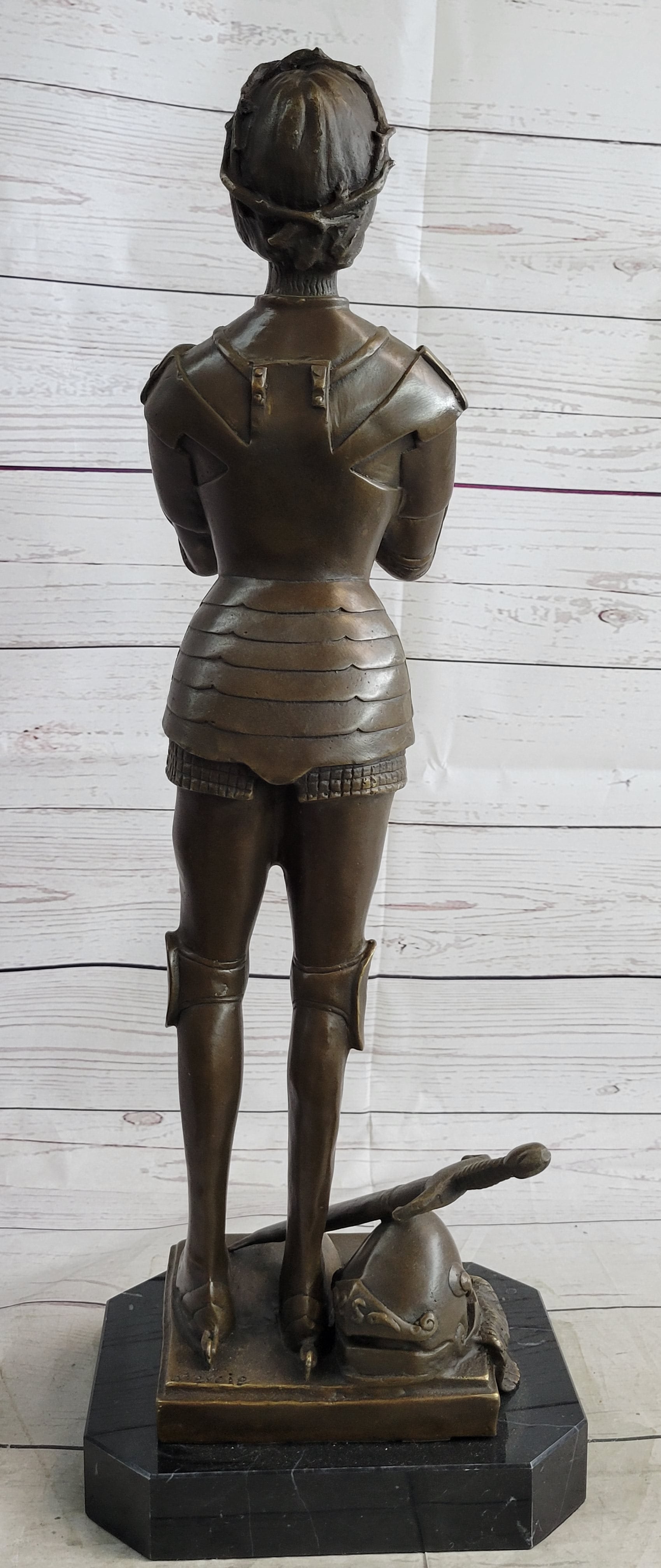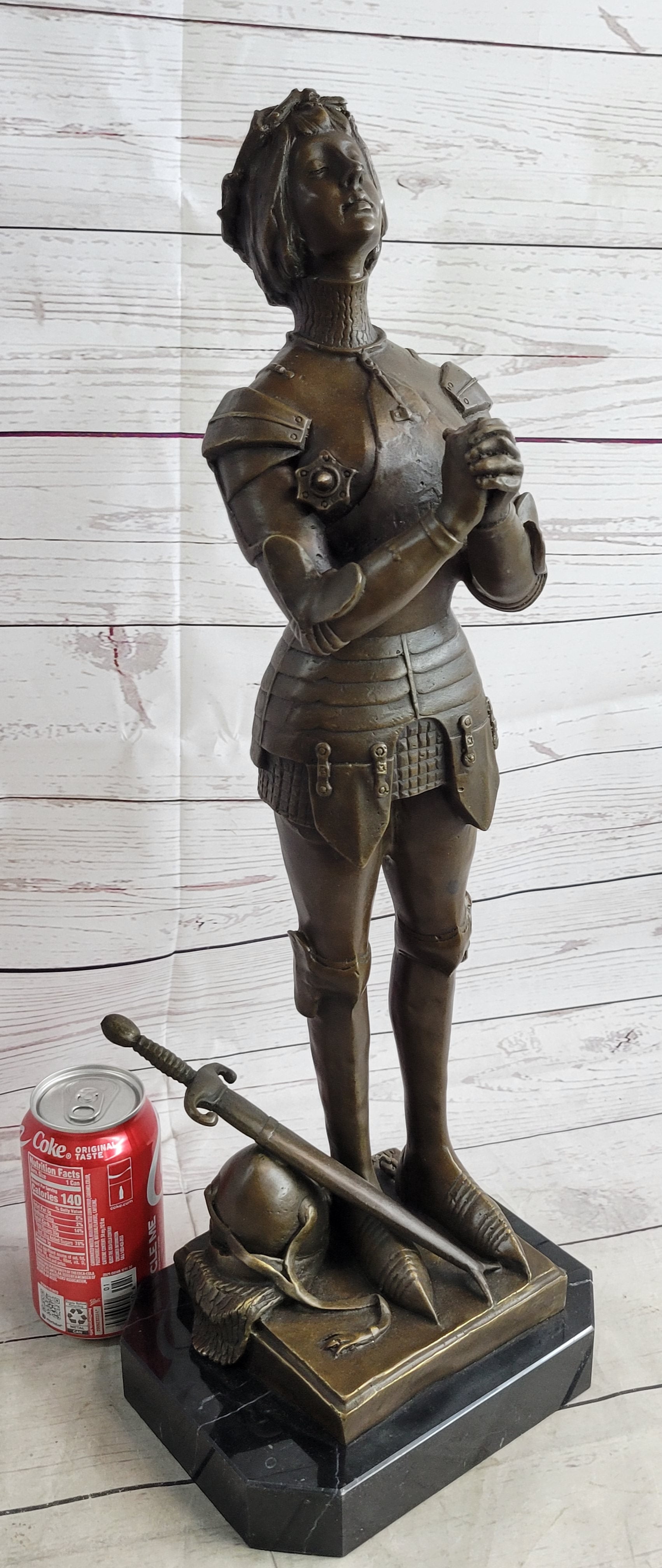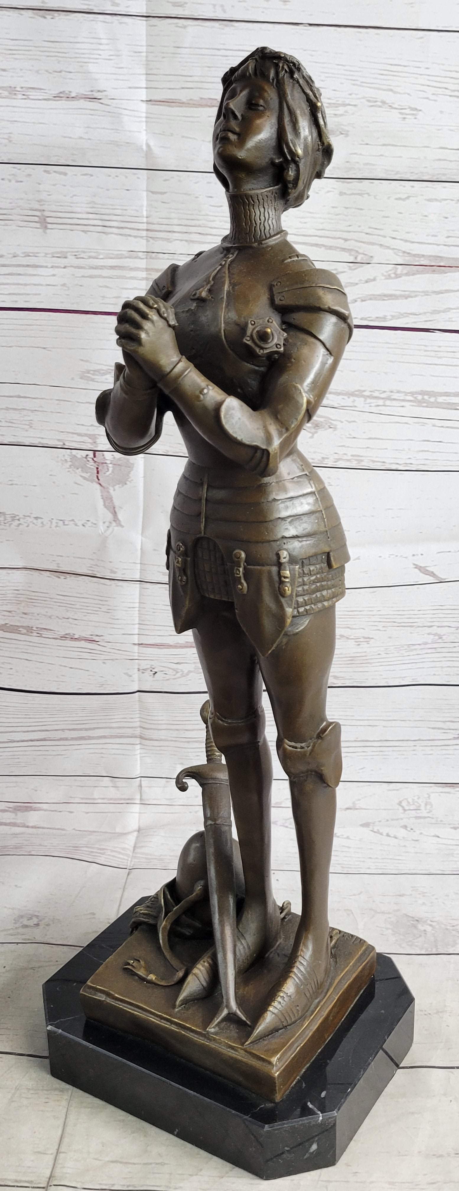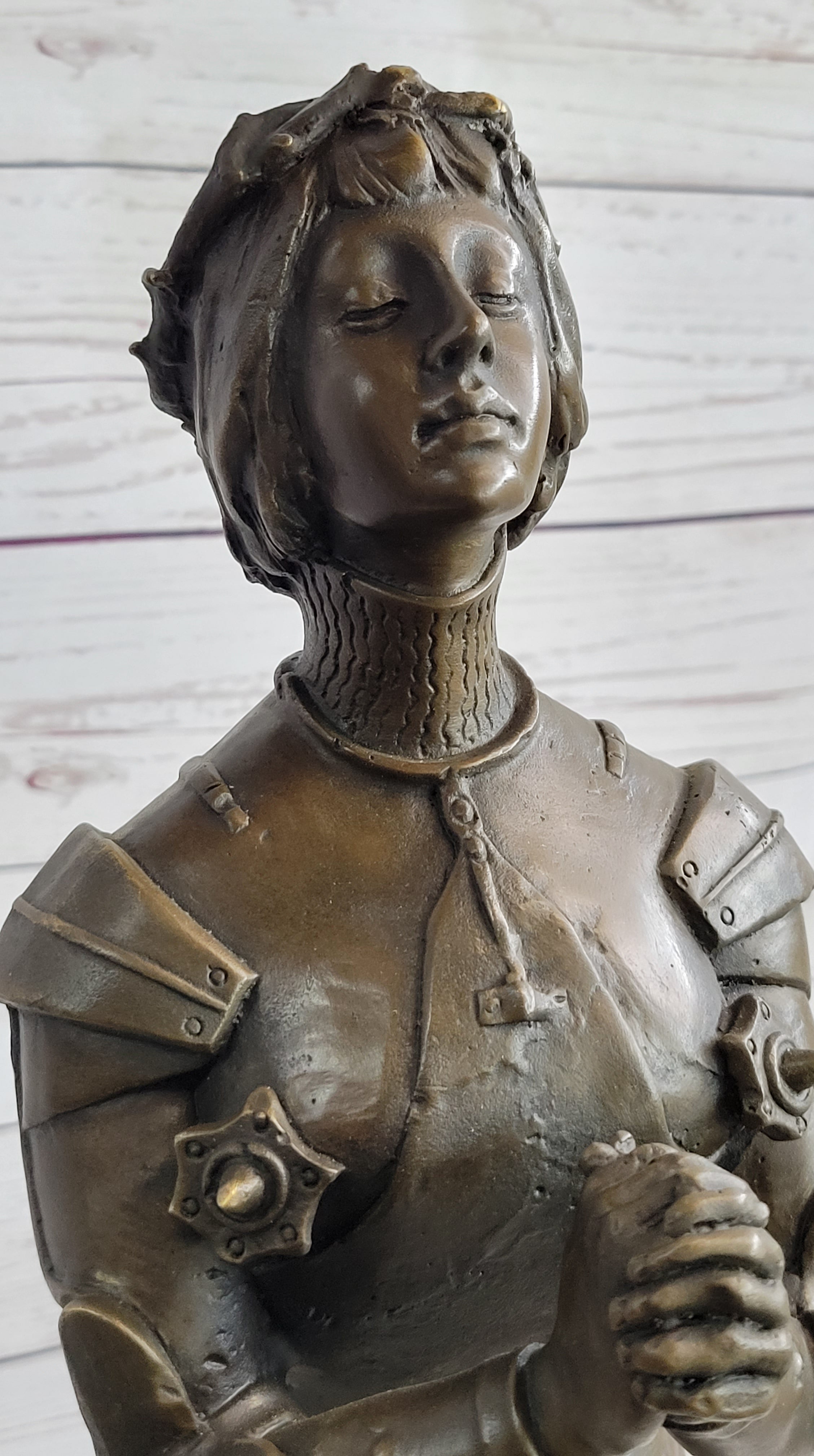 Saint Joan of Arc Maid of Orleans French Praying Bronze Sculpture Statue on Marble Base