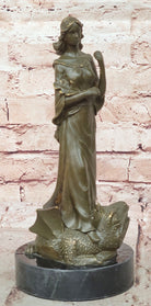 Handcrafted using the traditional lost wax casting method, this sculpture is hot cast in genuine bronze and finished with a rich brown patina that accentuates every intricate detail—from the goddess’s armor and robes to the textured scales of the dragon beneath her feet. The craftsmanship honors the mythological heritage while showcasing the artist’s mastery in bringing dynamic scenes to life in bronze.