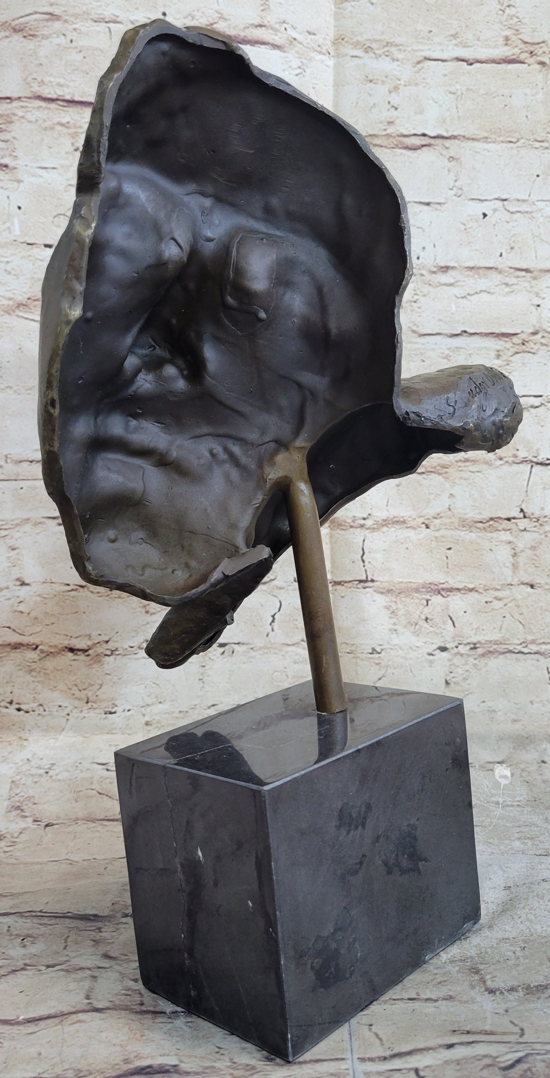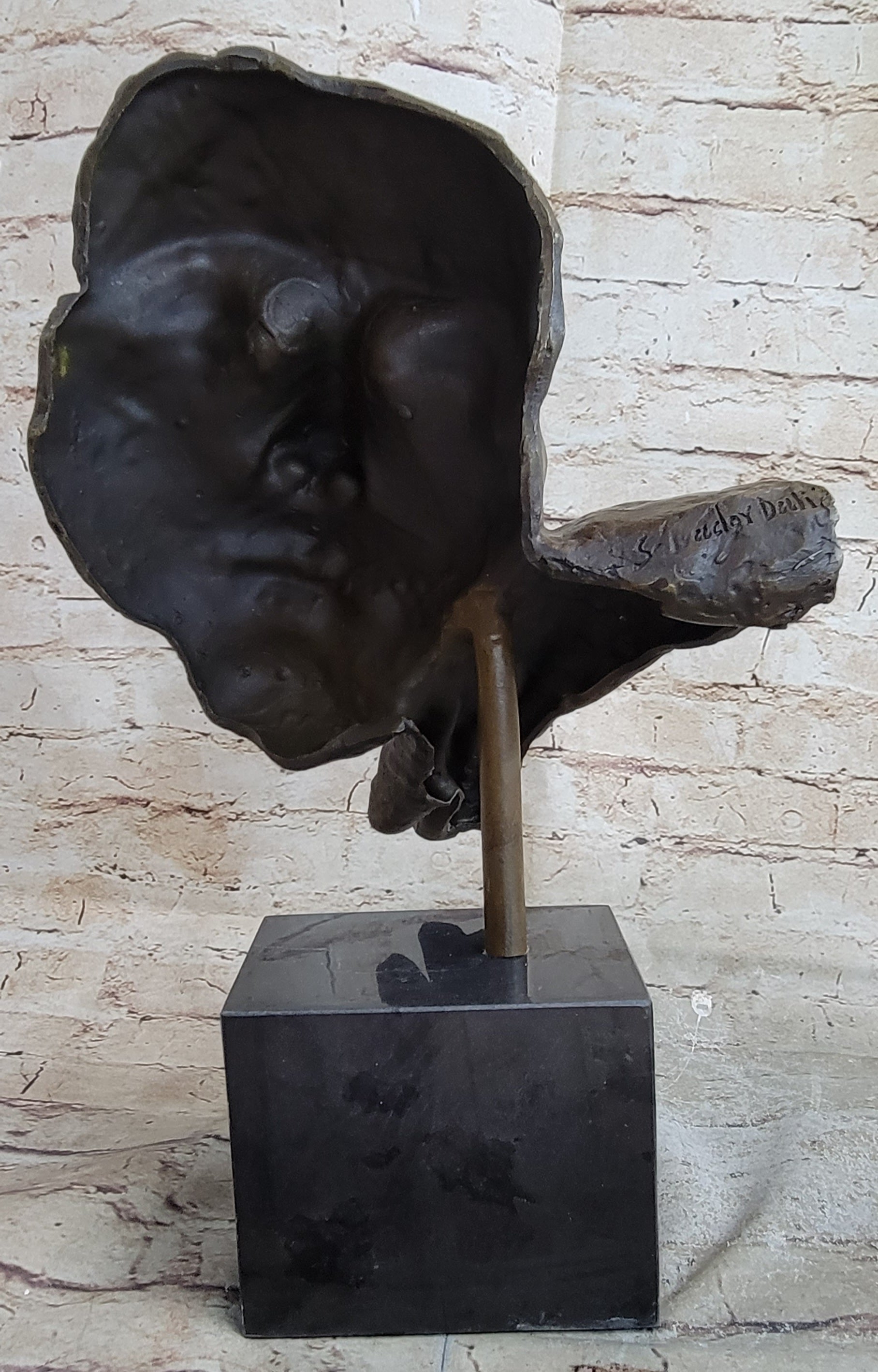 Dalí's self-proclaimed "Arab lineage" attributed his fascination with opulence, luxury, and Oriental attire. His eccentric persona and flamboyant public persona occasionally overshadowed his artistic achievements, garnering both admiration and criticism. Nevertheless, his exceptional artistic vision and undeniable talent remain at the forefront, enchanting audiences worldwide. This exceptional sculpture, showcasing Dalí's unmistakable touch, invites viewers to delve into the realm of dreams and experience the allure of his surrealist artistry.Bronze Dimensions with Marble Base: Height 18" X Width 12"
