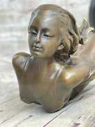 Meticulously crafted using the ancient technique of lost-wax casting, this sculpture showcases the artist's attention to detail and commitment to artistic excellence. The nuanced skin tone is enriched with a brown patina finish, adding depth and warmth to the piece.