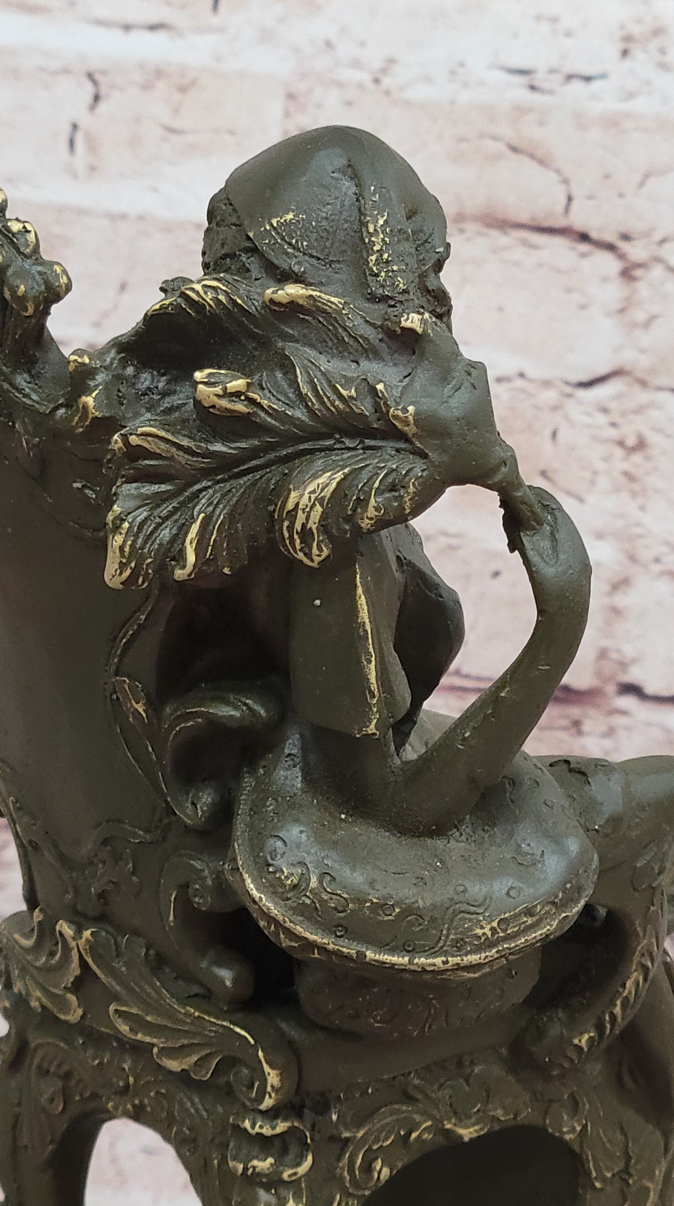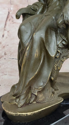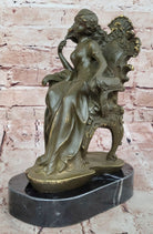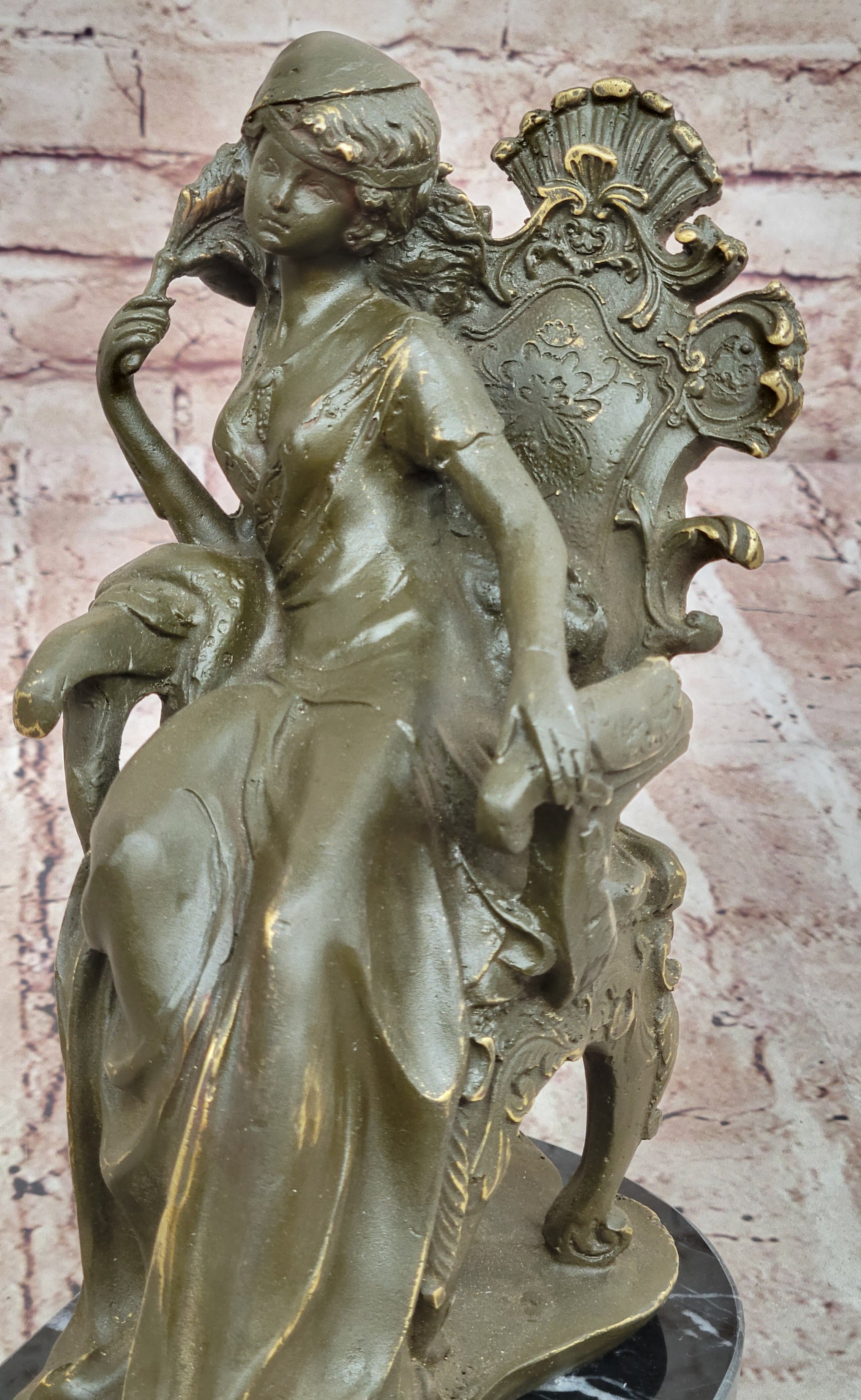 Seated Lady in Ornate Chair Bronze Sculpture on Marble Base