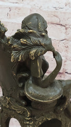 Handcrafted using the traditional lost wax method, this genuine bronze sculpture features a rich brown patina that enhances its depth and texture. The artist’s craftsmanship is evident in the intricate detailing of the chair, her flowing dress, and the expressive form of the figure. Resting securely on a polished black marble base, the sculpture achieves a harmonious balance of strength and elegance, making it a captivating focal point for any art collection or refined interior space.