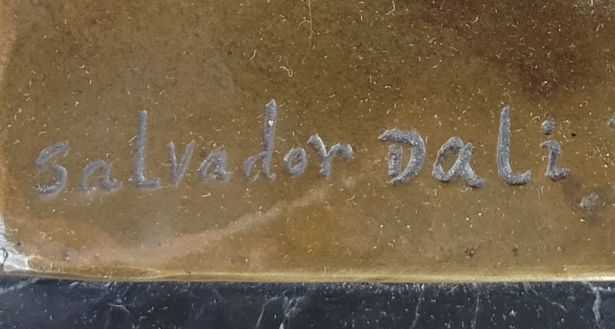If you're a fan of Dali's surrealist style, or simply looking for a unique and beautiful piece of art to add to your collection, the Soft Self-Portrait with Fried Bacon bronze sculpture is the perfect choice. It is a stunning work of art that is sure to be admired and cherished for generations to come.Bronze Dimensions with Marble Base: Height 15" X Width 9"